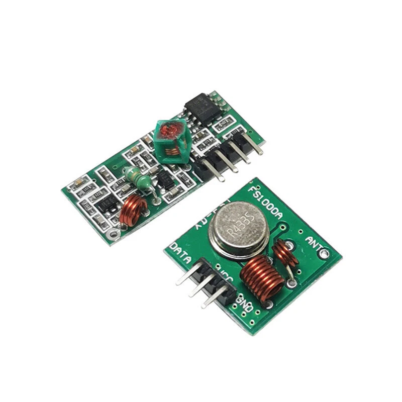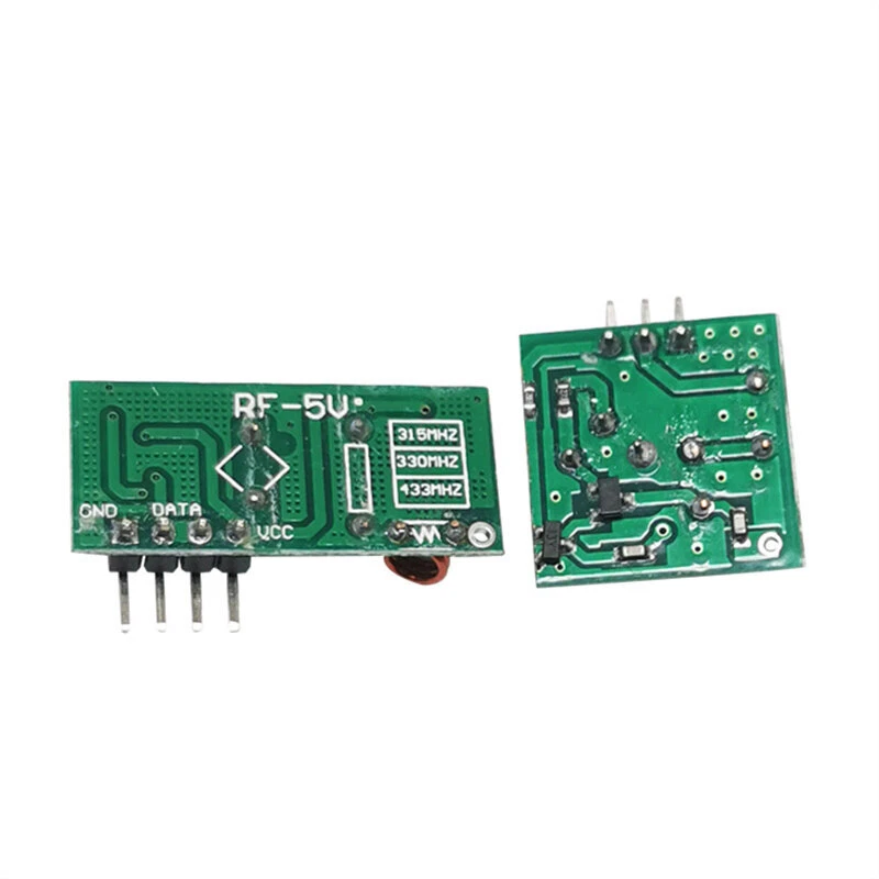 433Mhz RF Wireless Transmitter Module and Receiver Kit 5V DC 433MHZ Wireless For Arduino Raspberry Pi /ARM/MCU WL Diy Kit Product Features 1.Support ASK / OOK modulation, the receiver sensitivity of -108dBm; 2.Operating frequency: 433.92 MHz, bandwidth of about ± 150KHz; 3.mains input voltage range: 2.2V-5V; Working current: Type :2.1mA (Requirement:VDD=5V) ;Type :2.1mA (Requirement:VDD=3V) 4. Quiescent Current: 1uA 5. Low power consumption; 6. good selectivity and spurious radiation suppression, and easy to pass CE / Fcc international certification; 7. Good local oscillator radiation suppression, multiple receiver module to work with (ie, more than single income) and will not interfere with each other, used together without affecting the receiving distance; 8. multiple transmission rates, the general module for 2KHz, up to 10KHz; 9. Temperature range: -40-85 °C 10. ultra-small size of 30× 9× 1 (mm) (can be customized according to customer) 11.External antenna: 32CM single core wire, wound into a spiral 10. ultra-small size of 30× 9× 1 (mm) (can be customized according to customer) 11.External antenna: 32CM single core wire, wound into a spiral