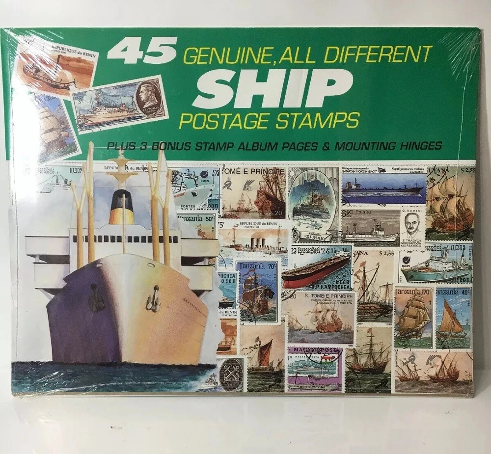 Home45 Genuine SHIP Postage Stamps - All Different - Plus 3 Stamp Album Pages