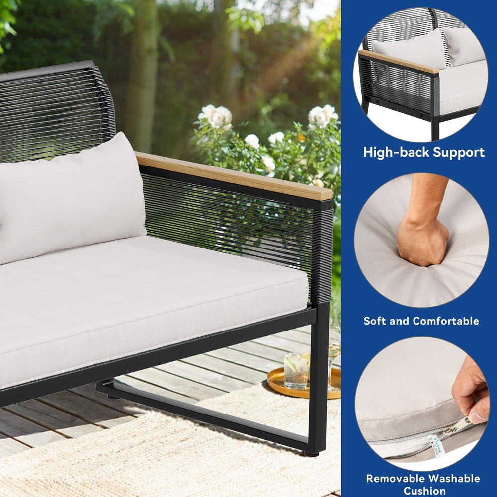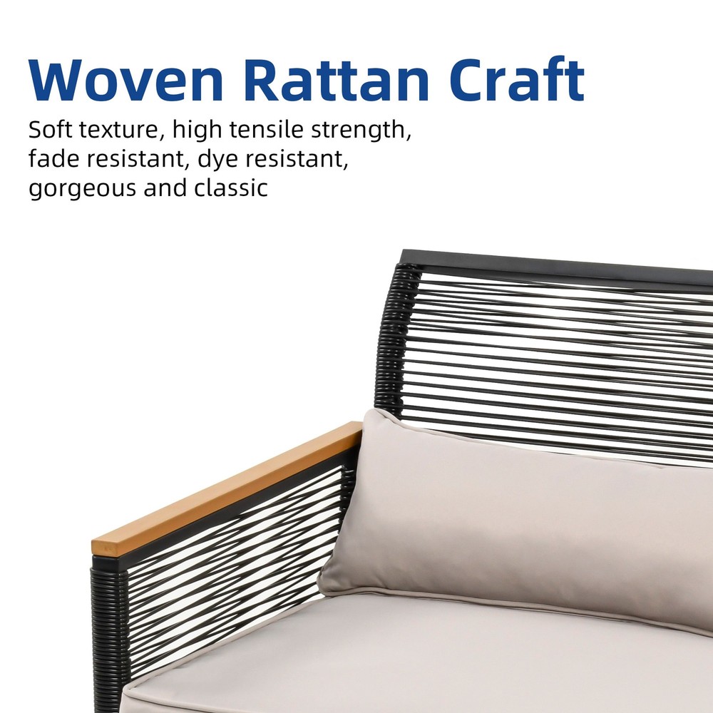 Place this sofa in your yard for family. Made of rattan and a strong steel frame, our rattan patio sofa is durable enough to withstand rain, wind, and outdoor heat for long-term use. Durable, weather-resistant seats and cushions provide optimum comfort when you're resting with your family or loved ones.Features: Includes 1 double sofa Powder-coated steel frames for durability Contemporary chair design with drawstring weave Cushioned seats for added comfort Cushion cover is removable for easy maintenanceDimensions: Double sofa:45.3"L x 28"W x 23.6"H Free Shipping Over $49.99* Details 45.3"Patio Wicker Double Sofa with Cushions - 45.3"L x 28"W x 23.6"H Product Description: Place this sofa in your yard for family. Made of rattan and a strong steel frame, our rattan patio sofa is durable enough to withstand rain, wind, and outdoor heat for long-term use. Durable, weather-resistant seats and cushions provide optimum comfort when you're resting with your family or loved ones. Features: Includes 1 double sofa Powder-coated steel frames for durability Contemporary chair design with drawstring weave Cushioned seats for added comfort Cushion cover is removable for easy maintenance Dimensions: Double sofa:45.3"L x 28"W x 23.6"H