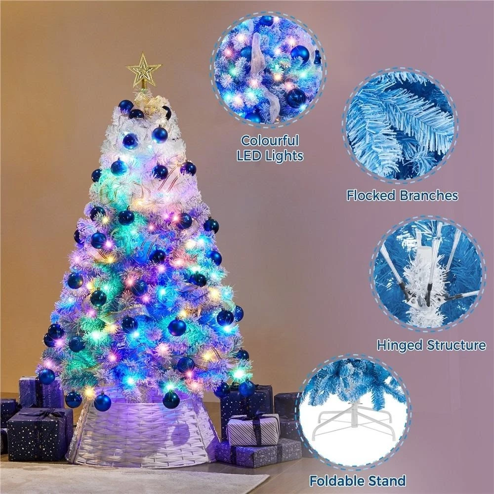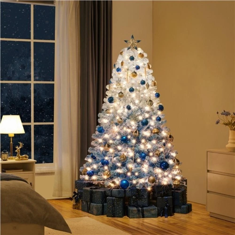 4.5/6/7.5ft Flocked Pre-lit Christmas Tree Xmas Decorations with Foldable Stand Description: Specifications: Color: Lake Blue Gradient Materials: PVC, Powder-coated Steel Type: Pre-lit Flocked Artificial Christmas Fir Tree Total Tip Count: 340 Total Light Count: 100 Light Tone: Multicolor Assembled Dimensions: 83 cm Dia. Ã 139 cm H / 33â³ Dia. Ã 55â³ H Stand Dimensions: 40 cm Dia. Ã 14 cm H / 15.7â³ Dia. Ã 5.5â³ H Item Weight: 4.4 kg / 9.6 lb Shipping Weight: 6.3 kg / 13.8 lb Note: 1. Please allow for a margin of error in measurements due to the bendable tips. 2. It is a Christmas tree with no decoration except for the pre-fixed lights and branch tips. Quick Overview: Enhance your holiday decor with our stunning Christmas tree, featuring nine LED lighting modes to create a colorful festive ambiance. The durable PVC branches are lush, realistic, and flame-retardant for a safer holiday. Its hinged design ensures quick and easy assembly, making setup a breeze. This versatile tree is suitable for any setting, from homes to offices to commercial spaces. With its beautiful shape and full-bodied appearance, it adds a charming and elegant touch to your celebrations. Enjoy a delightful white Christmas holiday season with this exceptional Christmas tree, designed for both beauty and convenience. Specifications: Color: Lake Blue Gradient Materials: PVC, Powder-coated Steel Type: Pre-lit Flocked Artificial Christmas Fir Tree Total Tip Count: 820 Total Light Count: 250 Light Tone: Multicolor Assembled Dimensions: 118 cm Dia. Ã 183 cm H / 46.5â³ Dia. Ã 72â³ H Stand Dimensions: 50 cm Dia. Ã 14.2 cm H / 19.7â³ Dia. Ã 5.6â³ H Item Weight: 8.9 kg / 19.6 lb Shipping Weight: 11.9 kg / 26.3 lb Note: 1. Please allow for a margin of error in measurements due to the bendable tips. 2. It is a Christmas tree with no decoration except for the pre-fixed lights and branch tips. Quick Overview: Enhance your holiday decor with our stunning Christmas tree, featuring nine LED lighting modes to create a colorful festive ambiance. The durable PVC branches are lush, realistic, and flame-retardant for a safer holiday. Its hinged design ensures quick and easy assembly, making setup a breeze. This versatile tree is suitable for any setting, from homes to offices to commercial spaces. With its beautiful shape and full-bodied appearance, it adds a charming and elegant touch to your celebrations. Enjoy a delightful white Christmas holiday season with this exceptional Christmas tree, designed for both beauty and convenience. Specifications: Color: Lake Blue Gradient Materials: PVC, Powder-coated Steel Type: Pre-lit Flocked Artificial Christmas Fir Tree Total Tip Count: 1284 Total Light Count: 550 Light Tone: Multicolor Assembled Dimensions: 140 cm Dia. Ã 228 cm H / 55â³ Dia. Ã 90â³ H Stand Dimensions: 56 cm Dia. Ã 17 cm H / 22â³ Dia. Ã 6.7â³ H Item Weight: 15.3 kg / 33.7 lb Shipping Weight: 19.4 kg / 42.8 lb Note: 1. Please allow for a margin of error in measurements due to the bendable tips. 2. It is a Christmas tree with no decoration except for the pre-fixed lights and branch tips. Quick Overview: Enhance your holiday decor with our stunning Christmas tree, featuring nine LED lighting modes to create a colorful festive ambiance. The durable PVC branches are lush, realistic, and flame-retardant for a safer holiday. Its hinged design ensures quick and easy assembly, making setup a breeze. This versatile tree is suitable for any setting, from homes to offices to commercial spaces. With its beautiful shape and full-bodied appearance, it adds a charming and elegant touch to your celebrations. Enjoy a delightful white Christmas holiday season with this exceptional Christmas tree, designed for both beauty and convenience. Packing List: 1 Ã Artificial Christmas Tree 1 Ã Assembly Instructions Shipping Fast Shipping Worldwide Returns We accept returns 30 days from the package received. Payments All payments are accepted via PayPal. Feedbacks