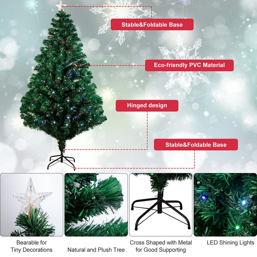 Christmas Giving New Arrival Home & Garden Festival Item Sporting Goods Bicycle Accessories Water Sport Accessories Skateboarding Climbing Accessories Fitness Training Light Storage Computers/Tablets & Networking For Apple iPad For iPad Mini 7.9" For iPad 9.7" For iPad Air Modle For iPad Pro Models For All Models Charger Electronics MP3 Speakers Headphones/Headset Smart Watch Video Games & Consoles Video Game Accessories Replacement Parts & Tools Batteries For Nintendo Wii For XBOX Rechargeable Batteries Special Sales Trampoline Professional Amateur Professional Tools EXTRA 15% OFF When Buy 2+ Item Free Shipping When Buy 2+ Item Save 10% Buy 1 Get 1 at 25% OFF Volume Discount 10%/15%/20%OFF Auctions Other 4/5/6/7ft Pre-Lit Fiber Optic Artificial Christmas Tree w/Multicolor LED Lights Description This Christmas tree with lights and Fibre Optic is a great addition to your festive celebrations.It will be a great focal point in your room. The built in fibre optic light stays lit when turned on and will create a soft glow around the tree using LED Shining Lights. Made from PVC with a fresh cut look, and with a metal stand to keep your tree firmly secured while in use. It is also made to last for years with easy folding and disassembly ready for the next year. This tree will be a great addition to any home, office, Patio at Christmas and to welcome the New year, bringing joy and happiness to all. Feature Various Light Effects -- Fiber optic light-emitting principle, various & multicolored light effects is changing automatically .Blossom light shape makes it more lovely. Ecological & Superior Material -- Ecological & superior material enables you to enjoy the comfortable sense of touching. With LED Lights And Top Star -- Some LED lights and a shining big top star makes the tree eye-catching. Flexible tips -- Very easy to assemble with pre-attached tips.Branches are flexible, making it easy to bend and shape them to achieve the desired effect. Room for decorations --These trees are lovely and full, lush green Christmas trees with a tips so plenty of room to fill full of decorations. Portable Design -- Separate two or three parts allows easy storage and transport. Metal Base -- Metal base offers more stability for the tree Specification Material: PVC + Metal base Color: As shown in pictures Type 1: 4ft/ 1.2m N.W.: 2.8kg Height: 4 ft/ 1.2m( From base to top ) Number of tips: 130tips Number of LED lights: 135LED Type 2:5 ft/ 1.5m N.W.: 3.2kg Height: 5 ft/ 1.5m( From base to top ) Number of tips: 170tips Number of LED lights: 175LED Type 3: 6 ft/ 1.8m N.W.: 4.5kg Height: 6 ft/ 1.8m( From base to top ) Number of tips: 220tips Number of LED lights: 225LED Type 4: 7 ft/ 2.1m N.W.: 7kg Height: 7 ft/ 2.1m( From base to top ) Number of tips: 270tips Number of LED lights: 275LED Package includes: 1 x Christmas tree 1X Metal Stand 1 x Power Adapter(US Plug) Payment Method Shipping Policy Returns Policy Contact US Payment Method We have shifted to eBay managed payment, buyers can pay using credit, debit, and gift cards, Apple Pay, Google Pay, PayPal, and PayPal Credit. Shipping Policy • All items are shipped from US warehouse • Your package will be shipped via US warehouse. • All items would be dispatched within 24 - 48 hours after we confirm the payment • Postage usually takes 2 to 3 business days, including handling time(excludes Saturdays, Sundays and US public holidays- these do not count as business days) • If you do not receive your item in the normal period, please feel free to contact us Returns Policy Within 7 days after receiving your parcel, we offers a No-hassle 7 days exchange (replace) only if your parcel is defective due to manufacturing problem. The faulty item will be exchanged for the same model once the return guidelines are followed: 1. We might ask buyer to test the item in order to eliminate improper use factor, buyer has responsibility to follow the test correctly. 2. The item must be returned in NEW condition and with the entire original package, including cartons, parts and instructions manual etc. 3. Customer is responsible for return postage, but we will cover all expense in sending replacement. 4. Any returning must inform us first, to send back without return ID (given by LD customer service) will not be accepted. 5. Shipping and insurance charges are not refundable. Contact US We will keep you updating via email messages regarding the status of the orders.Please make sure your ebay registered email available and you adjust the spam limitation to allow messages from us, or check your ebay message box. If you are satisfied with the item,pls take a few moments of your time to leave a positive feedback for us. Any problems, please contact us via ebay message, all email / message will be respond within 24 business hours. On Nov 4, 2025 at 21:33:33 PST, seller added the following information: