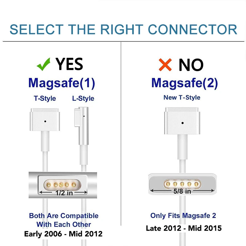 HOME ABOUT US PAYMENT SHIPPING RETURNS CONTACT US 45W L-tip Power Charger For Apple MacBook Air 11" 13” 2008-2010 2011 A1374 A1375 Product Details New Compatible Magsafe 1 Charger 45W for Apple MacBook Air 11" & 13" Made in Late 2008, 2009, 2010, 2011 Model:A1237, A1244, A1269, A1270, A1304, A1369, A1370, A1374, A1375 Specification: Condition: 100% New, replacement made by 3rd party Input: AC 100-240V, 50-60Hz Output: DC 14.5V 3.1A Connector: Magnetic tip 1/2 inch 5 pin magsafe 1 Connector size :L-Tip Color:White Compatible Model: For MacBookAir (13-inch, Mid 2011) For MacBook Air (11-inch, Mid 2011) For MacBook Air(13-inch, Late 2010) For MacBook Air (11-inch, Late 2010) For MacBook Air (Mid 2009) For MacBook Air (Late 2008) Package Includes: 1 x 14.5V 3.1A 45W compatible power adapter for Apple MacBook Air 11" & 13" Made in Late 2008-Mid 2011 1 x USA plug Note: Connector for Mac notebooks are available in MagSafe, MagSafe 2 and USB-C; Power adapters are available in 29W, 30W, 45W, 60W, 61W, 85W, and 87W varieties. You should use the appropriate wattage power adapter for your Mac notebook. You can use a compatible higher wattage adapter without issue, but it won't make your computer charge faster or operate differently. Lower wattage adapters don't provide enough power. Shipping Payment Feedback Contact us Returns Shipping 1. Item will be shipped within 1-3 business days. 2. We'll ONLY ship the item to your eBay Confirmed Address,so please make sure your shipping address is correct before you buy item.We have no responsibility for shipping address provided wrongly and will not accommodate address change requests. It is buyer responsibility to make sure address is correct. 3.Order placed on weekends or holiday will be shipped on Monday or next working day. 4. We urge you to contact us as soon as possible if you would like to cancel an order you placed. 5. If you have not received your shipment within 20 day Payment 1. We accept payment via ebay managed payment transactions, if there is any concerns about the payment, please contact us. 2. If you need a large quantity, please contact us about the discount. Feedback 1. We keep customer satisfaction as our top priority and to provide the highest quality to our valued customers. If you have any problem with your order, please contact us and we will respond within 1 business day or less.(not include Public holiday) 2. Positive feedback is automatically done once the payment is cleared. We appreciate all our customers to post a positive feedback. 3. Hope we could be always with you to solve problem for you, and with your business growth. Contact us 1. Any questions, contact us firstly, (eBay Message or e-mail), We will reply to you as soon as possible in working days! 2. Don't open any cases , requests or leave negative feedback before contact us please.We will do our best for you! Your understanding will be greatly appreciated! Returns 1. Items can be returned for exchange or full refund within 30 days from the date you receive your merchandise. 2. We are not responsible for any purchase after this 30-day period. 3. Return shipping is the responsibility of buyer unless the return is a result of our mistake (i.e., your receive the wrong item). 4. For damaged or defective items pls contact us by a message before you start a return request . We will offer you the solution in 24 hours .