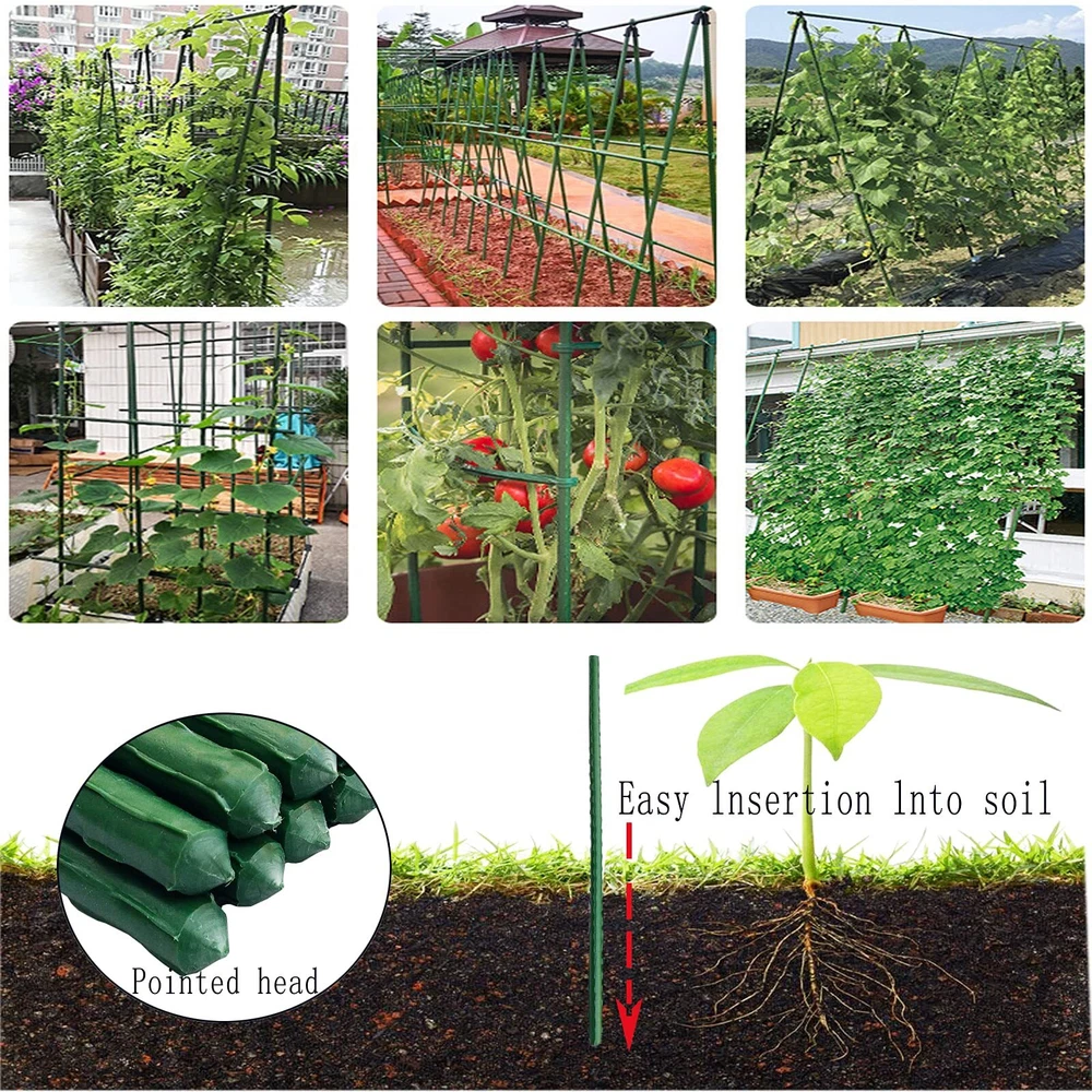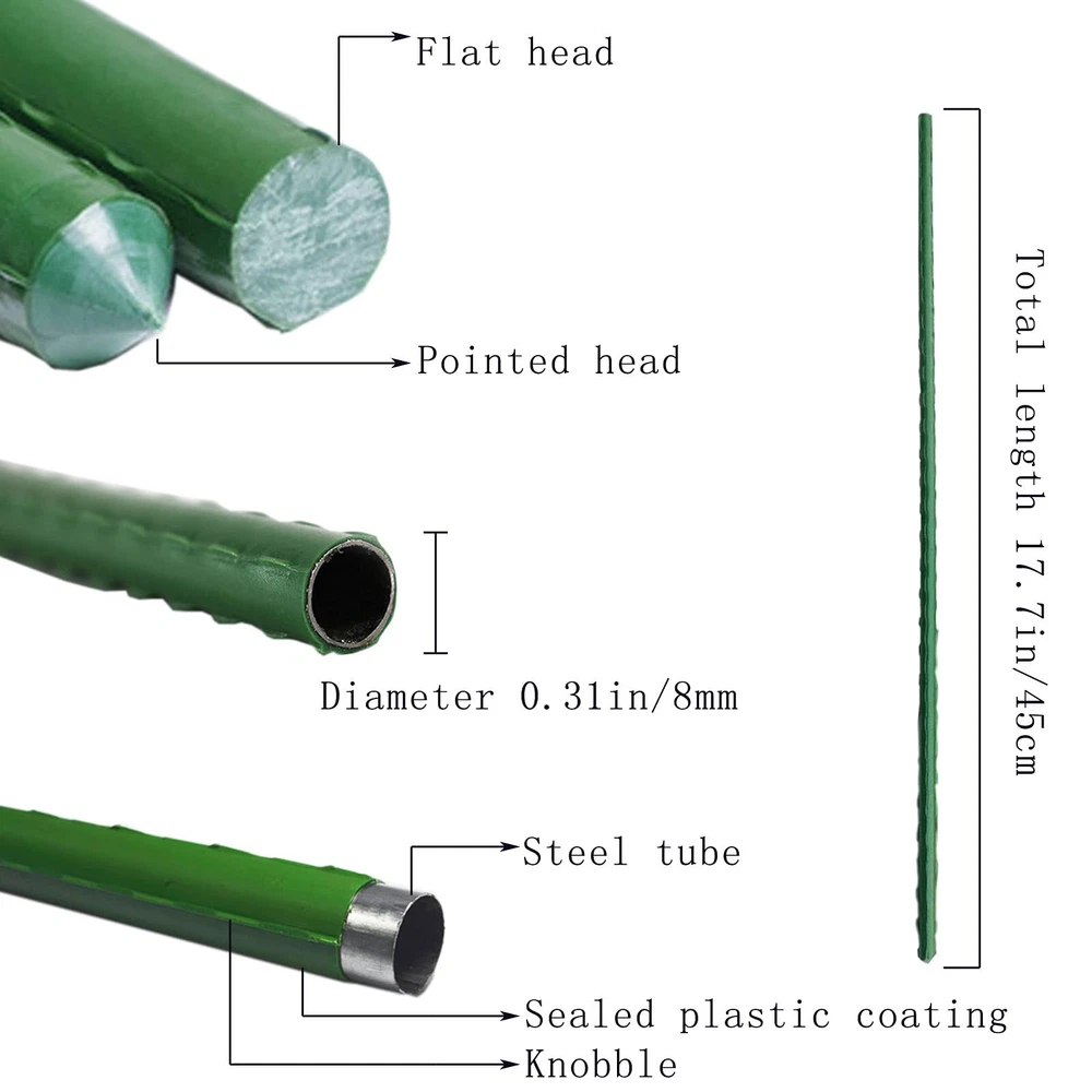 Is Registered Trademark And Protected By US Law!!100% money back satisfaction . Sturdy Metal Garden Stakes 17.72 Inches Steel Plant Stakes - MULTIPURPOSE UNIVERSAL USE! Application goes beyond regular use such as tomato stakes, cucumber post, great for building trellises or teepees for natural climbing plant support. Ateel garden stakes material: courtyard garden stakes are plastic coated steel stakes, with green plastic coating for weather protection, are rustproof for ease of placement. it can withstands much loads without deforming or breaking easily, sun-proof and wear-resistant, has a long service life, and provides support for the growth of trees and plants. Each package contains 25 Plant Support Garden Stakes(no connect stakes ). Plant Support Garden Stakes for plants Use twine or sturdy stretch to secure branches to support, It is hard to break or split during usage and can be reused for many year. Garden stakes will not come off on your hands when they get wet,it will keep your hands clean; with sharpened points on sides for ease of placement. Use the stakes for ,cucumber, pole bean, peppers, dahlias, lilies, eggplants, orchids, grapes, perennials, or any other flowering or fruit-producing plants, indoors or out. Steel Plant Stakes Dimensions: 0.31 inch/8mm diameter, 17.72 inches/45cm long. Used to build trellises or tapered tents for climbing plant support. Perfect for securing trees, shrubs, vines and some natural climbing plants, Works for tomato stakes, plant supporting, eggplant stakes, pole bean stakes, tree stakes.