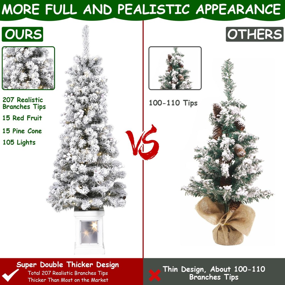 Store category Sign Up Now ! You may also like Product Description Bullet Points: Impress Your Guests: Our potted Christmas trees for front porch add a festive touch with their 105 lights (4ft) or 75 lights (4.5ft), pine cone berries, and 166-207 branch tips. Available in 2 sizes for a natural, full-bodied look, these trees are topped with stars for a complete holiday display. 8 Light Modes: Seamlessly transitions through 8 lighting patterns, from a gentle slow fade to an energetic chasing flash, ensuring your front porch is always dressed in holiday cheer. Christmas Elegance: Elevate your home's holiday charm with our Potted Christmas Trees for Front Porch. These stylish trees create a warm and inviting atmosphere at your doorstep, adding a Christmas atmosphere that's perfect for indoor or outdoor decoration. Sturdy and Safe: Crafted with metal hinges and PVC branches, this fake potted Christmas tree ensures a flame retardant and non-allergenic holiday season. Effortless Assembling: Achieve full trees for your front porch decor with ease! Fluff and shape the branches correctly for the lushest look, attach the base, and voila, a perfect festive centerpiece. Bring the festive cheer into your home with our Artificial Potted Christmas Tree! Topped and complete with stars, this tree twinkles and flashes adding a perfect Christmas decoration to your home. Made with sturdy materials, easily shape the tree correctly for the lushest, fullest look. Perfect for any space. Specification Material: Flame retardant PVC Battery box: Requires 3 AA batteries (not included) 4ft Height: about 121.92cm/48 inches Diameter: about 45cm/17.72 inches Number of Branch Tips: 166 Number of Light Beads: 75 Light String Pattern: 8 Patterns; IP44 waterproof Leaves Width: 6+5cm/2.36+1.97 inches Leaves Thickness: 0.12mm+0.1mm (Will not drop leaves, and will not be easily deformed during transportation) Intermediate Tube Diameter: about 1.6cm/0.63 inches Base Size: about 17.78cm/7 inches 13 Pine Cones, 13 Berries 4.5ft. Height: about 137.16cm/54 inches Diameter: about 50.8cm/20 inches Branch Tip: 207 Number of Light Beads: 105 Light String Pattern: 8 Patterns; IP44 waterproof Leaves Width: 6+5cm/2.36+1.97 inches Leaves Thickness: 0.12mm+0.1mm (Will not drop leaves, and will not be easily deformed during transportation) Intermediate Tube Diameter: about 1.6cm/0.63 inches Base Size: about 17.78cm/7 inches 15 Pine Cones, 15 Berries Pack List: 1 x Artificial Christmas Tree 1 x Base 1 x String Light Note: Due to different lighting and screen settings, the item color may be slightly different from the picture. Due to different manual measurements, please allow a 1-2cm difference in size. Payment Delivery details Terms of sales About us Feedback & DSRs Payment Before you palce an order, please kindly make sure that you have a paypal account. We accept PAYPAL payment only. Payment should be completed within 2 days after auction closed, or unpaid dispute will be filed for an closing auction. An unpaid case will be filled after 4 days. Delivery details We ship to your eBay address. Each package will be shipped to US by UPS Regular Parcel with tracking number. Please check your shipping address carefully before checkout, it can't be changed if order completed. All items will be shipped within 1-2 business day upon receipt of payment.Orders placed on weekend will be shipped within 3 days. If you do not receive your item in 7-10 business days.please contact us immediately for further assistance. We will be responsible for any damages or losses incurred in the shipping process. About us We maintain high standards of excellence FIVE STAR and strive for 100% customer satisfaction! Positive Feedback is very important to us. We hope that you contact us immediately Before you give us neutral or negative feedback, so that we can satisfactorily address your concerns. We promise to offer the lowest price and high quality produce. Our working time: From Monday to Friday(9:30 am to 18:00pm), we don't working on holidays ,hope you can understand and know that , thank you. Please always talk to us via ebay Message. We appreciate your business and look forward to growing our e-Bay sales with satisfied customers. Feedback Contact us If you have any questions, please feel free to contact with us by ebay Message during our business hours ( 9:30a.m. to 5:30 p.m.), or email us through eBay, we will try our best to help you to resolve it. For any presale or after-sale questions,please do feel free to email us! Due to the time difference, each email will be replied within 1 working day,and weekend will be delayed a bit. Feedback