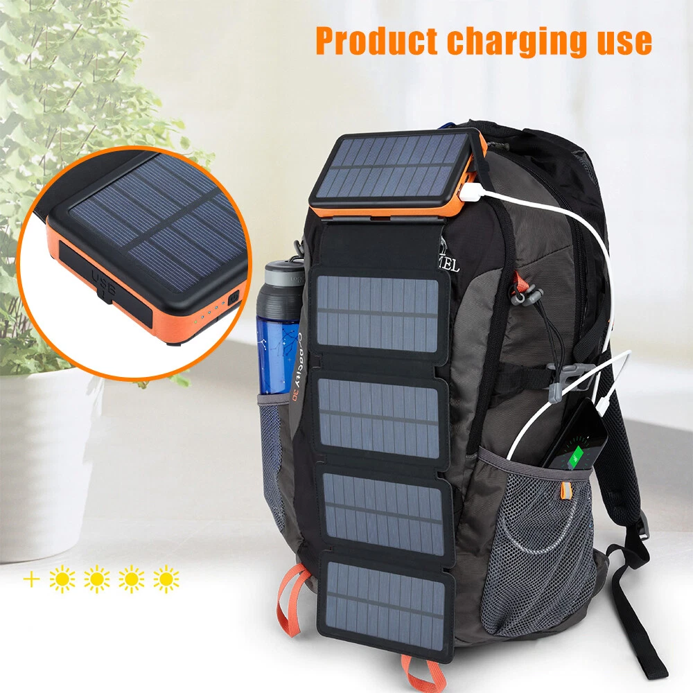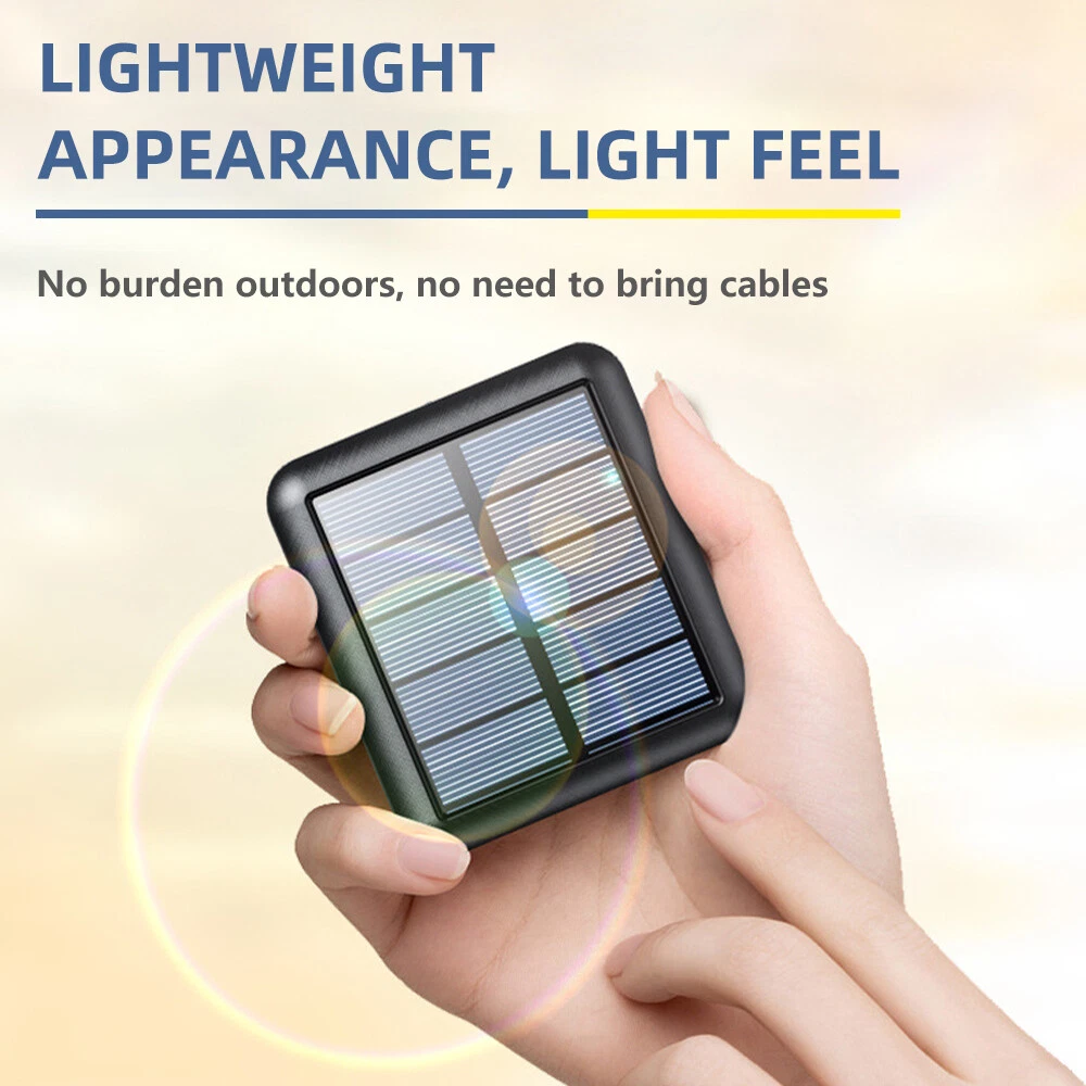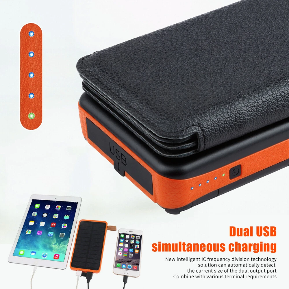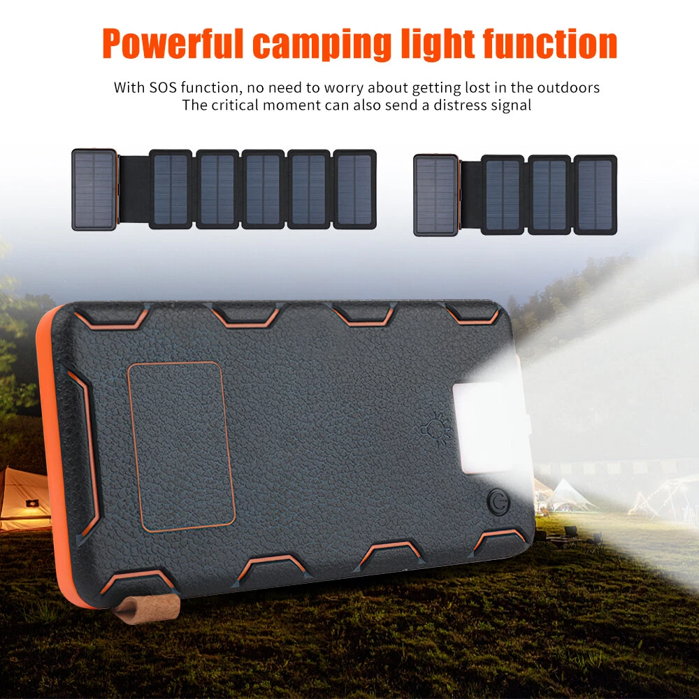 Portable Solar Pow er Bank Mobile Phone Charger Panel Waterproof Outdoor Camping Feat ure : 【46800mAh Solar Powerbank 】 4 68 00mAh high capacity external battery provides excellent battery backup for your device, charging Galaxy S8 5 times and other Android devices several times. Suitable for travel, hiking, camping, business trips, etc. 【1+5 in 1 Portable Solar Powerbank】 The solar powerbank with 5 unique foldable solar modules combined to ensure the fastest charging than other single solar powerbank. The one-button design makes it easy to carry these foldable solar panels in multiple situations. It is great for use as. emergency outdoor power supply. (Also supports charging via wall outlet). 【Two USB Outputs + One Micro USB Input】. With the built-in exclusive SmartIC technology chip, our solar charger with two USB outputs (2.1A and 1A) + One Micro USB input 2.1A ,it detects your device to ensure the fastest possible charging speed Through stable charging ( up to 3.1 A total ). It is not possible to charge batteries with ≤ 0.08A. 【Outdoor Powerbank】 There are three LED flashlight functions. Press the on / off button for 3 seconds, work as a flashlight, press the button again, flash as SOS signal light, press the button again, fast flashing strobe light follows SOS light. Designed for camping, hiking, fishing and other outdoor activities. 【What you get】 Delivery contents: 1 * solar power bank, 1 * USB charging cable, 1 * user manual. Specifica tion : Battery capacity: 468 00mAh/20000mAh Battery type: lithium polymer battery. Extended size: 360 * 23mm Folded size: 190 * 114 * 40mm Gross weight: 0.66kg Color: Black Interfaces: Micro USB input: 5V / 2.1A USB output 1: 5V / 2.0A USB output 2: 5V / 2,1A Inclu ded : 1 x 46800mAh/20000mAh solar charger. 1 x USB charging cable 1 x user manual 202 3 Super 20000mAh M ini USB Portable Charger Solar Power Bank For Cell Phone Feat ures : - Portable Power Bank: It comes with iPhone/micro/Type-C charging cables to fit all commonly used devices, a necessity for travel. - Fast Charging: The 2.1A fast charging provides 50% faster charging than before and the smart chips reduce energy consumption and increase power conversion rates. The Li-polymer battery provides a large power capacity and robust cycle life. - 4 in 1 Output Ports: It has one data cable, one mini-cable type C data cable, one iPhone date cable and one USB output port, suitable for all types of mobile phones. - Ultra-thin: This power bank is 10mm thin, portable to carry and store. - Safe and Reliable: Built-in Li-polymer battery, this solar power bank is twice as safe as Li-ion battery chargers. Specific ations : Capacity: 20000mah Input: 5V/2A (max) Output: 5V/2.1A Battery: Lithium Polymer Charging Time: 8-10h Weight: 260 g Pack age : 1x USB Power Bank 1x USB Charger Cable 1x Packing Box