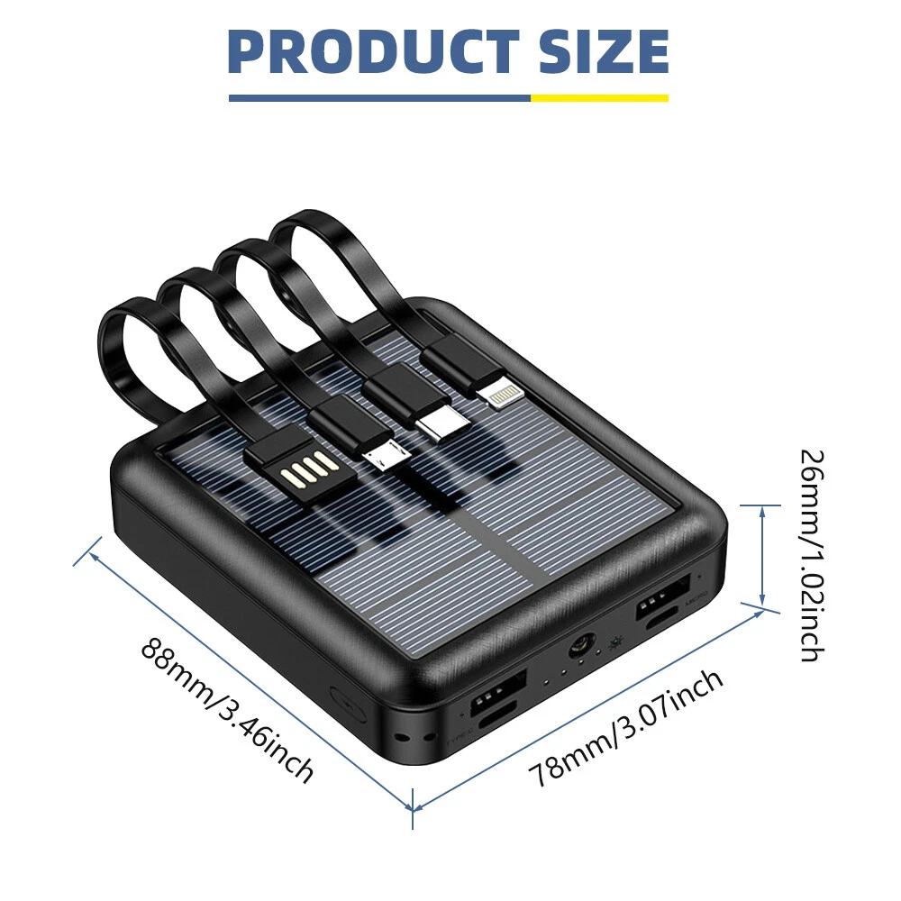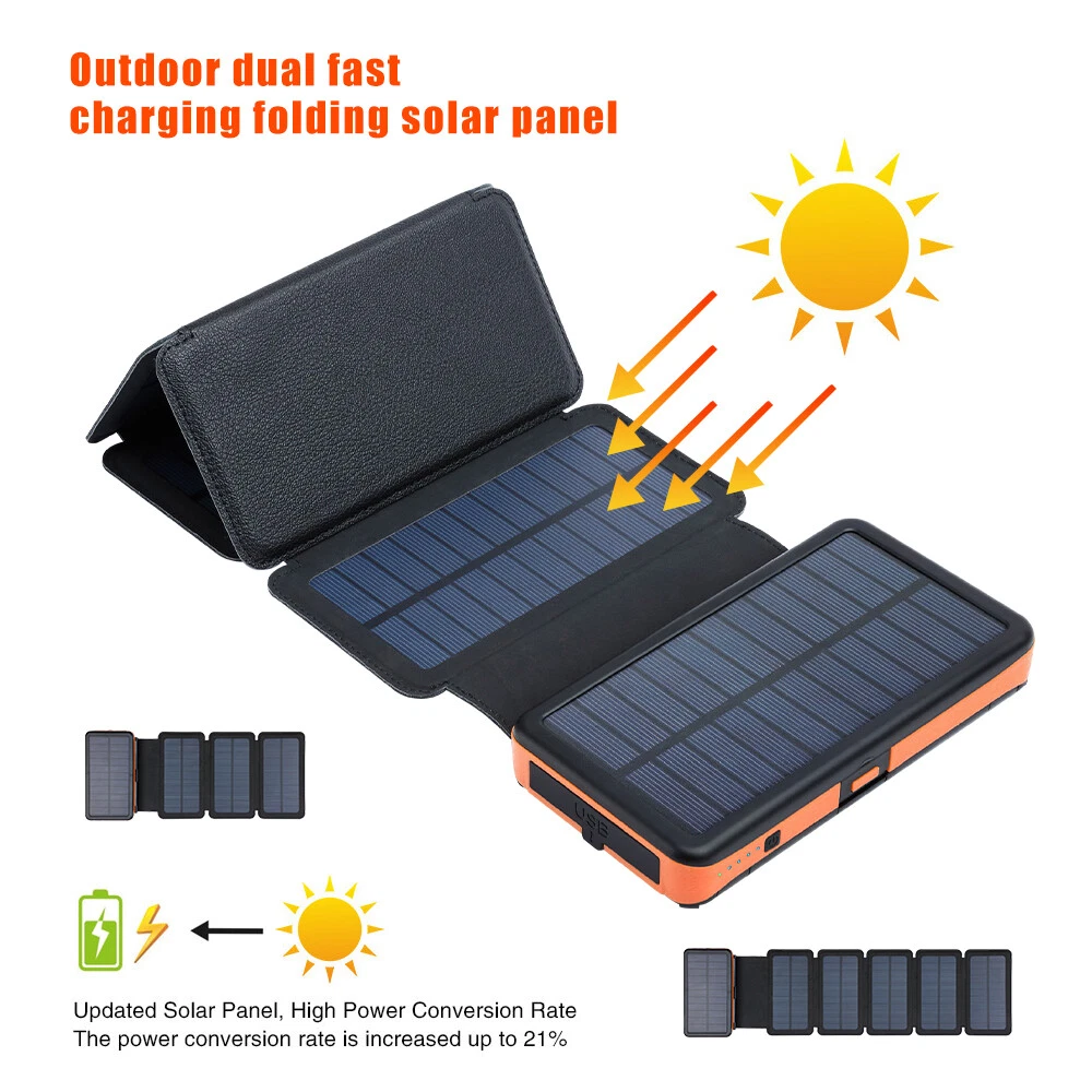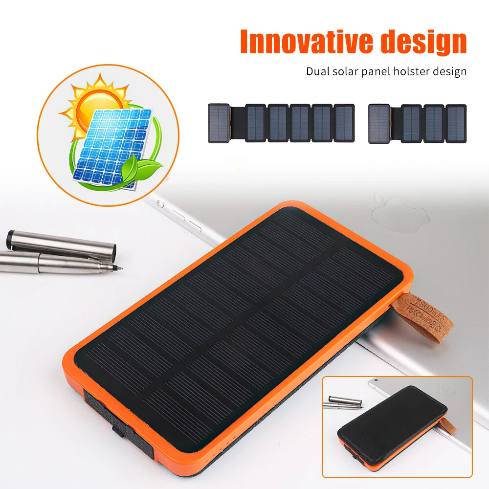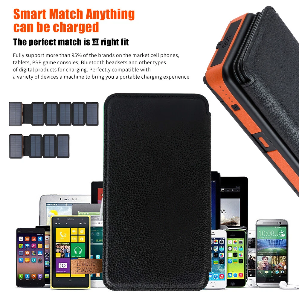 Portable Solar Pow er Bank Mobile Phone Charger Panel Waterproof Outdoor Camping Feat ure : 【46800mAh Solar Powerbank 】 4 68 00mAh high capacity external battery provides excellent battery backup for your device, charging Galaxy S8 5 times and other Android devices several times. Suitable for travel, hiking, camping, business trips, etc. 【1+5 in 1 Portable Solar Powerbank】 The solar powerbank with 5 unique foldable solar modules combined to ensure the fastest charging than other single solar powerbank. The one-button design makes it easy to carry these foldable solar panels in multiple situations. It is great for use as. emergency outdoor power supply. (Also supports charging via wall outlet). 【Two USB Outputs + One Micro USB Input】. With the built-in exclusive SmartIC technology chip, our solar charger with two USB outputs (2.1A and 1A) + One Micro USB input 2.1A ,it detects your device to ensure the fastest possible charging speed Through stable charging ( up to 3.1 A total ). It is not possible to charge batteries with ≤ 0.08A. 【Outdoor Powerbank】 There are three LED flashlight functions. Press the on / off button for 3 seconds, work as a flashlight, press the button again, flash as SOS signal light, press the button again, fast flashing strobe light follows SOS light. Designed for camping, hiking, fishing and other outdoor activities. 【What you get】 Delivery contents: 1 * solar power bank, 1 * USB charging cable, 1 * user manual. Specifica tion : Battery capacity: 468 00mAh/20000mAh Battery type: lithium polymer battery. Extended size: 360 * 23mm Folded size: 190 * 114 * 40mm Gross weight: 0.66kg Color: Black Interfaces: Micro USB input: 5V / 2.1A USB output 1: 5V / 2.0A USB output 2: 5V / 2,1A Inclu ded : 1 x 46800mAh/20000mAh solar charger. 1 x USB charging cable 1 x user manual 202 3 Super 20000mAh M ini USB Portable Charger Solar Power Bank For Cell Phone Feat ures : - Portable Power Bank: It comes with iPhone/micro/Type-C charging cables to fit all commonly used devices, a necessity for travel. - Fast Charging: The 2.1A fast charging provides 50% faster charging than before and the smart chips reduce energy consumption and increase power conversion rates. The Li-polymer battery provides a large power capacity and robust cycle life. - 4 in 1 Output Ports: It has one data cable, one mini-cable type C data cable, one iPhone date cable and one USB output port, suitable for all types of mobile phones. - Ultra-thin: This power bank is 10mm thin, portable to carry and store. - Safe and Reliable: Built-in Li-polymer battery, this solar power bank is twice as safe as Li-ion battery chargers. Specific ations : Capacity: 20000mah Input: 5V/2A (max) Output: 5V/2.1A Battery: Lithium Polymer Charging Time: 8-10h Weight: 260 g Pack age : 1x USB Power Bank 1x USB Charger Cable 1x Packing Box