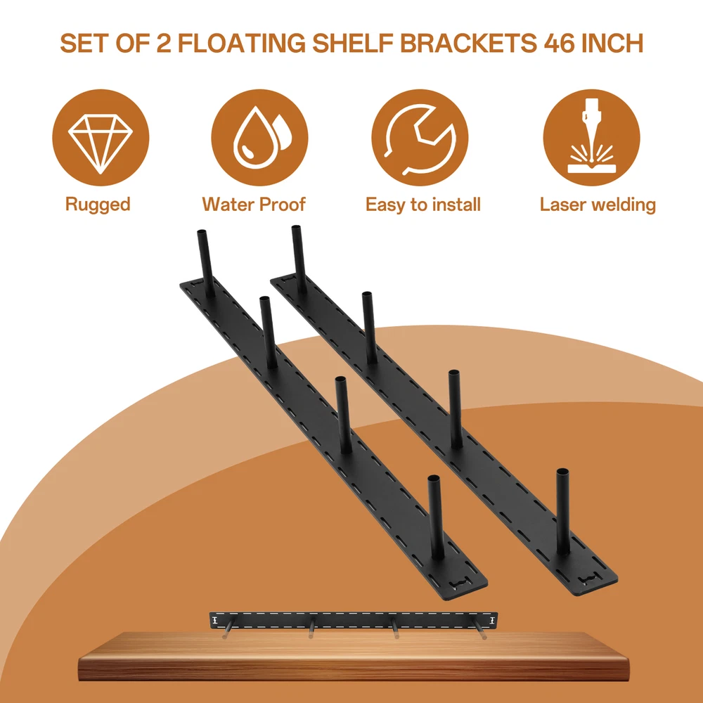 Store category Sign Up Now ! You may also like Product Description Bullet Points: Safe Material: Constructed with excellent quality steel, these floating shelf brackets offer a stylish and robust storage option that enhances your living space's aesthetic appeal. Unmatched Resilience: By utilizing excellent craftsmanship and welding precision, our set of 2 floating shelf brackets offer stronger and more long-lasting floating shelves in key areas compared to conventional options. Wide Application: Seamlessly blend functionality with styles in the living room by using these brackets to mount shelves that serve as chic storage for books, decorations, and more. Excellent Gift: Enhance any space with our set of 2 floating shelf brackets: an ideal surprise for women and men on special holidays like Thanksgiving, Christmas, or birthdays. Easy Mounting: Create a beautiful ambiance with our set of 2 floating shelf brackets. The installation is cost-effective with clamps and hassle-free, outperforming standalone products in strength. Our steel floating shelf bracket is crafted with selected material and excellent craftsmanship, making it sturdy and durable. Ideal for women to install shelves in the kitchen, it's easy to install and adds a touch of elegance to any room. Properties: color: black Material: steel Product dimensions: 46 x 6 x 3 inches Installation type: Wall-mounted installation Product List: 2pcs*bracket (include accessories: Drill dies, router bits, auger bits, wiring jigs, screws) Payment Delivery details Terms of sales About us Feedback & DSRs Payment Before you palce an order, please kindly make sure that you have a paypal account. We accept PAYPAL payment only. Payment should be completed within 2 days after auction closed, or unpaid dispute will be filed for an closing auction. An unpaid case will be filled after 4 days. Delivery details We ship to your eBay address. Each package will be shipped to US by UPS Regular Parcel with tracking number. Please check your shipping address carefully before checkout, it can't be changed if order completed. All items will be shipped within 1-2 business day upon receipt of payment.Orders placed on weekend will be shipped within 3 days. If you do not receive your item in 7-10 business days.please contact us immediately for further assistance. We will be responsible for any damages or losses incurred in the shipping process. About us We maintain high standards of excellence FIVE STAR and strive for 100% customer satisfaction! Positive Feedback is very important to us. We hope that you contact us immediately Before you give us neutral or negative feedback, so that we can satisfactorily address your concerns. We promise to offer the lowest price and high quality produce. Our working time: From Monday to Friday(9:30 am to 18:00pm), we don't working on holidays ,hope you can understand and know that , thank you. Please always talk to us via ebay Message. We appreciate your business and look forward to growing our e-Bay sales with satisfied customers. Feedback Contact us If you have any questions, please feel free to contact with us by ebay Message during our business hours ( 9:30a.m. to 5:30 p.m.), or email us through eBay, we will try our best to help you to resolve it. For any presale or after-sale questions,please do feel free to email us! Due to the time difference, each email will be replied within 1 working day,and weekend will be delayed a bit. Feedback