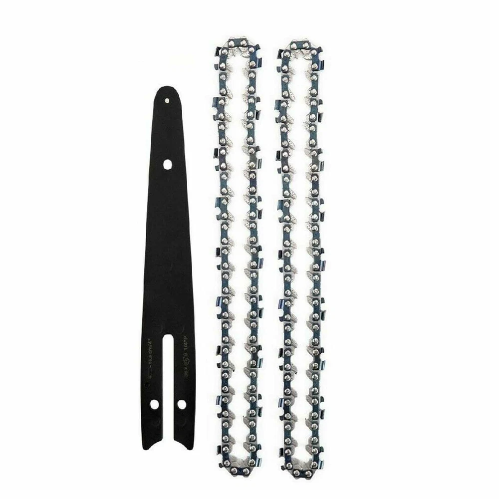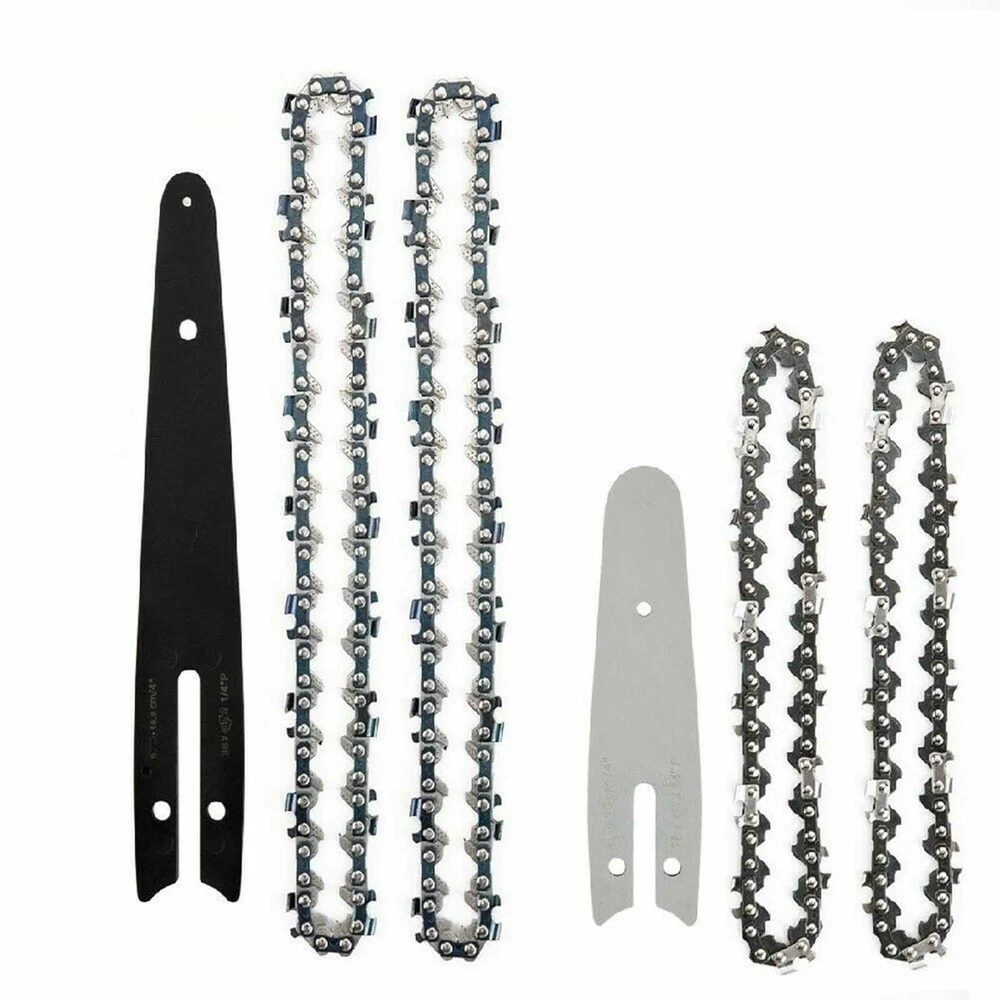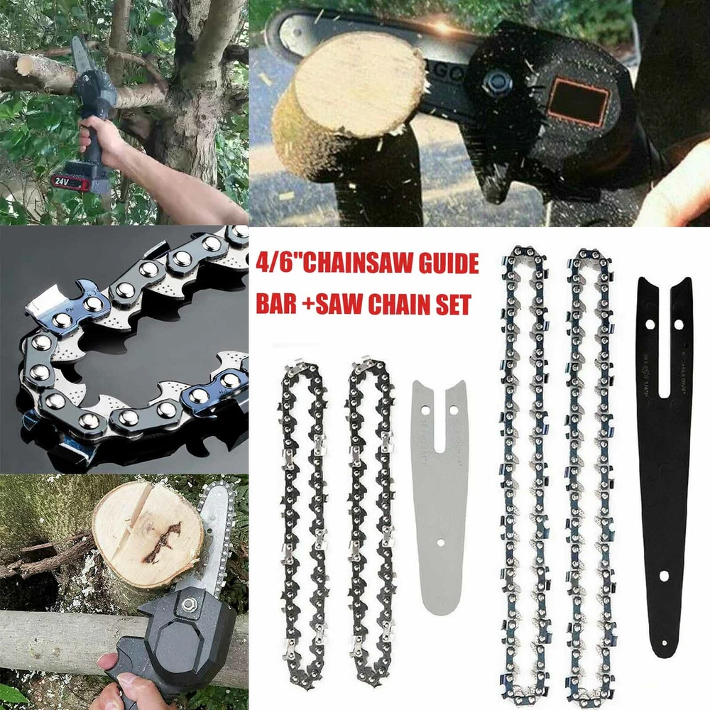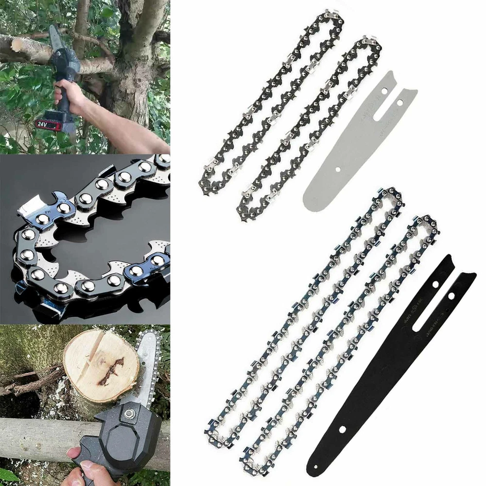 Feature: 1.Ergonomic Design: Special guide plate, the tungsten steel ball does not need to be lubricated, so that the electric shears reduce the resistance during operation and reduce the wear of the machine. 2.The chainsaw chain and guide wheel accessories are made of 65Mn high-speed steel, with high hardness, fast slicing speed, and improved efficiency. 3.The same saw can be configured with different bar lengths. Please verify your parameters to ensure that this chain works with your machine. 4.The heat-treated and quenched rivets make the connection between the links stronger. 5.All chain cutters have good wear resistance. specification: Material: Steel Size: 4 inches/6 inches(as the picture shown) Color: as the picture shown Package included: 1 x Chainsaw Guide Bar 2 x Saw Chain