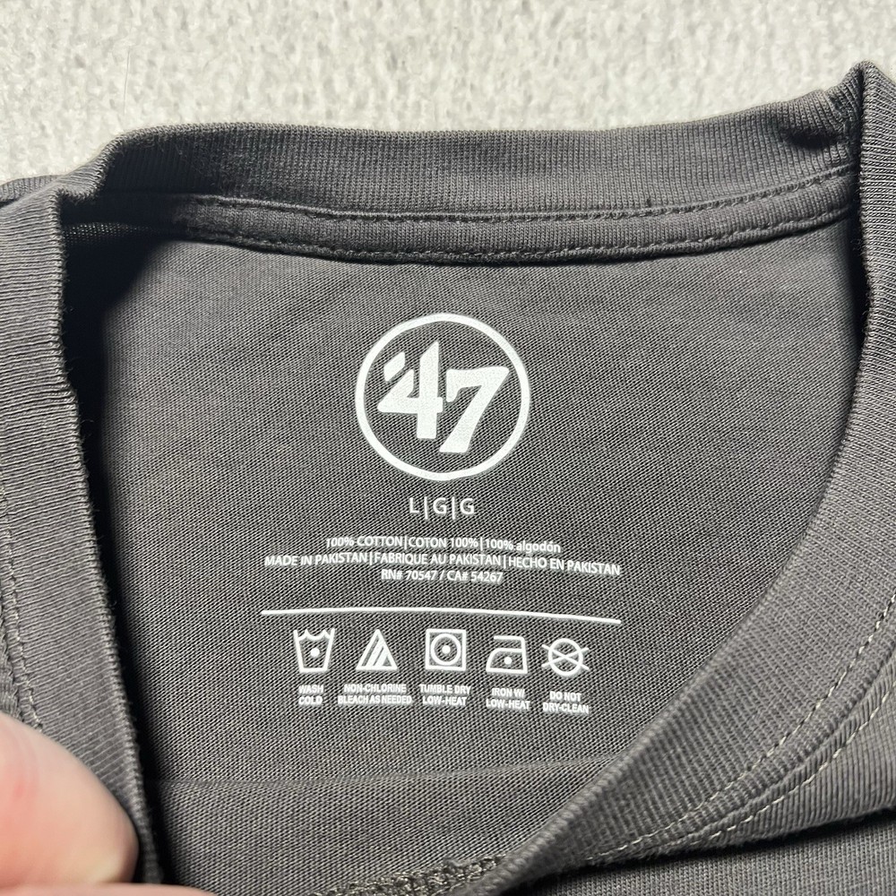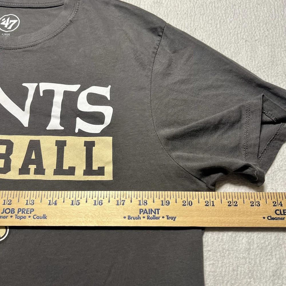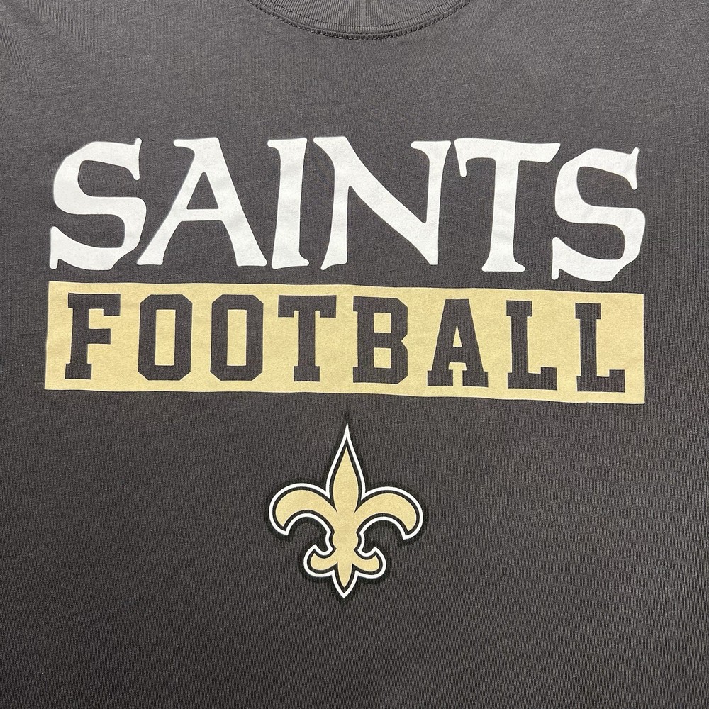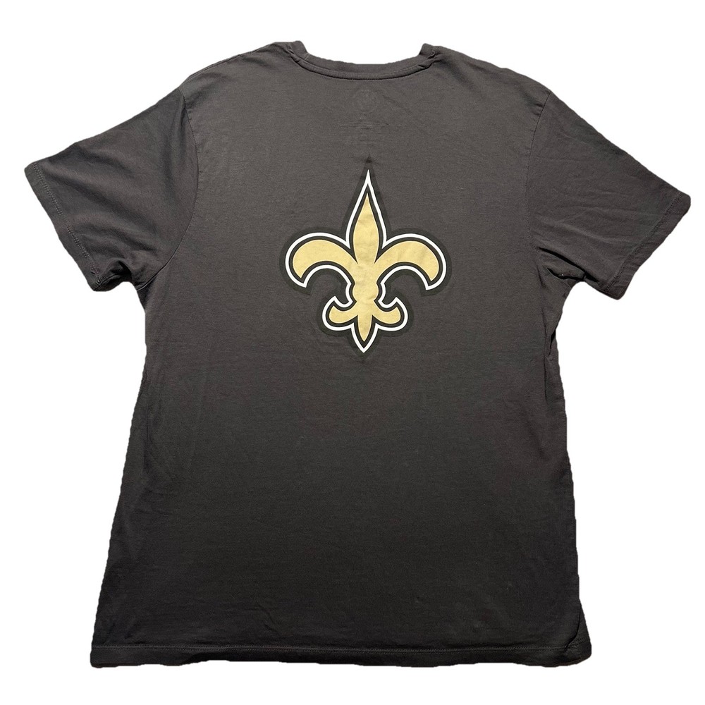 This product is a men's New Orleans Saints NFL 47 Brand short sleeve shirt in dark gray. The shirt features the official team logo of the New Orleans Saints and is officially licensed by the National Football League. Made by '47, a reputable brand in sports apparel, this shirt is perfect for fans of the team, especially those who support player Drew Brees. The shirt is a great addition to any fan's collection and is perfect for wearing during the regular season games. Made in Pakistan, this tee is a must-have for any Saints supporter.