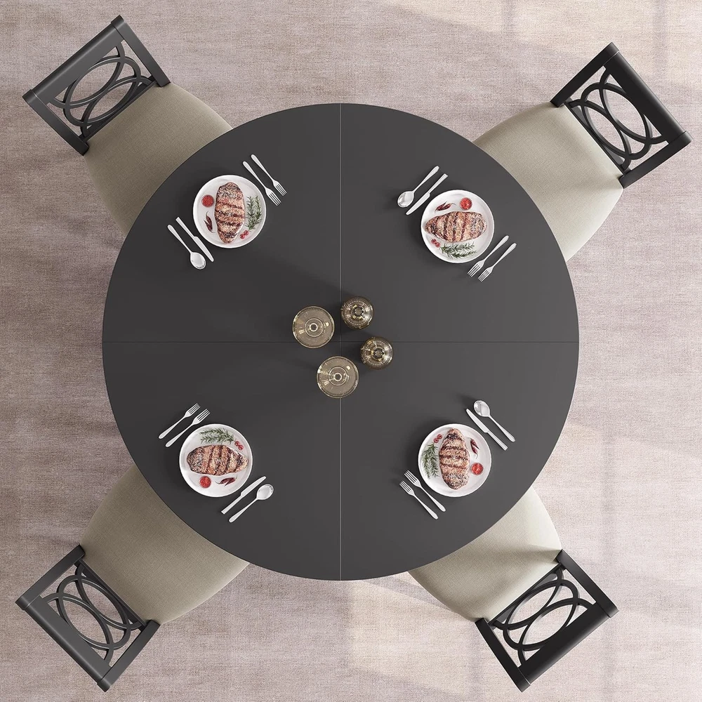 Product Description About this item Solid Structure: Unlike other products, we have effectively addressed common issues such as uneven, unstable tabletops and large gaps between wooden boards. Our four boards are securely joined using custom flat metal brackets, preventing the tabletop from loosening and allowing you to enjoy your meals in comfort. Spacious Design: This round dining table features a generous 47.24-inch tabletop and stands at a height of 29.53 inches, comfortably seating 4 to 6 people without crowding. Its ample size ensures an enjoyable dining experience, providing plenty of space for everyone. Strong Load-Bearing Capacity: Made from a 1.18-inch thick MDF board and supported by solid wooden legs measuring 1.57 inches in thickness, this 47-inch round kitchen table can support a maximum load of up to 300 pounds. You can confidently place tableware, drinks, and decorations—even near the edges—without worrying about tipping due to uneven weight distribution. Adjustable Leg Pads: This kitchen and dining table includes adjustable leg pads, enabling height adjustments of up to 0.39 inches with a simple rotation. The pads incorporate an advanced anti-slip design, allowing them to adapt to various heights and ensuring the table remains stable, eliminating any wobbling on uneven surfaces. Easy and Quick Assembly: This farmhouse dining table employs the latest design technology to streamline the installation process. To make identifying components easier, each accessory comes with corresponding labels, ensuring a hassle-free assembly experience. powered by