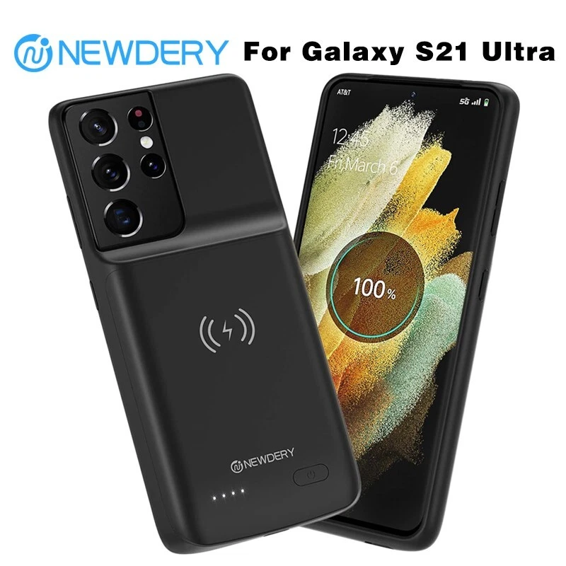 Only for Samsung s21 ultra 6.8 inches NEWDERY Rechargeable Protective Battery Pack Charger Case 4700mAh Compatible With Samsung S21 Ultra 5G 6.8 1. Only for Samsung s21 ultra 6.8 inches, not for s21 6.2 inches, s21 plus 6.7 inches, or other phone models. 2.Built in 4700mAh Lithium ion battery, add extra power to your phone. 3.Support Simultaneously Charge, Phone Charge First. 4.Qi wireless charging & Bluetooth headsets support. 5.This s21 ultra charger case is not waterproof. please use only in dry environments. 6.Certificated by CE, FC and Rohs. This is a portable product that can be carried on the plane. 7.Power your phone anywhere, anytime. Full Protection: Camera protection Soft rubber part Hard shell backplane Raise-Edge Protection Inner face soft fabric Hard shell backplane and raise edge protect your phone from scratch, wear and tear. Built in smart chip: Smart LED Indicator One-click the power button to track the remain power of the Samsung s21 ultra charger case. The light will flash when slim power bank charges your phone. After the samsung s21 ultra battery case is full charged, the led doesn't flash Protect your phone from overcharging, short-circuiting, over voltage, and over current. Provide a safe and effective charging environment for your mobile phone Lightweight And Easy To Hold Lightweight and ultra-slim design for your comfort gives you no hassle carrying it around. Goes right in your pocket, and hold it on your palm. It is comfort to the touch and not slippery whatever. What you get 1*Samsung Galaxy S21 Ultra Battery Case 1*User Manual