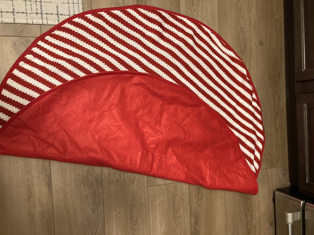 Pattern:GeometricColor:RedShape:RoundItem Width:47Personalize:NoOccasion:ChristmasUPC:Does not applygtin13:Does not applyItem Length:47Brand:NaSet Includes:Tree SkirtType:Tree SkirtTheme:HolidayMaterial:FabricCharacter:ChristmasNumber of Items:1Size:47”Year Manufactured:2008