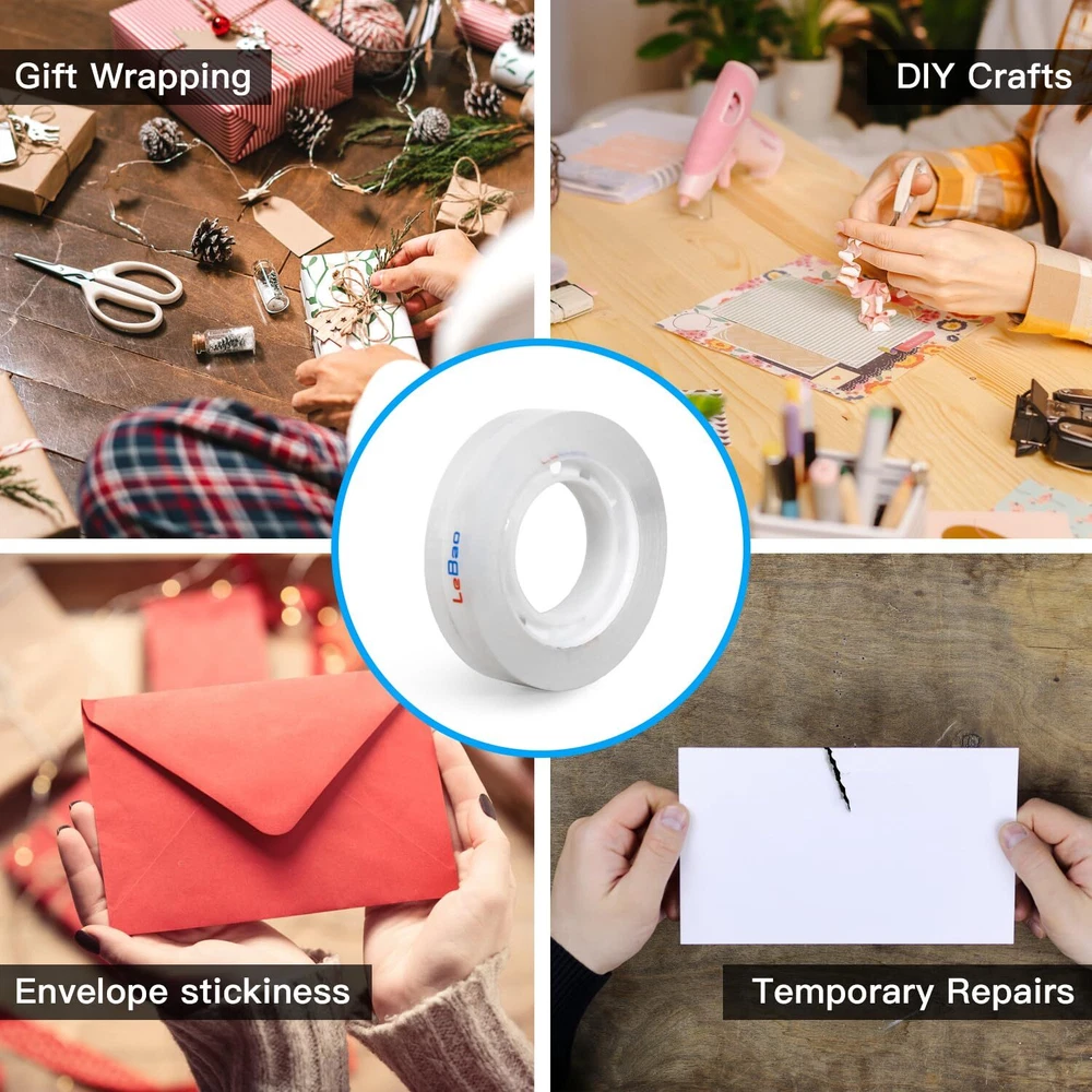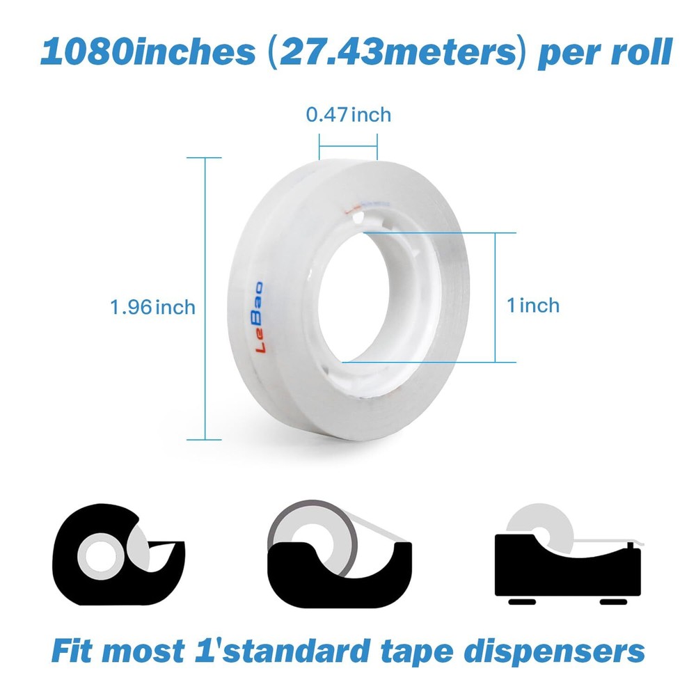 Easy to Use: Our transparent tape is designed to be convenient and user-friendly, allowing you to tear it by hand. This eliminates the need for scissors or other cutting tools, making it effortless and efficient to use. Additionally, this feature ensures safety by avoiding the use of sharp tools, making it suitable for both home and school environments. Quality Materials: The refill tape provides reliable transparency, allowing for a clear view of the adhered parts. It is made of high-quality materials, ensuring excellent adhesion and strong stickiness, without easily tearing. Optimal Width: The office transparent tape is the perfect size, measuring 0.47 inch in width and 30 yards in length per roll. It is designed for use on a variety of materials, such as paper and laminates, making it versatile and practical. Easily Refillable: Our wrapping tape, which has a one-inch inner diameter, fits all standard dispensers. With 12 rolls of transparent tape refills, you'll have enough to meet your daily light packaging needs. For added convenience, it can be used with a dispenser. Wide Range of Uses: This tape is perfect for safeguarding letters, sealing envelopes, repairing documents, wrapping gifts, packaging lightweight items, and sticking torn paper or pages back together.