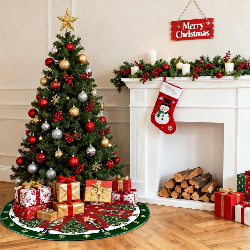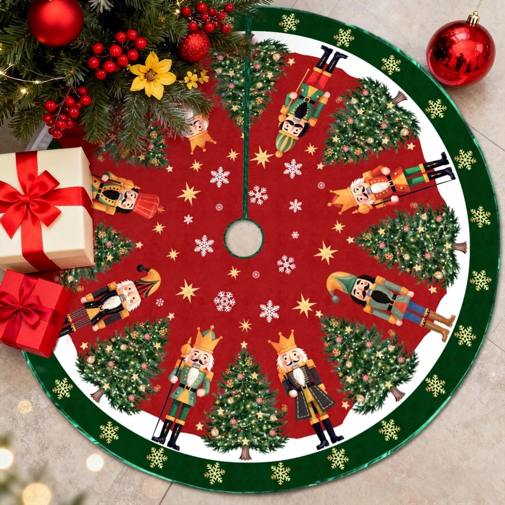 Nutcracker Christmas Tree Skirt 48 Inches Christmas Tree Mats Xmas Collar