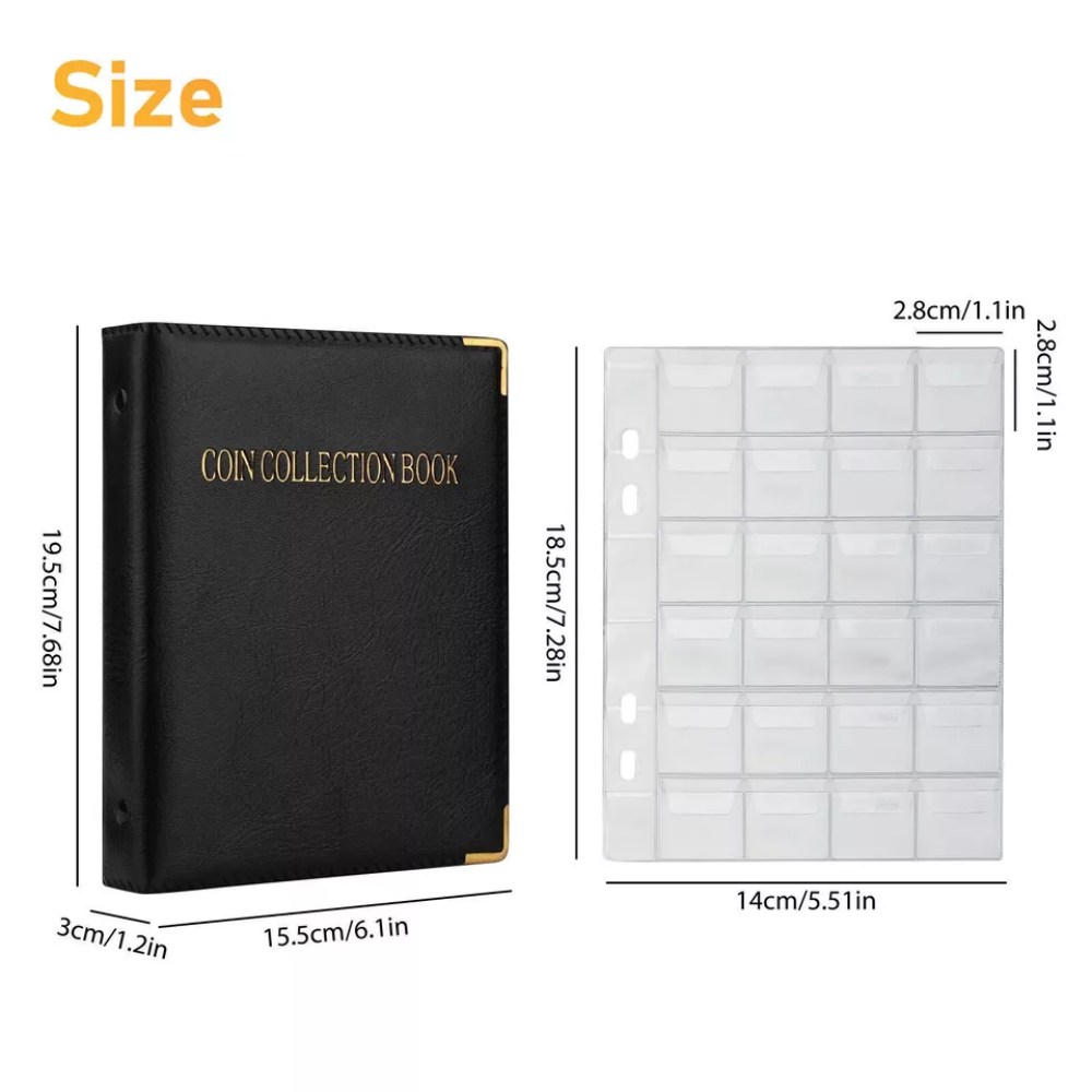Product Description Product Introduction: 【 Pages can be added 】 Body type mechanical ring metal shelf allows you to easily add additional pages or remove pages This money collecting book is an ideal gift for coin collectors or friends who are loving coins collection. 【 High Transparency 】 Each pocket measures approximately 3x3cm / 1.2x1.2 inches Each page is approximately 13.7x18.3cm / 5.4x7.2 inches Suitable for coins, hats, tokens, medals, badges and small souvenirs, and keep them properly. Different coins have different pocket sizes and are practical. 【 Flap Design 】 This product has enough space for you to display and protect your coins, hats, tokens, medals, badges. There is a flap on the top of each coin bag to protect it and prevent coins from falling. Coins are waterproof, moisture-proof and dust-proof Highly transparent pages, allow you to view your coins clearly. 【 High Transparency 】 Each pocket measures approximately 3x3cm / 1.2x1.2 inches Each page is approximately 13.7x18.3cm / 5.4x7.2 inches Suitable for coins, hats, tokens, medals, badges and small souvenirs, and keep them properly. Different coins have different pocket sizes and are practical. 【 Flap Design 】 This product has enough space for you to display and protect your coins, hats, tokens, medals, badges. There is a flap on the top of each coin bag to protect it and prevent coins from falling. Coins are waterproof, moisture-proof and dust-proof Highly transparent pages, allow you to view your coins clearly. Feature: Material: The coin collection book is covered with high-grade soft leather, which feels good, beautiful and durable, and hand-sewn is more atmospheric and durable. The loose leaf is made of transparent PVC material which is clear and durable. Size: The size of each loose leaf is about 18.5 cm x 14 cm (7.28 inches x 5.51 inches), suitable for coins within 30mm*30mm. Large Capacity: 20 pages can hold 480 coins, each pocket of the coin collector has a top flap to protect the coins from slipping out. Multi-purpose: Organize and store collectible pennies, quarters, dimes, nickels, tokens, medals and badges and more with the coin collector booklet. Specification: Type: Coin Collection Color: Black Material: PVC+Leather Pages: 20 Each item Number Of Cells: 480 Each item Size: 19.5x15.5cm (7.68x6.1in) Size Per Page: 18.5x14cm (7.28x5.51in) Package Included: 1 x Coin Collection Book About Us Payment Shipping Returns Contact Us 1.This is professional Seller.We will reply your message within 24 hours. 2.Please contact us whenever you have any question about the item. We will deal with it as soon as possible. 1.PayPal is easy and safe, and we can accept PayPal payment. 2.Please do not hesitate to contact us if you have any questions of payment procedures. 3.Sales Tax: The tax is collected by eBay, not us。 1.Items dispatched to buyer's PayPal comfimed address from Monday to Saturday(Sunday & Holiday excluded) via USPS/DHL within 20 hours after payment has been received.Please check your shipping address carefully before checkout.If you want to change the address, pls kindly contact us through ebay message within three hours after payment.Otherwise, any change information may be disregarded once dispatched. 2.Items are generally shipped usually after an approved payment by the buyer(Saturday and Sunday excluded). 3.Shipping from warehouses in CA usually takes 3-5 business days to reach completion for orders within the US placed by USPS first class mail(tracking numbers available). 4.Do not provide local pick up service. 1. 30 days warranty from the purchased date. Please contact us via email before returning the defective item. 2.Our warranty does not extended to any product that are physically damaged or that are not under normal operating conditions as result of misuse or improper installation on the buyer/user's part. 3.Return items should include the original packaging and all accessories. buyers MUST contact us for the returning address. 4.In all cases, buyers pay shipping fees at their own cost to return products for exchange or refund. We will be responsible for the postage of replacements. Refund will be made upon receipt of the returned item. Pls make a note in a paper with your eBay UserID, purchased date and details of the issue you are experiencing. 1.If you are satisfied with the product you received, please leave us positive feedback and 5 scores DSR. 2.If you are dissatisfied for any reason, please donot be quick to leave negative/neutral feedback. Pls contact with us via Ebay message, We work hard to resolve any problem to make sure EVERY CUSTOMER 100% SATISFIED and always leave positive feedback to all our customer. 3.If you feel delighted with this transation, Pls give us all 5-stars. We strive for 5-star service by providing high-quality goods and perfect service. Therefore, pls take the transaction seriously. (Positive)feedback is simply what we seek for. If you have any problems about your purchase, just let us know through "MY MESSAGES". We promise that we will try our best to solve problem for you since our mission as ebay seller is make sure that you are satisfied with your every transaction. So Pls contact us first to get the best solution before leave a (Negativa)or (Neutral)feedback. About Us 1.This is professional Seller.We will reply your message within 24 hours. 2.Please contact us whenever you have any question about the item. We will deal with it as soon as possible. Payment 1.PayPal is easy and safe, and we can accept PayPal payment. 2.Please do not hesitate to contact us if you have any questions of payment procedures. 3.Sales Tax: The tax is collected by eBay, not us。 Shipping 1.Items dispatched to buyer's PayPal comfimed address from Monday to Saturday(Sunday & Holiday excluded) via USPS/DHL within 20 hours after payment has been received.Please check your shipping address carefully before checkout.If you want to change the address, pls kindly contact us thr