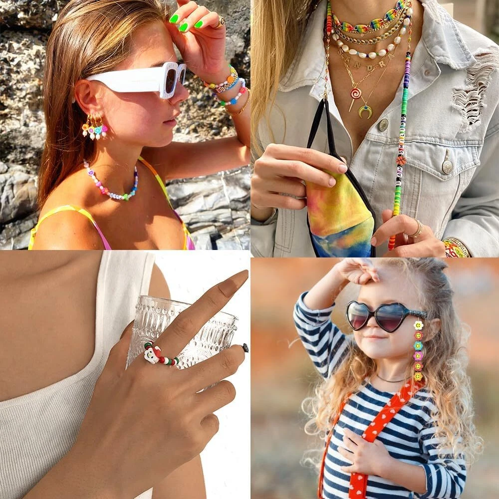 All You Need Included: You will get 480pcs polymer clay beads charms in 24 different styles, and all the clay beads are packed in a plastic gift box, the beaded set is also equipped with two rolls of 5m crystal elastic strings and a pair of exquisite scissors, which can meet all your needs for DIY jewelry production! Rich Styles And Vibrant Colors:24 different shapes beads contain, fruit, animals, flowers, heart, stars, candy, letters, rainbow, rainbow, mushroom, soccer, ocean, yinyang, Christmas, rich themed beading and vibrant colors enough to satisfy your child’s love. Premium Quality: All beads are made of quality clay materials, non-toxic and environmentally friendly and can be used with confidence. The color will not fade easily, and the jewelry made can also be bright and shiny for a long time. Wide Range of Applications: Perfect for Beading, Jewelry Making, bracelet earring necklace making supplies, phone charm, phone lanyard wrist, pendants, waist beads kit, hairpin or hair braids for kids, fashionable shoes decor and party decoration. Smile face beads adhered to hairpin would be a perfect hair decoration. Great Gift for Girls:These polymer clay beading kit would also be used as a holiday gift, birthday gift, friend gift and so on. There is nothing better than making jewelry as a gift by yourself. Product Description