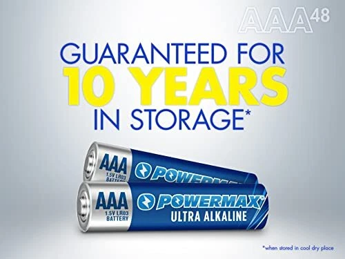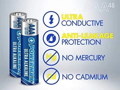 AAA Alkaline Batteries are equipped with superior battery technology you can depend on. alkaline batteries are ultra long lasting batteries and provide optimum performance in high-drain and super high-drain devices. This recloseable assortment pack includes 48 size AAA batteries that deliver the right amount of power for your needs. alkaline batteries are great to have on hand for a variety of everyday household devices, including clocks, remote controls, game controllers, digital cameras, toys and more. AAA alkaline batteries won't leak and are designed to last ten years in storage. The 1.5-volt batteries contain no mercury or cadmium, making them a smart choice for your family and for the environment. At , our mission is to provide trusted and dependable power for everyday needs. 48 AAA BATTERIES: Combo pack includes 48 AAA bulk batteries that are bundled in a recloseable package for easy storage and organization EVERYDAY DEVICES: AAA batteries deliver optimal power to common every day devices such as clocks, remote controls, game controllers, digital cameras, toys and more LONG LASTING POWER: ultra alkaline batteries deliver long lasting power that is consistent and reliable 10-YEAR SHELF LIFE: All alkaline batteries are built to last with an impressive ten-year shelf life ENVIRONMENTAL IMPACT: Our 1.5-volt batteries contain no mercury or cadmium, making them a smart choice for your family and for the environment