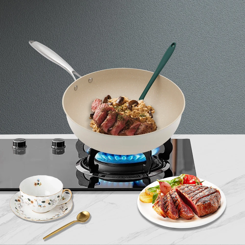 Specification Material: Aluminum, Stainless Steel, Silicone Color: Milky White Process: Medical Stone Coating Style: Modern Assembly Required: No Mounting Type: Tabletop Capacity: 4.8L/162.33oz Mouth Diameter: 30cm/11.81in Depth: 9.5cm/3.74in Lid Height: 15cm/5.9in Applicable Number of People: 4-6 Package Size: 54*37*14cm/21.26*14.57*5.51in Gross Weight: 2.6kg/5.73lbs Net Weight: 2.4kg/5.29lbs Package Included 1* Frying Pot with Lid 1* Spatula Notes 1.Please do not allow the oil temperature to rise above 392℉. 2.Please do not use hard materials such as steel wire balls to clean the cookware. 3.The pot is dry in the first stage, it is recommended not to cook noodles or starchy food, and the operation will be better in the later stage. It is recommended that you control the fire when 4.8L Nonstick Frying Pot Skillet With Lid Healthy Chef Pot Efficient Cooking Description Traditional iron or stainless steel frying pots can cause your food to stick to the pots, but our non-stick pot is a good solution to this problem. It is an efficient cooking tool that combines natural medical stone coating with modern non-stick technology, combining natural beauty and practicality, aiming to bring you a healthy and relaxing cooking experience, whether it's sauteing, stir-frying, or stewing. Key Features Made to Last: Our product consists of a high-quality aluminum pot with a stainless steel handle, treated with a medical stone coating that is sturdy and heat-resistant, non-stick and stain-resistant, ensuring long-term beauty and practicality. Excellent Performance: This product uses a high-fold heat circulation layer, a heat-conducting alloy layer, a sturdy wear-resistant base layer, and pebble-suspended microparticles to make it heat up quickly, and it also achieves a double non-stick effect inside and out. Efficient Cooking: Without the steam outlet on the lid of this product, this product makes a stronger seal between the lid and the pot, forming a good seal and internal circulation mechanism for steam, which can cook food evenly and quickly while also maintaining the temperature of the food and preserving its flavor. Large Capacity: The 3.74-inch deepening pot and large capacity of 162.33oz can cook enough food for 4-6 people at one time, thus satisfying you and your family's eating needs. Safe & Healthy to Use: This product is PFOA-free to reduce the hazards of grease and smoke, making it convenient for you to prepare safe and healthy food while maintaining its non-stick properties. Exquisite Appearance: The smooth milky white surface and smooth lines with silver handles and a pebble-shaped cover bead make it elegant and classy, adding a bright landscape to your kitchen as well. Effortless Cleaning: Its smooth surface and non-stick coating make it less likely to accumulate grease, making it easy for you to clean and maintain. Ideal Gift: With good performance and a modern appearance, it can be used as an ideal housewarming gift for parents, friends, and lovers so that they can also enjoy more delicious and healthy food. Good Customer Service: We aim to provide quality products and services. If you have problems, please feel free to contact us. We will reply and solve the problem for you as soon as possible. Details Anti-scald Handle: The stainless steel handle has good insulation and heat resistance to improve your safety. Threaded Bottom: This design makes it more wear-resistant and non-slip, enhancing its practicality. Application This product is suitable for gas cooktops, induction cooktops, electric ceramic ovens, etc. This pot can be used for sauteing, stir-frying, braising, and boiling. Specification Material: Aluminum, Stainless Steel, Silicone Color: Milky White Process: Medical Stone Coating Style: Modern Assembly Required: No Mounting Type: Tabletop Capacity: 4.8L/162.33oz Mouth Diameter: 30cm/11.81in Depth: 9.5cm/3.74in Lid Height: 15cm/5.9in Applicable Number of People: 4-6 Package Size: 54*37*14cm/21.26*14.57*5.51in Gross Weight: 2.6kg/5.73lbs Net Weight: 2.4kg/5.29lbs Package Included 1* Frying Pot with Lid 1* Spatula Notes 1.Please do not allow the oil temperature to rise above 392℉. 2.Please do not use hard materials such as steel wire balls to clean the cookware. 3.The pot is dry in the first stage, it is recommended not to cook noodles or starchy food, and the operation will be better in the later stage. It is recommended that you control the fire when you use it, use medium fire for stir-frying vegetables, and use low fire for frying meat and sautéing things. 4.products support the use of a new induction cooker, the old induction cooker may not be recognized, the general stir-fry heat acceptance range of 1200w ~ 1800w. Due to the bottom of the pot's heat capacity, it is recommended that no more than 2000w. 5.The gas cooking stove is recommended to be used with low to medium heat. Please note that the gas stove itself has a floating fire extinguished situation, it is recommended to do dishes in a timely manner after cleaning the pot and pot surface, to avoid leaving stains in the second fire extinguished caused by adsorption to strengthen the stains caused by the difficult to clean the phenomenon. (Normal circumstances can be avoided) 6.Please put a little oil when using it to avoid empty and dry burning. Please allow the slight color difference caused by the shooting light and 1-3cm error due to manual measurement, and make sure you do not mind before ordering. Payment Delivery details Terms of sales About us Contact us Payment We accept ebay payment 。 Fees such as import duties, taxes are not included in the item price or shipping costs. These charges are the buyer's responsibility. Delivery details Shipping: 2-9 working days to: USA Terms of sales We maintain high standards of excellence and strive for hundred percent customer satisfaction. Feedback is very important to us. We hope that you contact us immediately before you give neutral or negative feedback, so that we can