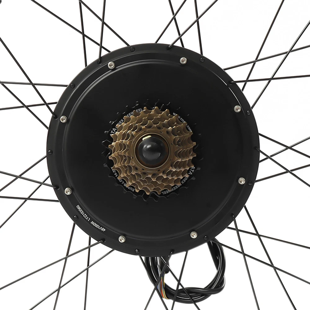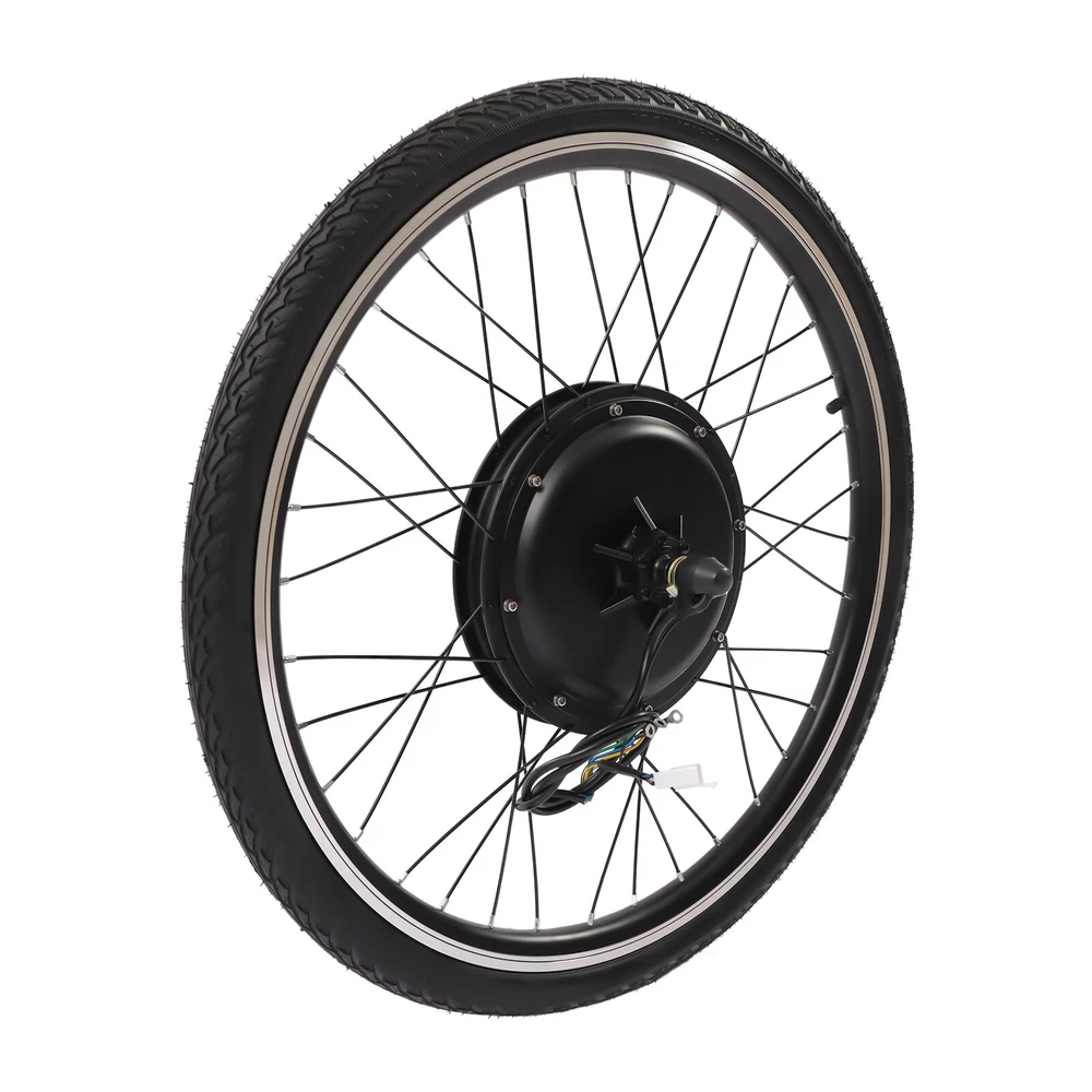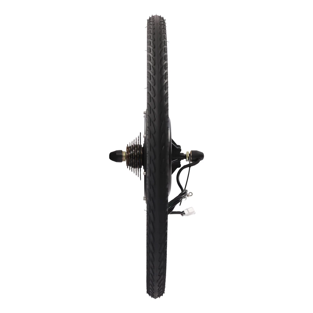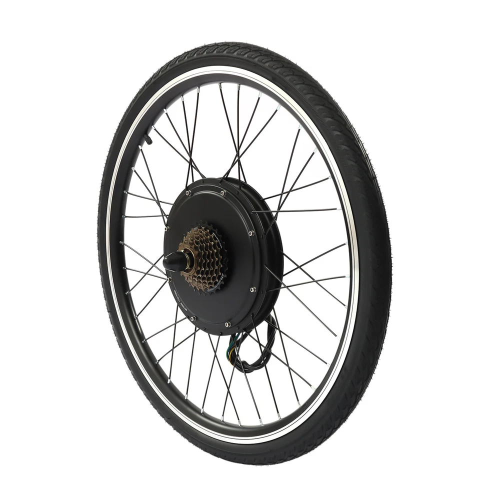 48V 1000W 26" E Bike Conversion Kit Electric Bicycle Rear Wheel Hub Motor +Light Description Ride a beautiful bike, shuttle on the road with flowers on both sides, and experience the joy of life with passion and speed. Our electric bicycle motor conversion kit can help you do this. It is made of a variety of high-quality materials, which has laid a solid foundation for your long-term use. Brushless and toothless motor has high efficiency and can provide strong power. A speed of 56km/h can make you a wind chaser. With it, you will experience a different ride. Key Features Premium Material: This product is made of aluminum, iron, copper, magnetic steel, aluminum alloy, and rubber butyl. All of these materials have good performances, making the kit durable, and not easy to rust. Therefore, you can use it for a long time without frequent replacement, which can save your use cost to a certain extent. Exquisite Craftsmanship: The kit adopts the process of baking varnish and plastic powder, which makes it has good toughness, corrosion-resistant , and wear-resistant , and also makes the color brighter. Budget-friendly Design: The package of this kit includes all the items required, such as controller bags and auxiliary sensor, so you don’t need to buy them separately, which saves your costs and provides you with more convenience. Brushless and Toothless Motor: Our kit uses an upgraded 1000W brushless and toothless motor with an efficiency of more than 80%, which runs smoother with low noise than a brushed motor thus providing stable power to the bike. And brushless motors do not need to replace brushes, making maintenance easier. High Efficiency: The rotating speed of the motor is 440rpm, and the torque is 45N M. At the same time, its speed can achieve 53km/h, which can provide you with a better riding experience. In addition, it uses thickened round spokes to improve the wind-breaking ability without stepping in the air. Safe and Reliable: This conversion kit is equipped with a powerful controller, which is conducive to ensuring the smooth operation of other parts, making your entire process safer and easier. Besides, it is equipped with a power-off brake handle, which can cut off the power of the motor in case of emergency braking so that the bike can stop in time and reduce potential safety hazards. Enjoy Riding: With this high-performance and cost-effective conversion kit, you can convert ordinary bicycles into electric bicycles, enjoy riding more confidently and happily, and have a better mood. Strong Bearing Capacity: The electric bicycle motor conversion kit is equipped with 36 spokes, and the staggering weaving design makes the stress point uniform and firm, so it can bear a weight of about 120kg/264.55lbs, which is suitable for most people. Adjustable Speed: The product is equipped with a thumb throttle, through which you can increase or decrease the speed, which provides more convenience for your cycling. Convenient Installation: A detailed installation manual is concluded in the package, so you only need to follow the manual steps, which saves you energy. Ideal Gift: With powerful functions and a beautiful appearance, you can give this conversion kit to your friends or family who love riding. Worry-free Service: We have been working hard to provide better service and quality for our customers, which is our goal. If there is any quality problem with our conversion kits. Please contact us in time. Details Auxiliary Sensor: The pedal of this kit is equipped with an auxiliary sensor, which can transmit your stepping frequency and force to the controller, and then adjust the motor speed accordingly. Controller Bag: This conversion kit is equipped with a black controller bag made of oxford cloth, which is waterproof , soft, and wear-resistant . It is not only beautiful but also can be used to store the controller and keep it clean. Texture: There are many textures on the wheel surface, which can increase friction, prevent skidding, and ensure your riding is more stable, smooth, and safe. Rims: Rims of this group of electric wheels are made of high-quality aluminum magnesium alloy, which has waterproof and anti-corrosion properties. High-quality rims are more durable and extend the service life of the product. LED Light: The thumb throttle is equipped with three LED lights. The bright lights can illuminate the road for you at night and bring you a sense of security. Application This conversion kit is suitable for cyclists to convert ordinary bicycles into electric bicycles and it fits 26inch bikes. Specifications Color: Black Material: Aluminum, Iron, Copper, Magnetic Steel, Aluminum Alloy, Rubber Butyl, Aluminum Magnesium Alloy, Oxford Cloth Surface Treatment: Baking Varnish, Plastic Powder Bike Type: Electric Bike Suspension Type: Rear Voltage: 48V Power: 1000W Rotational Speed: 440rpm Torque: 45N.M Light: 3 LED Efficiency of Motor: >80% Speed: 53km/h Loading Capacity: 120kg/264.55lbs Battery Type: 48v17-20ah Lithium Batteries or Lead-acid Batteries(Not Included) Specific Uses For Product: Road Suitable Wheel Size: 26inch Wheel Diameter: 65.5cm/25.8inch Length of Motor Shaft: 20cm/7.8inch Rear Fork Distance: 13.5cm/5.3inch Thickness: 4cm/1.5inch Net Weight: 10.4kg/22.93lbs Gross Weight: 12.2kg/26.9lbs Package Size: 66*66*23cm/25.98*25.98*9.06inch Package Included 1* Motor Wheel 1* Flywheel 1* Pedal Assistant Sensor 1* Controller Bag 1* English Manual All Accessories for Assembly Notes Please read the user manual carefully before use and pay special attention to the safety precautions included. Please note that our kit does not contain batteries. We recommend that you use 48v17-20ah lithium batteries or lead-acid batteries. While connecting the controller to the wires, please make sure that you connect the right colors to the controller. Otherwise, the controller may be broken. Please note that the product is not waterproof, so please do not ride in rainy days. Please allow the slight col