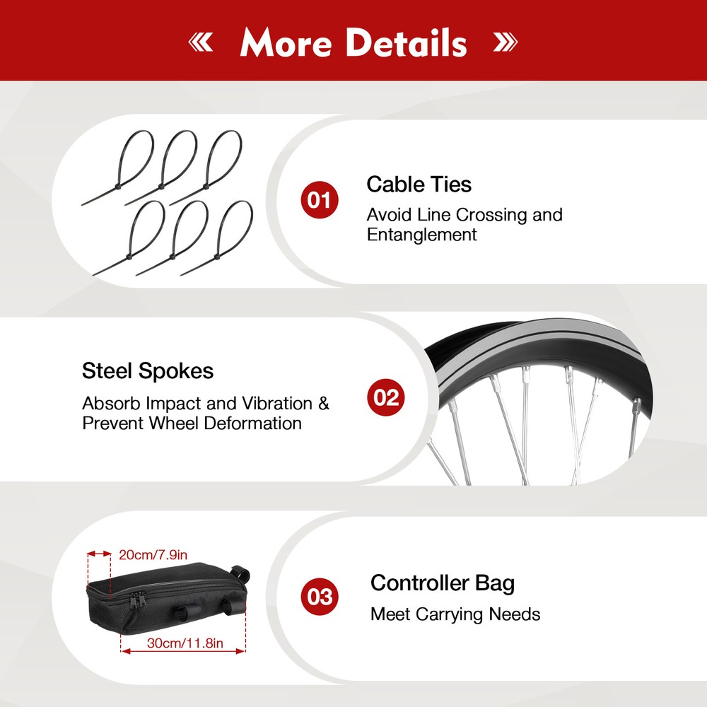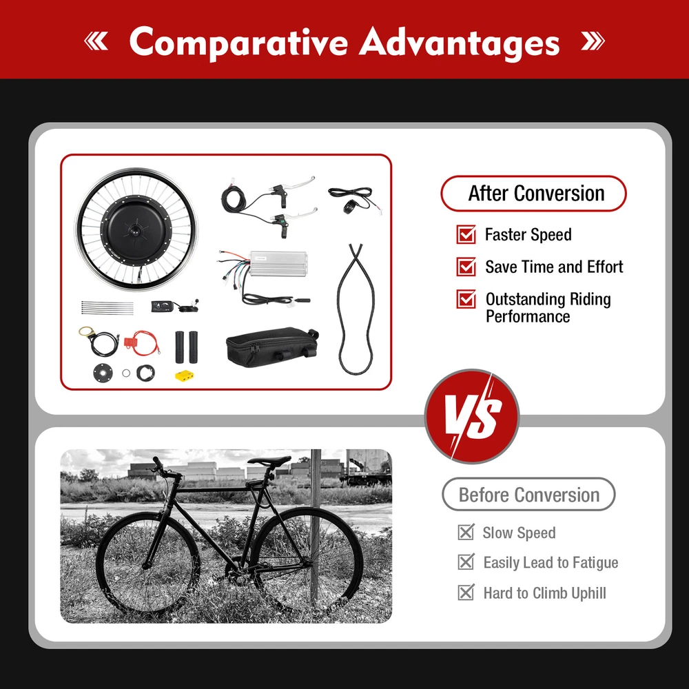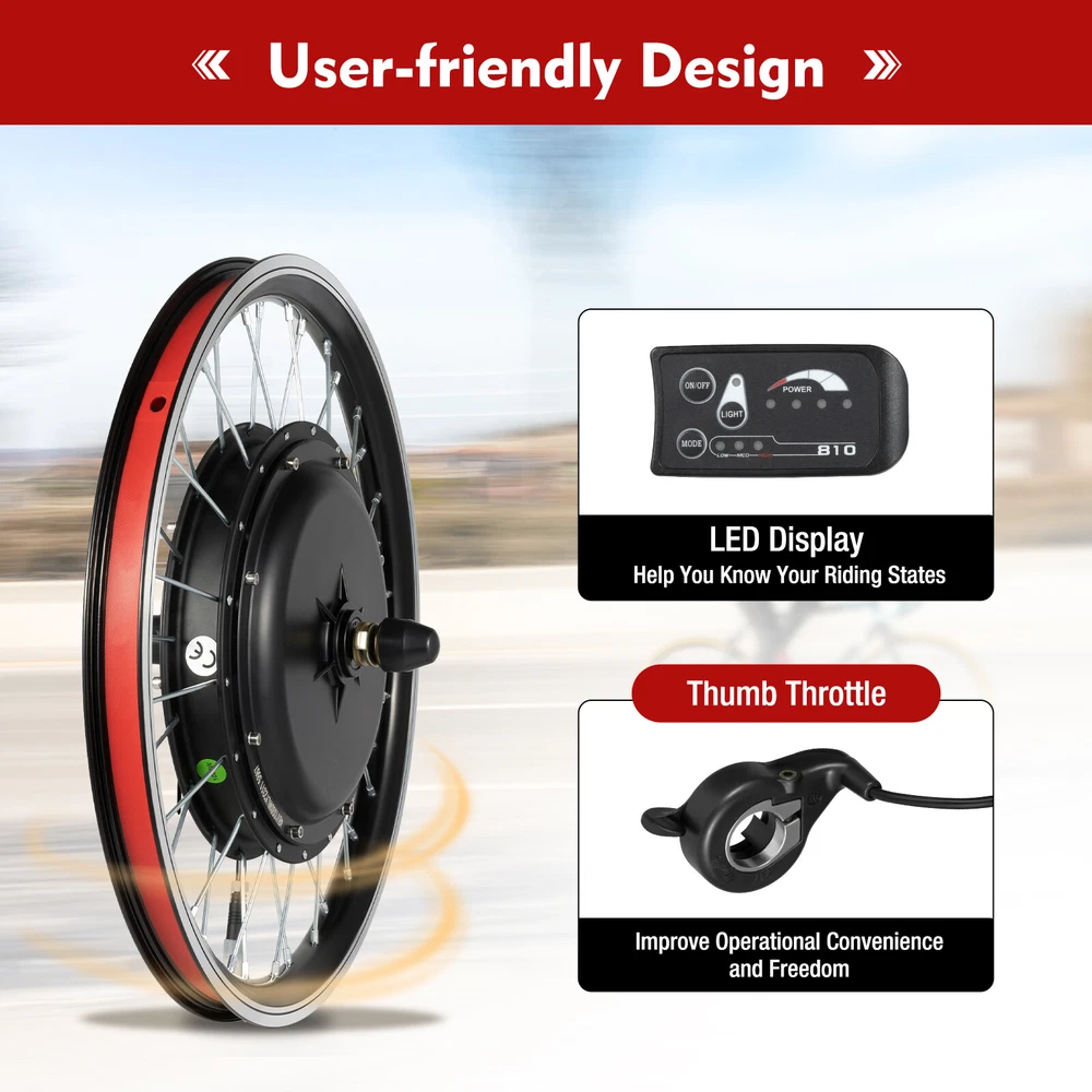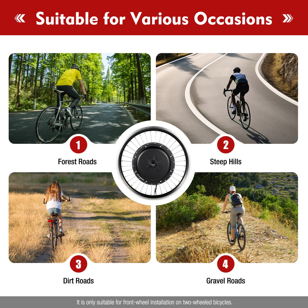 This front wheel conversion kit turns any 20-inch bike into a powerful e-bike! The 48V 1000W hub motor delivers strong, smooth acceleration—perfect for commutes or weekend rides. Just be sure to pair it with the right battery (not included) and double-check wire connections to avoid damage. Installation takes effort, especially for beginners, but the final result is totally worth it. No tires included, so pick good-quality ones. A fantastic upgrade for DIY e-bike enthusiasts—highly recommend!