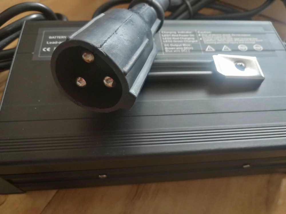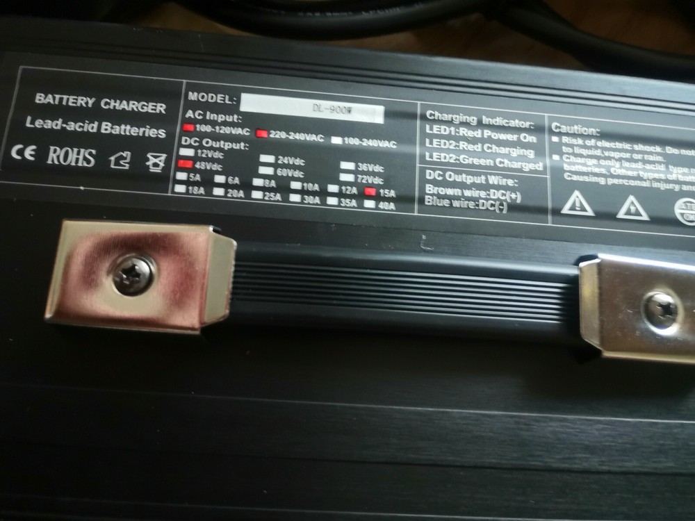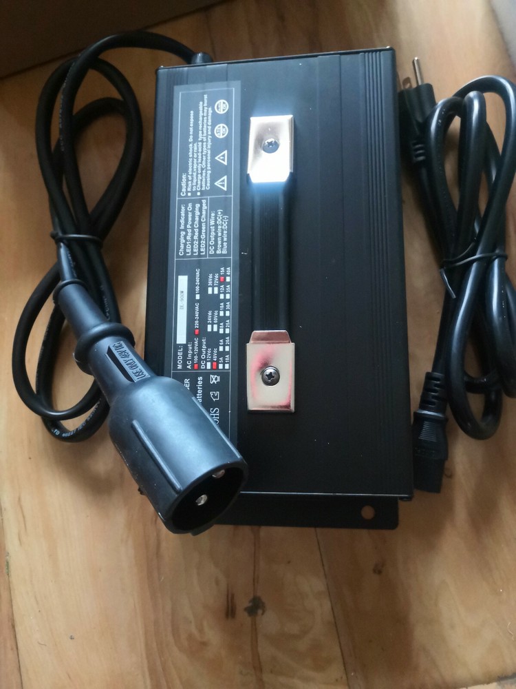 Specs: Input Voltage: 110-120v AC Output Voltage: 48v DC 15Amps Fan Forced ventilation LED Status Lights Automatic This charger comes pre-configured with an 48v style connector plug. (see picture) Fully automatic 48 Volt battery charger, Made for overnight charging. The trickle charge keeps battery at its best performance preventing over charging keeping battery at its best condition for its unbeatable price. Featuring a trickle mode, resulting in added performance and longevity, which is kinder to your battery. Featuring you on the charging status are 2 LED lights. (110VAC 60 Hz) Operating on standard household power.