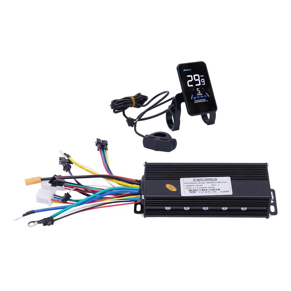 48V Brushless Controller Kit LCD Display Throttle Cable For Electric Bike E-bike 48V 1200W Electric Bicycle Brushless Controller Kit, E-Bicycle Brushless Controller with LCD Display Color Screen Kit for Electric Bicycle Scooter DIY Part Key Features Sensitive Control: The brushless controller can be sensitive to the state of electric bike, providing steady speed and sensitive control of braking and direction changes. Meanwhile, the turner can also provide stable and sensitive speed control. Comforatble Riding: The FOC sine wave controller makes the motor produce low noise and rotate smoothly with high efficiency. This can reduce the noise and vibration during riding, bringing you a more comfortable riding experience. LCD Display: The LCD meter with color screen can clearly display the real-time speed, maximum speed, average speed, total mileage, single mileage, battery power, assist gear/speed grading, cruise control , allowing you to grasp the usage statues of the product. Meanwhile, backlight enables you to see screen clearly in dim environment. High Safety: The wires and interfaces have good contact to ensure low malfunction for long time use. Meanwhile, the over/under voltage protection, over current protection, over load protection, over heating protection, anti-runaway protection, locked-motor protection make this kit safe and reliable. Good Heat Dissipation Ability: The aluminum shell with a groove design ensures good heat dissipation and high temperature resistance ability, which provides better protection for inner circuit to avoid thermal overloading. Labor-saving: You don't have to pedal your bike laboriously anymore with this product and only need to gently rotate the turner to control the speed flexibly, which is very labor-saving and convenient. Premium Material: The controller is made of high-quality aluminium alloy with high hardness and toughness, and premium circuit board with high torque, low heat, reverse polarity protection, and high rated current. So you can use it for a long time. Easy to Install: The structure of the product is simple and the accessories are complete. You only need a few simple steps to install it, which is very simple and convenient. Details Pedal Assistant Sensor: It senses the rhythm of the pedal and adjusts the speed of the motor accordingly. This helps on long trips and avoids wrist pain caused by constant pressure. Meter Bracket: You can put the LCD meter on the bracket for easy storage and viewing the display on the meter. It is suitable for 31.8mm handlebars, and can be applied to 21mm/22mm/23mm/24mm handlebars with a rubber ring. Application It is suitable for electric bicycles, electric tricycles, electric scooters, and a variety of DC motors. Specification Model: NC3630 Material: Aluminium Alloy Voltage: DC 36/48V Matchable Motor Power: 750-1200W Current: 30±1A Meter Type: LCD Instrument Display: Real-time Speed, Maximum Speed, Average Speed, Total Mileage, Single Mileage, Battery Power Display, Assist Gear/Speed Grading, Cruise Control Net Weight: 0.9kg/1.9lbs Controller Size: 212*115*55mm/8.3*4.5*2inch LCD Meter Size (L*W): 68*96mm/2.6*3.7inch Suitable Handbar Size: 21mm/0.83in, 22mm/0.87in, 23mm/0.9in, 24mm/0.94in, 31.8mm/1.25in Different Cable For Different Uses Red: Power Input Yellow: Power Output Blue: Signal Transmission Green: Signal Reception Black: Power Negative Package Included ☑ 1* Color Screen LCD Meter&Bracket ☑ 1* Thumb Turner ☑ 1* Turnbuckle Cover ☑ 1* Controller ☑ 1* Pedal Assistant Sensor ☑ Other Accessories for Assembly Notes The speed is related to wheel size, road condition, battery condition, guest load, wind speed, and other factors. Please make sure a solid connection between the motor and the controller. Please make sure that the inner core of each plug is not damaged, broken, or bent. You need to connect the machine correctly and firmly during installation so that the product can work properly. If there is a mistake during the installation process, the product will not work properly. Payment Delivery details Terms of sales About us Contact us Payment We accept ebay payment 。 Fees such as import duties, taxes are not included in the item price or shipping costs. These charges are the buyer's responsibility. Delivery details Shipping: 2-9 working days to: USA Terms of sales We maintain high standards of excellence and strive for hundred percent customer satisfaction. Feedback is very important to us. We hope that you contact us immediately before you give neutral or negative feedback, so that we can address your concerns. It is impossible to address issues if we do not know about them! About us Your satis faction is our ultimate goal. We work hard to earn your trust and future business. Our certified technicians have tested each item before shipping. The unit comes with 1 year limited warranty on all manufacturing defects. a) If you receive a defective item, you may return it or ask for a discount. Please contact us within 14 days after you receive the package. b) What you returned must be intact and in its original packaging as re? u. Customer is responsible for shipping costs of the returned item. c) We will cover the cost of shipping back t with the shipping rate indicated in the registration page. We will send you a new unit or refund the full payment you paid. Thank you. Contact us Business Hour Business Hour: Monday To Friday: 8:30 AM to 5:00 PM (Beijing China time) Due to time zones, our reply to your questions may not be immediately. But within above working time, we will reply your email within 24 hours. If it's non-workdays, please kindly be patient and wait till Monday. Please contact us with ebay message. Please feel free to contact us if you have any questions. Monday To Friday: 8:30 AM to 5:00 PM (Beijing China time) Due to time zones, our reply to your questions may not be immediately. But within above working time, we will reply your email within 24 hours. If it's non-workdays, pl