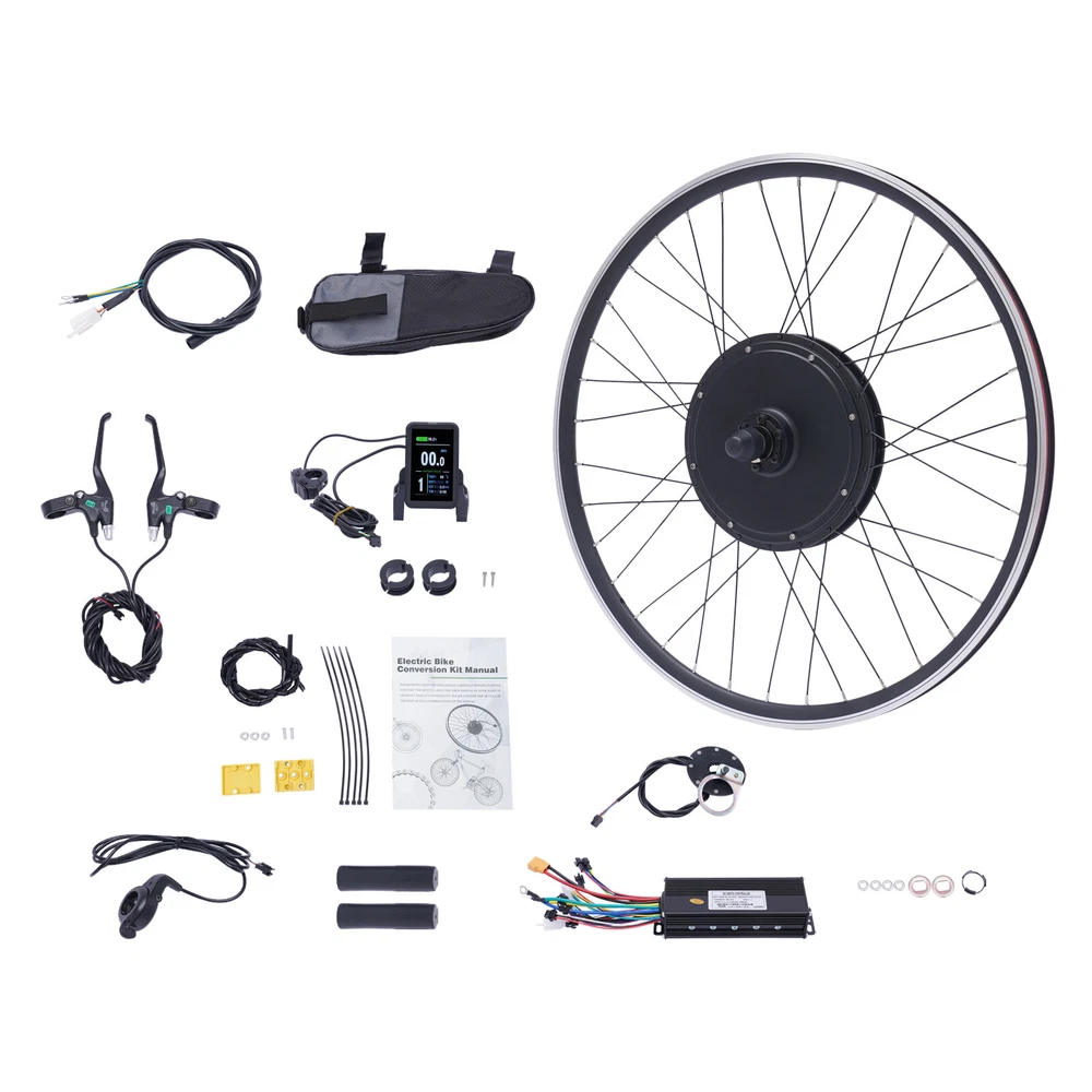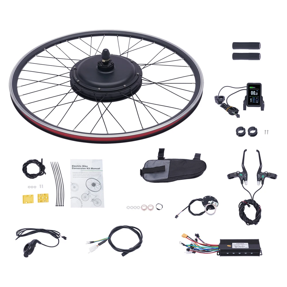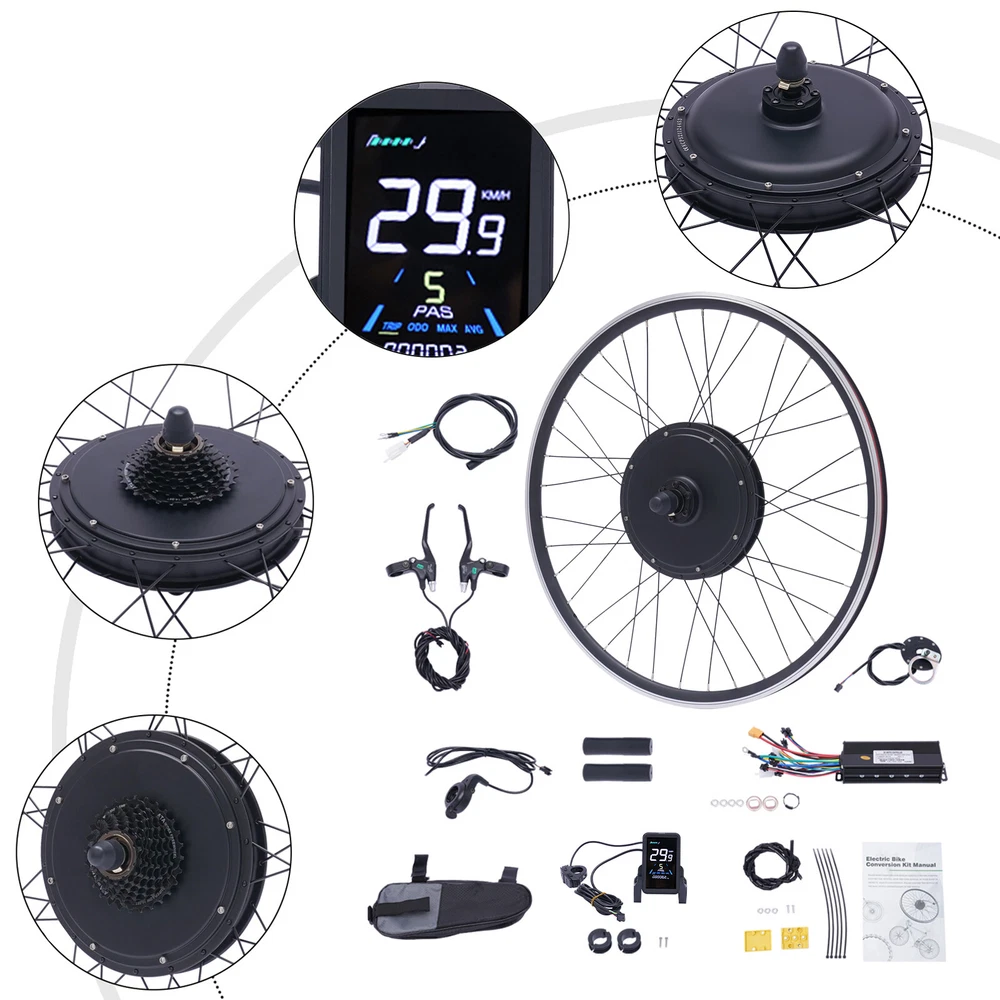 ❤❤❤Welcome to the store.If you have any question , please contact us , and we will reply you as soon as possible. 48V eBike Conversion Kit 28/29 Inch Front Wheel & 1000W Hub Motor Electric Bike Description Do you want to convert your favorite bicycle into an electric bicycle to enjoy its power and comfort? Then you can't miss our electric bicycle motor conversion kit. The display and pedal sensor will allow you to quickly switch between throttle control, cruise control and pedal assist sensor (PAS) to enjoy feeling the headwind on the road. It will be ideal for you! Specifications Material: Aluminum Alloy Color: Black Suspension Type: Front/Rear Special Feature: Electric Assembly Requirement: Yes Brake Type: Power-off Brake Lever (Applicable to V Brake, Disc Brake) Motor Type: Brushless Gearless Motor Gear Adjustment: 5 Gears Recommended Battery: 48V 13AH or Higher Capacity Battery(Not Included) Output Voltage: 48V Power: 1000W Minimum Flat Fork Distance: 100mm/3.94in Speed: 45-55km/h Display Size: 6.8*9.6cm/2.67*3.77in Packing Size: 65*65*22cm/25.59*25.59*8.66in Suitable Wheel Diameter: 28-inch, 29-inch, 700C Gross Weight: 11kg/24.25lbs Net Weight: 10kg/22lbs Loading Capacity: 120kg/264lbs Front Wheel Package Included: 1* Motor Wheel 1* Display 2* Brake Levers 1* Controller 1* Thumb Knob Handle 1* Controller Bag 1* Pedal Assist Sensor 1 * Motor Cord 1 * Winding Pipe 1* English Instruction Manual All Accessories for Assembly Key Features Enjoy Riding: It converts your bike into an e-bike for efficiency and convenience, allowing you to fully enjoy the fun of riding on your commute and short journeys. Complete Set: This kit contains the complete range of accessories needed to convert your bike without you having to buy them separately. The matching kit will provide you with more consistent and stable performance. User-friendly Features : According to different road conditions and personal needs, it allows 5-gear speed adjustment. At the same time, when the riding speed is maintained, pressing the button key for 2-3 seconds will enter the cruise function, making the riding process easier! Powerful Motor : With a 1000w brushless gearless motor, it can reach a maximum speed of 45-55KM/H. Compared to brush motors, it allows for smooth, fast acceleration and low noise operation without replacing the brush, thus making maintenance easier. Safe and Reliable : The brake lever can cut off the power supply of the motor in case of emergency braking, so that the bicycle can stop in time to ensure riding safety. Dual Mode Controller : The motor works under Hall effect and non-Hall effect. If the component fails, the controller will switch to non-Hall effect mode and the motor will continue to work. Robust and Durable : The aluminum alloy wheel frame is very durable, stable, rust-proof and wear-resistant, ensuring long service life and strong load-bearing capacity, up to 264lbs. Customer Service: We aim to provide quality products and services. If you have any problems, please feel free to contact us. We will reply and solve the problem for you as soon as possible. Notes While connecting the controller to the wires, please make sure that you connect the right colors to the controller. Otherwise, the controller may be broken. This kit does not include tires, batteries and chargers, which need to be purchased by customers. Please check the product size and practical voltage before purchasing. It is suitable for the front wheel of a two-wheeled bike. It cannot be used for three-wheelers or multi-wheelers. Please note that the motor can use hydraulic disc brake and wire disc brake, but the brake handle provided is wire disc brake. Please allow the slight color difference caused by the shooting light and 1-3cm error due to manual measurement, and make sure you do not mind before you order. Payment Delivery details Terms of sales About us Contact us Payment We accept ebay payment 。 Fees such as import duties, taxes are not included in the item price or shipping costs. These charges are the buyer's responsibility. Delivery details Shipping: 2-9 working days to: USA Terms of sales We maintain high standards of excellence and strive for hundred percent customer satisfaction. Feedback is very important to us. We hope that you contact us immediately before you give neutral or negative feedback, so that we can address your concerns. It is impossible to address issues if we do not know about them! About us Your satis faction is our ultimate goal. We work hard to earn your trust and future business. Our certified technicians have tested each item before shipping. The unit comes with 1 year limited warranty on all manufacturing defects. a) If you receive a defective item, you may return it or ask for a discount. Please contact us within 14 days after you receive the package. b) What you returned must be intact and in its original packaging as re? u. Customer is responsible for shipping costs of the returned item. c) We will cover the cost of shipping back t with the shipping rate indicated in the registration page. We will send you a new unit or refund the full payment you paid. Thank you. Contact us Business Hour Business Hour: Monday To Friday: 8:30 AM to 5:00 PM (Beijing China time) Due to time zones, our reply to your questions may not be immediately. But within above working time, we will reply your email within 24 hours. If it's non-workdays, please kindly be patient and wait till Monday. Please contact us with ebay message. Please feel free to contact us if you have any questions. Monday To Friday: 8:30 AM to 5:00 PM (Beijing China time) Due to time zones, our reply to your questions may not be immediately. But within above working time, we will reply your email within 24 hours. If it's non-workdays, please kindly be patient and wait till Monday. Please contact us with ebay message. Please feel free to contact us if you have any questions. Features2 Made of high quality material, Durable Features1 stabl