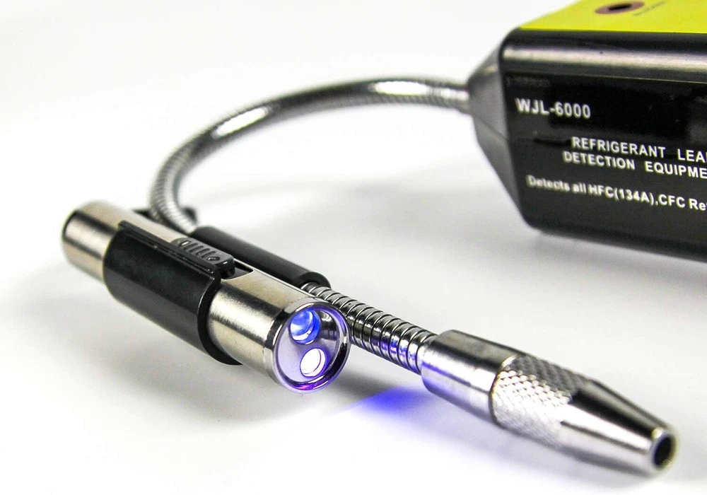 Product Description 4AllTech Upgrade Version for the popular WJL-6000 Halogen Leak Detection Tool, Refrigerant Gas Leakage Tester, HVAC A/C Air Conditioner R22 R410A R134A CFCs HCFCs HFCs Detects High Accuracy. Batteries not Included Description This electronic halogen leak detector is the upgrade version for the popular WJL-6000. Equipped with a 2-Modes Spotlight (Blue and White), allowing you to work under low light circumstances. Kit sell with a Free Pouch for easy-carrying and storage. This is an ideal economic halogen detection device. It is easy to operate, reliable in performance and compact in size. Find out whether or not your equipment is leaking refrigerants or other halogen gases with this Elitech portable leak detector. A dial controller allows you to select the tool's sensitivity or turn the unit off. The sensor is protected by a cap when it is not in use. Conform to RHOS. Conform to SAE_J1627 and EN14624 standards. Buy with Confidence! Ideal For All-purpose tool for any A/C system applied with Halogenated Gas. Car and truck A/C system test Home A/C system repair DIY tasks Specification Ulitimate Sensibility: 6g/yr Response Time: Instant Reset Time: 2~10s Warm-up time: 6-10s Power Supply: 4 x AAA batteries (6V DC) Not Included Batteries Operation Temperature: 32 F ~ 125 F (0 C ~ 52 C) Detection Mode: Continuous, Unlimited Conform to ROHS Conform to SAE_J1627 and EN14624 Standards Inside Package 4AllTech's WJL-6000 Halogen Leak Detector (1) 2-Modes Spotlight (1) Carrying Pouch (1) Color box packaging
