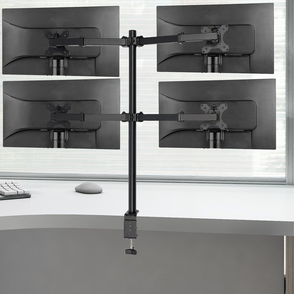 4-arm Heavy Load Screen Bracket 10-27 inch Screen Display Monitor Stand Mount Description Are you still struggling with neck pain caused by long hours of computer-watching at work? Our display bracket can solve your troubles. The combination of high-quality material and exquisite craftsmanship makes it sturdy and durable. Its height and tilt angle can be adjusted, making it comfortable for you to work. It can install 4 displays and allows you to freely choose multiple screen combinations, allowing you to work efficiently. The powerful load-bearing capacity allows you to use it with confidence. Anyway, it's your office assistant! Key Features Sturdy and Durable: Made of cold-rolled steel with an electrostatic spraying process, this product is corrosion-resistant, wear-resistant , and sturdy, ensuring your long-term use. Comfortable User Experience: The height is adjustable from 0 to 15.75 inches, the horizontal and vertical screens can rotate 360°, and the tilt angle can be adjusted up to ± 90°, allowing you to find a comfortable sitting position and relieve neck pain and eye fatigue. Multiple Combination Methods: You can choose multiple screen combination methods (vertical+vertical, horizontal+horizontal, vertical+horizontal, both inside and outside). It can install 4 display s (not included), allowing you to type code, read documents, check data, and work efficiently at the same time. Strong Load-bearing Capacity: The thickened steel pipe and reinforced joint head enable each arm to firmly support 19.84 lbs without shaking, allowing you to use it with confidence. Assembly in a Breeze: The simple structure and complete accessories allow you to easily and quickly assemble this product, which is easy. Easy to Clean: It has a smooth surface and a simple structure, so you only need to wipe the dust with a towel after use. Protective Packaging: The sponge provides comprehensive protection for products to ensure that it is fully delivered to you to the greatest extent possible. Nice Gift: This practical product is a great holiday or housewarming gift for family, friends, and lovers so that they can enjoy more convenient work. Details Small Clamp: It supports the stability of the product and effectively saves desktop space. Smooth Edge: The rounded and smooth edges not only add to the aesthetics of the product but also improve the safety of use. Application It is suitable for fixing displays in offices. It is suitable for 10-27-inch displays with 75x75mm and 100x100mm mounting holes. It is suitable for children, women, men, office workers, students, etc. Specification Style: Modern Color: Black Material: Cold-rolled Steel Process: Electrostatic Spraying Assembly Required: Yes Mounting Tyрe: Tabletop Mount Compatible Devices: Monitor Fit Number of Monitors: Four Adjustable Angle(Up and Down): ±90° Horizontal and Vertical Display Rotation Angle: 360° Each Arm Load-bearing Capacity: 9kg/19.84lbs Adjustable Height: 0-40cm/0-15.75in Applicable Display Size: 25.4-68.58cm/10-27in Applicable Maximum Desktop Thickness: 12cm/4.72in Display Installation Hole Spacing : 7.5*7.5cm/2.95*2.95in, 10*10cm/3.94*3.94in Table Clamp Size(L*H): 5*7cm/1.96*2.76in Middle Pole Size(D*H): 3.5*80cm/1.38*31.5in Package Size: 84*14.7*8cm/33.07*5.79*3.15in Gross Weight: 4.8kg/10.58lbs Net Weight: 4.5kg/9.92lbs Package Included 1* Display Bracket 2* Allen Keys Other Accessories for Installation Notes The product can rotate 360° when unloaded, but due to differences in display size and weight specifications, the rotation angle may vary. About the desk, we recommend wooden desktops. Please do not pull monitors too far forward or backward unless the stand is bolted down, as this will cause stability issues. The product design angle is 90°, but due to factors such as display size and installation environment, the actual adjustable angle is less than 90°. Please note that this product does not include a display. Please note that the applicable standards for flat/curved displays depend on whether there ia standard hole spacing on the back of the displays (75x75mm and 100x100mm mounting holes). Please allow the slight color difference caused by the shooting light and 1-3cm error due to manual measurement, and make sure you do not mind before you order. Payment Delivery details Terms of sales About us Contact us Payment We accept ebay payment 。 Fees such as import duties, taxes are not included in the item price or shipping costs. These charges are the buyer's responsibility. Delivery details Shipping: 2-9 working days to: USA Terms of sales We maintain high standards of excellence and strive for hundred percent customer satisfaction. Feedback is very important to us. We hope that you contact us immediately before you give neutral or negative feedback, so that we can address your concerns. It is impossible to address issues if we do not know about them! About us Your satis faction is our ultimate goal. We work hard to earn your trust and future business. Our certified technicians have tested each item before shipping. The unit comes with 1 year limited warranty on all manufacturing defects. a) If you receive a defective item, you may return it or ask for a discount. Please contact us within 14 days after you receive the package. b) What you returned must be intact and in its original packaging as re? u. Customer is responsible for shipping costs of the returned item. c) We will cover the cost of shipping back t with the shipping rate indicated in the registration page. We will send you a new unit or refund the full payment you paid. Thank you. Contact us Business Hour Business Hour: Monday To Friday: 8:30 AM to 5:00 PM (Beijing China time) Due to time zones, our reply to your questions may not be immediately. But within above working time, we will reply your email within 24 hours. If it's non-workdays, please kindly be patient and wait till Monday. Please contact us with ebay message. Please feel free to contact us if you