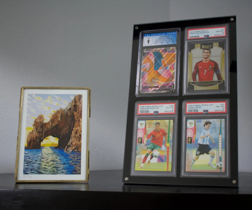 π Showcase Your Collection: This display is perfect for collectors who want to show off their graded cards in style. The sleek and modern design is sure to impress, while the clear front panel allows you to fully appreciate the beauty of your cards. π Easy to Use: You wonβt believe how incredibly user-friendly it is. The clear front panel detaches easily with magnets, so you can quickly add or remove cards as needed. π Maximum Protection: The case is specifically designed to hold PSA and CGC graded cards, ensuring a snug and secure fit. Plus, the black acrylic material provides a sturdy and durable barrier against scratches, scuffs, UV rays and other types of damage. β Satisfaction Guaranteed: We know cards vary in size and offer free returns so your satifcation is guaranteed! This particular product is deisgned to perfectly house PSA or CGC graded cards measuring 5.3125 x 3.15625 x 0.25 inches. π The Perfect Gift - This is a great gift for any trading card enthusiast or collector. It's a thoughtful and practical gift that they're sure to appreciate, especially if they're looking for a way to display their prized collection.
