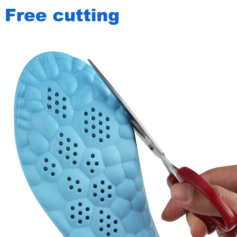 Features: [Breathable And Sweat-Absorbent] Memory foam insoles unique honeycomb perforated design ensures air circulation and keeps breathable. This designe can effectively avoid foot odors. Moisture-absorbing and quick-drying fabric with ventilation holes let your feet feel cool and dry all day long [Cloudstride 4D Sports Shoes Insoles] Our 4d cloud insoles are specifically designed to support and improve the rolling motion of the foot, working by balancing the load on the feet. The use of ergonomic materials and design allows for improved cushioning and support for the foot [Shock Absorption And Non-Slip] 4D cloud sports insole features special inserts that enhance the cushioning and support of specific areas of the foot, such as the heel or ball of the foot. Cloudstride 4D Insoles also has an arch support that helps maintain the natural shape of the foot [Massage Insoles] The 4D U-shape insoles is equipped with 9 massage points, you can easily enjoy a comfortable massage. Helps increase blood circulation in the feet and relieve the pain and discomfort caused by long-term walking, Improve walking comfort [Widely Applicable] 4D Sports Memory Foam Insoles for men suitable for people who work standing up all day, office workers, athletes, seniors, or anyone who experiences some kind of foot pain. 4D constant u-shape insoles can be worn on any type of shoes, boots or slippers [Free cutting] This insole can be cut freely according to your needs. Package Included: 1 pair of 4D breathable insoles