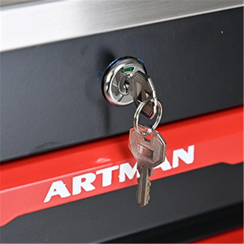 Brand: ARTMAN Finish: Powder Coating MPN: Does not apply Features: Lockable, Wheels Item Width: 13.58 in Item Height: 30.71 in Type: Tool Chest Item Length: 22.28 in Number of Drawers: 4 Material: Metal Country/Region of Manufacture: China Color: Black+Red Item Weight: 49.6 lb
