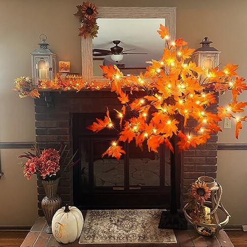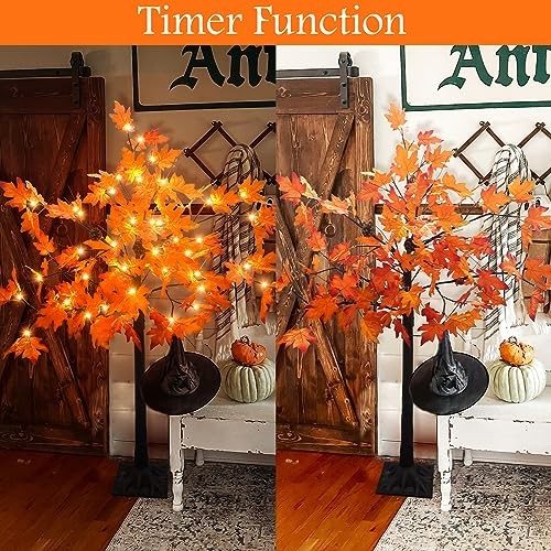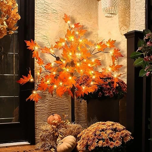 $ 28.082 Pack 20 Inch Prelit Fall Maple Tree with Timer for Thanksgiving Decor