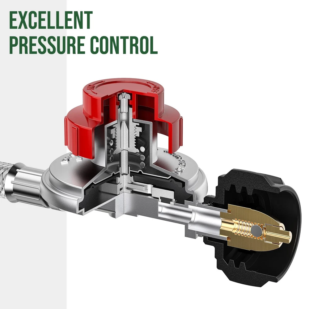 【Unsurpassed Gas Regulation & Stability of Gas Flow】 As ’s propane hose is equipped with an adjustable high-pressure propane regulator ranging from 0-20PSI, you can easily manage the flame depth and the heat degree of your grills, turkey fryers, fish fryers, burners, outdoor cookers & stoves, smokers, heaters, fire pits and propane forges. 【Built to Enjoy Durability & Longevity】 Featuring 4-layer hose construction, propane hose with high-pressure regulator is constructed from superb flame-retardant PVC and stainless-steel braid, which strengthens the propane hose’s sturdiness and its resistance to weather, tear and wear. 【100% Solid Brass Connections & Leak Proofness】 propane hose with regulator is at 4ft long and has a secure fitting with QCC1/Type1 propane tank connections. The other end of the hose is sealed with 3/8” flare fitting with an outside diameter of ⅝ inches, which fits for most propane appliances. Both ends of the propane regulator hose are accurately manufactured from high-quality brass to against corrosion and to provide an air-tight connection, ensuring 100% SAFETY! 【quality & CSA Certification】 Certified by CSA, the high pressure propane regulator with hose has a built-in protection device to automatically shut off to protect its users. What’s more, the propane hose is also known by its non-clogging inner tube to double the smooth delivery of gas flow from propane tanks to your fryers or griddles. 【1-Year 】hose regulator for propane tank are under 1-Year . As we value every customer’s voice and experience with our products and service, we provide 24hrs/7days non-stop customer support to you. Pls feel free to us whenever you are concerned about the product or after-sales service.
