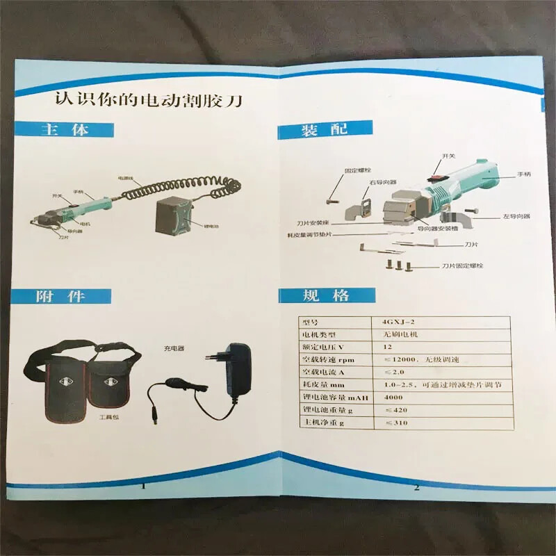 Rubber Tree Electric Rubber Cutting Knife Cutting Rubber Specialized Knife Artifact Blade Connection Cable Rechargeable Battery Portable 4gxj2 Type Specification Model:4GXJ-2 Motor Type:Brushless motor Rated voltage V:12 No-load speed rpm:≤11200+10%, stepless variable speed, adjustable No-load current A:≤2.0 Skin consumption mm:0-25, continuously adjustable by moving the guide up and down. Lithium battery capacity mAh:4000 or 6000 Li-ion battery weight g:≤420(4000mAh) Net weight of main machine g:≤370 Blade hardness HRC:≥50