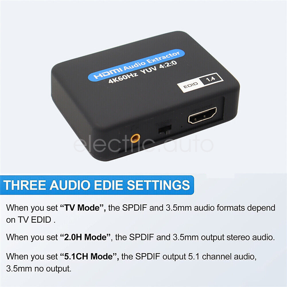 Store Categories Store Categories Consumer Electronics Headphone Watch Mobile Phone PC & Tablet Sound & Vision Others Auto Motor LED Light Flashlight / Torch Security Camera Other 4K * 2K HDMI Stereo Audio Extractor Converter HDMI to HDMI + Optical SPDIF 3.5mm Product View Detail Features HDMI audio extractor: One HDMI input to one HDMI+optical Toslink SPDIF and 3.5mm stereo audio output to achieve synchronization of audio signal separation. (Note: Optical Toslink SPDIF and 3.5mm audio support output to audio channel, amplifier, headset and other audio receivers respectively, without connecting TV/monitor) 4K@60HZ : HDMI audio extractor splitter support 4Kx2K@60Hz /3D/1080 pages/1080/720 pages. HDCP1.4,YUV:4:2:0。 Support video color format: 24bit/deep color 30bit. Audio format: DTS-HD/dolly trueHD/LPCM7.1/DTS/dolly-AC3/DSD (dobly Digital Plus is not always supported). The maximum bandwidth is 10.8Gbps. With AWG26 HDMI standard cable, the maximum input and output can reach 32.8 feet respectively. Three audio editing settings: HDMI audio converter has three audio modes TV, 2.0CH and 5.1CH. 3.5MM audio output supports 2.0CH PCM LPCM stereo audio; The optical SPDIF output supports the incoming 2.0CH PCM, 5.1CH. (Note: Our audio extractor cannot decode these audio formats. If your amplifier or speaker does not support these audio formats, there will be no audio on the speaker or amplifier, so please set the audio format on the HDMI source to PCM/LPCM audio format.) Wide compatibility: The 4K HDMI audio extractor Embedded is applicable to various HDMI source devices, such as Blu ray/DVD/HD player, Amazon Fire TV, Apple TV, PS5, Xbox, PC/laptop, HD camera, HD DVR, etc. Because each device supports different and limited voltages, it is recommended to use power adapters for some devices with low power HDMI ports (such as PS4, PS4 Slim, and other Sony devices). Specifications HDCP version: HDCP1 HDMI version: 4HDMI1 4B HDMI resolution: 2160P/30HZ/1080/50/60HZ/1080/720P/480P Support video color format: 24bits/dark color 30bit/36bit Audio output: SPDF+3.5MM audio Maximum bandwidth: 340MHZ Maximum transfer rate: 10.2Gbps Input/output TMDS signal: 0.5-1.5V p-p (TTL) Input/output DDC signal: 5V p-p (TTL) Input cable distance:<=7m AWG26 standard cable HDMI compatible Output cable distance:<=8m AWG26 standard cable HDMI compatible Maximum working current: 500mA Working voltage: DC+5V Product size: 58 * 53 * 21.9 Product material: ABS Product weight: 60g Package Included 1x HDMI audio extractor 1x User Manual 1x USB data cable Shipping Policy Payment Method Returns Policy Shipping Policy Payment Method Returns Policy Copyright © 2017 DataCaciques 4K * 2K HDMI Stereo Audio Extractor Converter HDMI to HDMI + Optical SPDIF 3.5mm Home Payment Shipping About us Contact us Store Categories Store Categories Consumer Electronics Headphone Watch Mobile Phone PC & Tablet Sound & Vision Others Auto Motor LED Light Flashlight / Torch Security Camera Other Product View Detail Features HDMI audio extractor: One HDMI input to one HDMI+optical Toslink SPDIF and 3.5mm stereo audio output to achieve synchronization of audio signal separation. (Note: Optical Toslink SPDIF and 3.5mm audio support output to audio channel, amplifier, headset and other audio receivers respectively, without connecting TV/monitor) 4K@60HZ : HDMI audio extractor splitter support 4Kx2K@60Hz /3D/1080 pages/1080/720 pages. HDCP1.4,YUV:4:2:0。 Support video color format: 24bit/deep color 30bit. Audio format: DTS-HD/dolly trueHD/LPCM7.1/DTS/dolly-AC3/DSD (dobly Digital Plus is not always supported). The maximum bandwidth is 10.8Gbps. With AWG26 HDMI standard cable, the maximum input and output can reach 32.8 feet respectively. Three audio editing settings: HDMI audio converter has three audio modes TV, 2.0CH and 5.1CH. 3.5MM audio output supports 2.0CH PCM LPCM stereo audio; The optical SPDIF output supports the incoming 2.0CH PCM, 5.1CH. (Note: Our audio extractor cannot decode these audio formats. If your amplifier or speaker does not support these audio formats, there will be no audio on the speaker or amplifier, so please set the audio format on the HDMI source to PCM/LPCM audio format.) Wide compatibility: The 4K HDMI audio extractor Embedded is applicable to various HDMI source devices, such as Blu ray/DVD/HD player, Amazon Fire TV, Apple TV, PS5, Xbox, PC/laptop, HD camera, HD DVR, etc. Because each device supports different and limited voltages, it is recommended to use power adapters for some devices with low power HDMI ports (such as PS4, PS4 Slim, and other Sony devices). Specifications HDCP version: HDCP1 HDMI version: 4HDMI1 4B HDMI resolution: 2160P/30HZ/1080/50/60HZ/1080/720P/480P Support video color format: 24bits/dark color 30bit/36bit Audio output: SPDF+3.5MM audio Maximum bandwidth: 340MHZ Maximum transfer rate: 10.2Gbps Input/output TMDS signal: 0.5-1.5V p-p (TTL) Input/output DDC signal: 5V p-p (TTL) Input cable distance:<=7m AWG26 standard cable HDMI compatible Output cable distance:<=8m AWG26 standard cable HDMI compatible Maximum working current: 500mA Working voltage: DC+5V Product size: 58 * 53 * 21.9 Product material: ABS Product weight: 60g Package Included 1x HDMI audio extractor 1x User Manual 1x USB data cable Shipping Policy Payment Method Returns Policy Shipping Policy Payment Method Returns Policy Home Payment Shipping About us Contact us