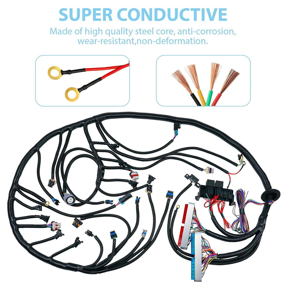 4L60E Engine Wiring Harness LS Swap Standalone Wire Compatible with 1997-2006 GM DBC LS1 4.8L 5.3L 6.0L Vortec Engines W/4L60E Transmission Drive by Cable Item Description About this item Compatible Models:Compatible with 1997-2006 DBC LS1 4.8L 5.3L 6.0L Vortec Engines.Compatible with Chevy GMC Cadillac Hummer Trucks. [Complete Wiring Harness Kit] :This 4L60E Engine Wiring Harness kit all come with the necessary connectors for the dashboard, which include Speedometer, Tachometer, Park Neutral, Malfunction Indicator, DLC ports, etc. [Stable conductivity]:Our 4L60E standalone wiring harness adopts high-quality copper core wire with good conductivity and stability, and is equipped with high-quality washers (which can be slid in and out for installation as needed). [Plug and Play]: Adopting a plug and play design, connecting different colored plugs for easy installation. And accompanied by an instruction manual to guide installation. [Package Include]:1 x 4L60E engine wiring harness standalone, 8 x adapters, 1 x instruction manual, 2 x mounting screws, 2 x fixing washers. › See more product details Payment We accept payment only through PAYPAL Shipping We ship products worldwide through standard express courier service, it will reach within 7 to 10 days to abroad buyers, we ship the product after recieved clear payment and give full information about shipment to the buyer Return We accept product return within 7 to 21 days from delivery date but product should be in original position and not in damaged condition,the return shipping charges will be buyer responsibility