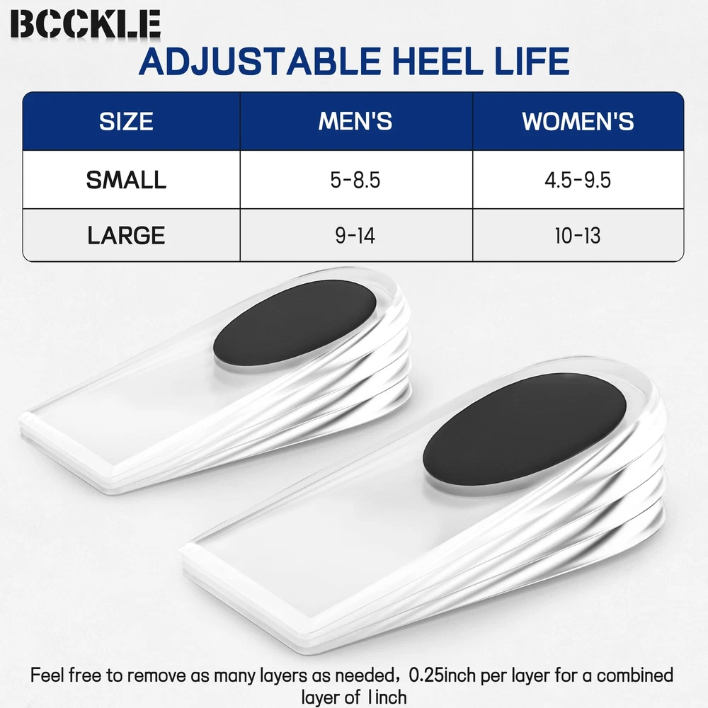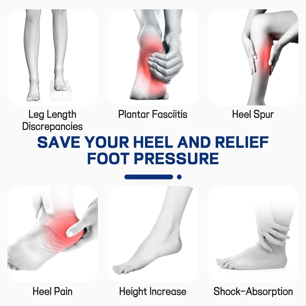 UPGRADED DESIGNED : The high-density PORON foam and TPE Gel can provide maximum cushioning & shock absorption,provides added heel protection,3X heel pressure relief than older product. Everyone knows the trick of applying a heel lift layer for feet pain repair. But upgrading your method with Poron heel lift insert to another level of relief. HEEL PAIN RELIEF- After repeating test and research,shaped ergonomically for a comfortable fit even for those with sensitive feet. To fit for most US feet.The heel lift inserts are great for leg length discrepancies,heel spurs,heel pain, sports injuries, achilles tendonitis and other clinical conditions.Excellent padding provides comfortable support when shopping,walking,standing all day. Soft material repliates heel shape with a snug fit. THE EASIEST CORRECT LEG LENGTH DISCREPANCIES:The unique process provides ultra soft cushioning for all-day comfort and a strong foundation to maintain stability and Fixed position. Maintain the best condition throughout the day. These incredible heel lifts allow you to correct leg length discrepancies in just a blink.The best part is,such that no one ever knows the secret inside your shoe. 4 LAYER ADJUSTABLE DESIGN - ONLY design by . Smooth, well-crafted edges help to avoid rubbing your foot. 4 removable 1/4" thick layers for optimum Heel lift customization.Adjustable layers allow you to build up the height by adding layers yourself. These layers can be used individually or as a combination.Each lift for help relief the pains of your feet. It won't be noticed when put in shoes. Lightweight and shaped ergonomically for a comfortable fit even for those with sensitive feet. Your results are our top priority. It's part of who we are as Profession shoe insole Experts. We ensure all our products are designed to the highest standard, we base our ethos on customer need. Help you Get Back to the Original You.