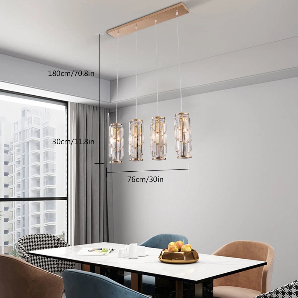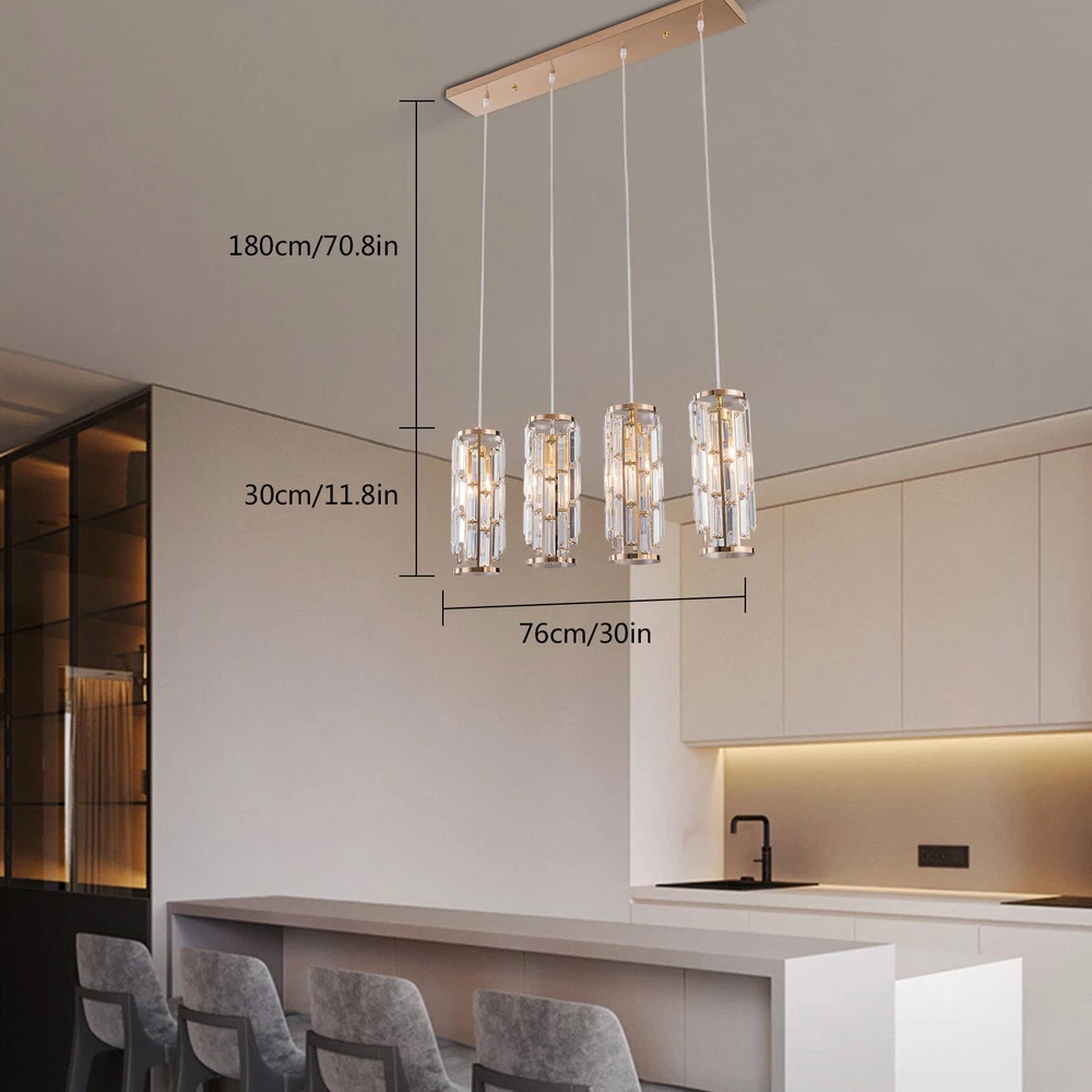 4-Light Luxury K9 Crystal Chandelier Lighting Ceiling Light Pendant Lamp Fixture About this item: Modern Crystal Pendant Lighting: High-quality K9 crystals trimmed a beautiful lampshade, and matches with nickel finished metal canopy and frame; A modern and gorgeous fixture diffuses stunning lighting wherever it mounts. Perfectly Fit: The crystal lampshade refracted when light passed through the prism crystal-formed lampshade and create a fantastic lighting effect, match with the adjustable cord, so you can customize the pendant lighting’s height to fit any ceiling height. Length of each suspension wire: 70.8" the farmhouse pendant light fixture can be adjusted from 70.8"to 5.9" easily. Application: This contemporary crystal pendant lighting is also a decorative choice for various spaces, suitable for both home and commercial place, such as kitchen island, living room, bedroom, dining room, foyer, meeting room, etc. 4xE26 Bulbs It works well with any E26 bulb base, Maximum power: 40W (each bulb,Bulbs NOT Included), LED or CFL or incandescentEdison bulbs, (Bulbs NOT Includedeach bulb is recommended). It’s dimmable when using with a dimmable bulb and compatible dimmer switch. Easy Installation: The crystal strings require some to to hang to the metal frame to formed a gorgeous crystal lampshade, but it’s easy and definitely worth every effort when it’s done, and the package includes detailed instruction and all necessary hardwired accessories. Specifications: Material:Metal and Crystal Color:Clear Input:AC 110 -120V Tips: -Please make sure the light is securely supported and is disconnected from power when installing. -Installing the light bulbs before hanging the makes the installation easier. [Easy to install] Open the package and check the appearance of the chandelier. Follow the instructions to group the lights together and test their effects before installing them on the ceiling. In the process of assembling the lamp, please pay attention to check the position of each wire interface and tighten the fixing screws Payment Delivery details Terms of sales About us Contact us Payment We accept ebay payment 。 Fees such as import duties, taxes are not included in the item price or shipping costs. These charges are the buyer's responsibility. Delivery details Shipping: 2-9 working days to: USA Terms of sales We maintain high standards of excellence and strive for hundred percent customer satisfaction. Feedback is very important to us. We hope that you contact us immediately before you give neutral or negative feedback, so that we can address your concerns. It is impossible to address issues if we do not know about them! About us Your satis faction is our ultimate goal. We work hard to earn your trust and future business. Our certified technicians have tested each item before shipping. The unit comes with 1 year limited warranty on all manufacturing defects. a) If you receive a defective item, you may return it or ask for a discount. Please contact us within 14 days after you receive the package. b) What you returned must be intact and in its original packaging as re? u. Customer is responsible for shipping costs of the returned item. c) We will cover the cost of shipping back t with the shipping rate indicated in the registration page. We will send you a new unit or refund the full payment you paid. Thank you. Contact us Business Hour Business Hour: Monday To Friday: 8:30 AM to 5:00 PM (Beijing China time) Due to time zones, our reply to your questions may not be immediately. But within above working time, we will reply your email within 24 hours. If it's non-workdays, please kindly be patient and wait till Monday. Please contact us with ebay message. Please feel free to contact us if you have any questions. Monday To Friday: 8:30 AM to 5:00 PM (Beijing China time) Due to time zones, our reply to your questions may not be immediately. But within above working time, we will reply your email within 24 hours. If it's non-workdays, please kindly be patient and wait till Monday. Please contact us with ebay message. Please feel free to contact us if you have any questions. On Nov 11, 2024 at 22:03:05 PST, seller added the following information: