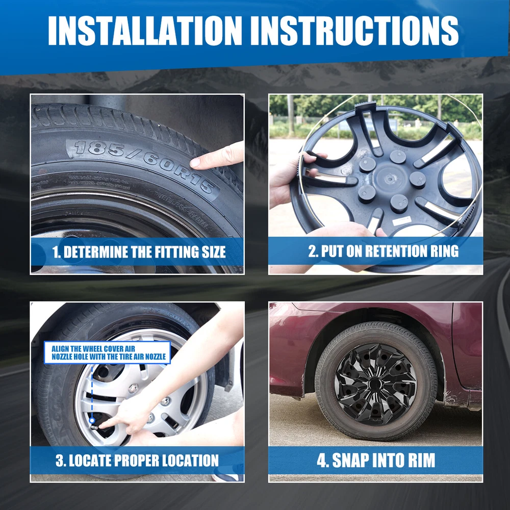 4PCS 17" Wheel Covers Full Rim Hub Caps for R17 Tire & Steel Wheels Universal Feature: π Please ensure to check your tire/wheel size before purchase! designed for (p17) 17" stock steel wheels and will not fit over aluminum alloy wheels. π Designed from oem replica style wheelsβ for replacement with fast & easy snap-on installation - made from premium abs material β lab & road tested for performance and ultimate durability. π Adjustable retention rings assures firm grip gives support to the hubcaps making sure they stay in place. locate the curve on the retention ring and match to the tire air valve to install. π Installation instructions available - please refer to the images available as well as detailed instructions below for assistance. π Wolfx wheel covers fit most models of vehicle brands including acura, chevrolet, dodge, ford, honda, hyundai, kia, mazda, mitsubishi, nissan, subaru, toyota, volkswagen and more. Not fit forοΌ Chevy Equinox All Models, TOYOTA SIENNA 17 inch models, VOLKSWAGEN GILF 17inch models 2010-2011 Fusion 2013-2018 Toyota RAV4 2010-2011 Mercury Milan 2008-2012 Chevy Malibu 2007-2010 Pontiac G6 2007-2010 Saturn Aura 2007-2010 Saturn Aura Hybrid Not fit for Chevy Equinox All Models, TOYOTA SIENNA 17 inch models, VOLKSWAGEN GOLF 17 inch models Not fit for: 2010-2011 Fusion Steel Wheel 2013-2018 Toyota RAV4 Steel Wheel 2010-2011 Mercury Milan Steel Wheel 2008-2012 Chevy Malibu Steel Wheel 2007-2010 Pontiac G6 Steel Wheel 2007-2010 Saturn Aura Steel Wheel 2007-2010 Saturn Aura Hybrid Steel Wheel 2013-2020 DODGE JOURNEY Steel Wheel 2015-2020 DODGE GRAND CARAVAN Steel Wheel 2011-2016 CHRYSLER TOWN & COUNTRY Steel Wheel 2009-2017 CHEVROLET TRAVERSE Steel Wheel Specification: Quantity: 4 PCS Material: ABS Color: Black & White Lacquer Wheel Size: 17 inch Finish: Glossy Placement on VehicleοΌFront/Left/Rear/Right Package Includes: 4* Wheel Cover Hubcaps Payment Delivery details Terms of sales About us Contact us Payment π We accept PayPal (Recommended), credit card, VISA, Google Pay & Discover etc. π Please submit your payment within 7 days after your purchase. π If not, eBay will automatically open an Unpaid Item Dispute on our behalf if the item(s) are not paid within 7 days. Delivery details π Please double check your delivery address and contact information. π All items will be shipped within 1 business days after payment received. π Tracking numbers will be easily accessible ASAP they are created and processed. Terms of sales π Free 30 days Return, we will cover the return post fee. π If a defective product was received, please do not hesitate to message us via eBay message. π We will response in 24 hours in business to resolve the problem π We stand behind our products. Items can be returned for exchange or full refund within 30 days from the date you receive. About us π Wolfstorm has a huge warehouse and office located in the United States. π All US domestic 48 states customers are able to benefit from the FREE SHIPPING services. π Our experienced, professional customer service representatives offers prompt and courteous service. π Best quality products, outstanding services and professional experience keep our customers. Contact us π Please feel free to contact us if you have any problems. π Emails will be replied within 24 hours in working days. π After hours emails will be replied on the next business day. On Mar 6, 2025 at 19:50:43 PST, seller added the following information: