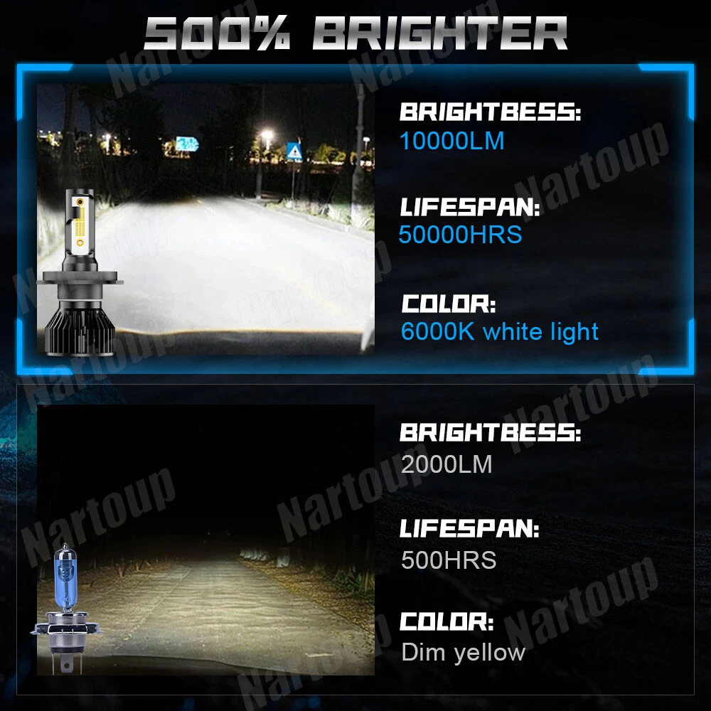 Nartoup 4"x6" Crystal Clear Glass Lens / Metal Backside H4 THESE ARE SEMI-SEALED BEAM DIAMOND CRYSTAL CLEAR GLASS FACED H4 HEADLIGHTS! Includes 100W Super White H4 LED Light Bulbs! Note: Without mounting bracket, some models may need mounting bracket! 4X6 INCH SQUARE HEADLIGHT - PAIR DIAMOND CRYSTAL CLEAR GLASS LENS / METAL BACKSIDE FITS STOCK BUCKETS,( Some models may require minor modifications ) LOW BEAM AND HIGH BEAM BRIGHTER AND WHITER THAN STOCK LIGHTS BULBS ARE REMOVABLE AND REPLACEABLE Includes 100W Super White PAIR H4 LED Light Bulbs! PLUGS INTO FACTORY WIRING PLUGS DOT / SAE APPROVED THIS LISTING IS FOR A NEW PAIR (four HEADLIGHTS) - 4x6" CRYSTAL CLEAR GLASS LENS / METAL BACKSIDE H4 CONVERSION HEADLIGHTS WITH 100W LED LIGHT BULBS. THIS SET INCLUDES 4 LOW / HIGH BEAM HEADLIGHTS. THESE HAVE THE ORIGINAL SHAPED PRONGS ON THE BACK SO THEY WILL PLUG RIGHT INTO YOUR ORIGINAL WIRING HARNESS PLUGS. THESE LIGHT UP 300% BRIGHTER THEN THE STOCK STYLE INCANDESCENT BULBS. IN RARE CIRCUMSTANCES, WIRING MODIFICATION MAY BE REQUIRED. THESE ARE FOR ANY CAR OR TRUCK THAT HAS SQUARE 4x6" HEADLIGHTS. DOT / SAE APPROVED. THESE ARE GLASS AND WE WILL TAKE EXTRA CARE IN PACKAGING. Product Specification: Bulb Size:H4 9003 HB2 Number of Bulbs:4 Material:Metal Type:Headlight Kit To Fit:Headlight Bulb Color:White Bulb Type:LED LED Type :CSP CHIP Color Temperature: 6000k-6500k Light Color:White Wattage:100W/bulb Lumens:10000LM/bulb Lifetime:50,000hrs Waterproof Rating:IP68 Waterproof Operation Voltage:DC 9-32V ( Fit 12V,24V Vehicle ) Beam Angle:360 Degrees Beam Operating Temperature: -40 - +80℃ Placement on Vehicle: Front, Left, Right Products include: 4pcs 4X6" lamp shade 4pcs H4/9003 CSP chip LED 4pcs H4 9003 to H13 9008 Connectors Cable Adapters Harness After service Notification: If you are satisfied with our product and service please leave us a positive feedback,if there is any problem when you received the package,please feel free to contact us,we will be definitely give you a satisfying solution,when you choose the return reason .please choose the reason"i don't like it". by this option we will accept your return immediately and provide return label for full refund. the others reason to return will take both of us many troubles to handle. If you have any questions, please feel free to contact us, we are happy to answer them for you. Hope you will have a good shopping experience~