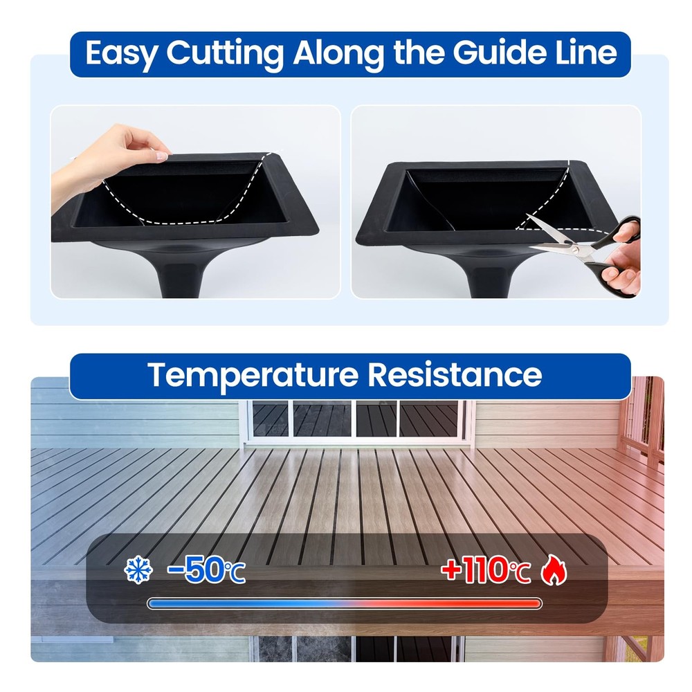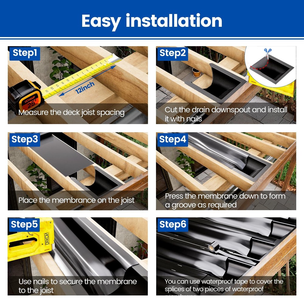 4Pack Rain Escape Deck Drainage system Downspout Black M078 Effective protection: This downspout suits deck systems with 12 "or 16" joist spacing. Water from the deck is diverted by an under-deck drainage system, preventing the deck timbers from being affected by moisture High-quality material: Our downspout is made of PE with strong weather resistance. It can withstand severe weather and is used in environments ranging from -50 ℃ ~ 110 ℃. The completely waterproof material feature keeps the deck dry even in heavy rain Easy installation: Gutter Downspout is designed to be easy to cut to the great length for your deck, measure, cut, and install for seamless drainage solutions. The cutting port is designed with cutlines, and a knife is used to make easy cuts along the cutlines. Also, tear the cutlines directly by using your hands Under deck drainage system: Complete underdeck drainage requires Deck Membrane M059 and Deck Downspout M078, allowing you to add a ceiling system/deck roof without worrying about waterproofing, doubling the number of outdoor living spaces you have Complete deck accessories: provides different deck accessories with different functions, helping you save time and effort on deck projects. Pls search: Adjustable Deck Support M031 M065, Deck Starter Clips M028 and Hidden Fasteners M029, Water Drain Membrane M059 and Gutter Downspout M078