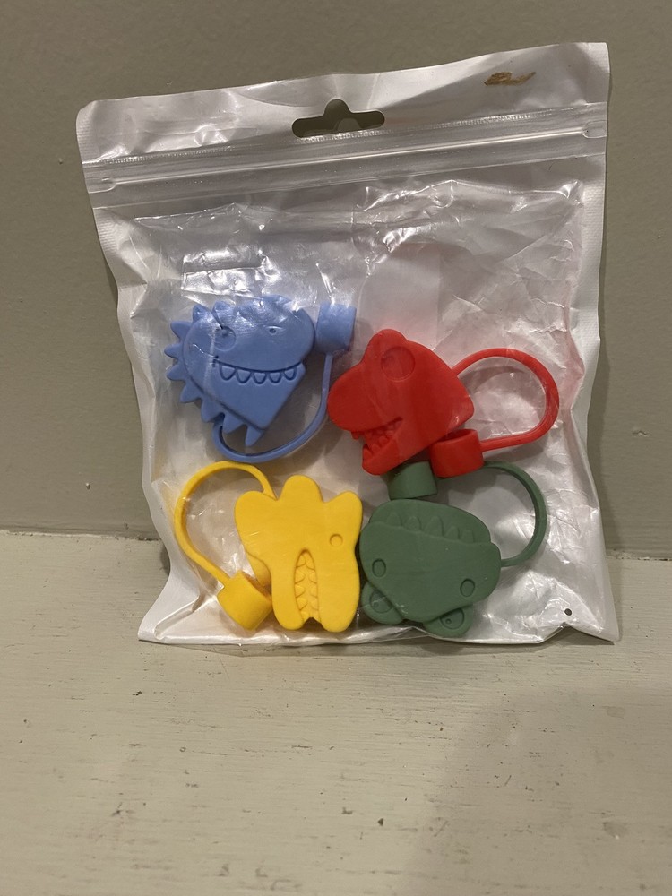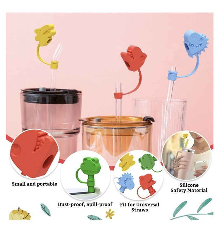 The 4PCS Straw Cover Cap for Stanley Cup is made of multicolor silicone and comes in the shape of dinosaurs. These straw toppers are designed specifically for Stanley cups, providing a fun and practical way to cover and protect your straws while also adding a touch of whimsy to your drinkware.