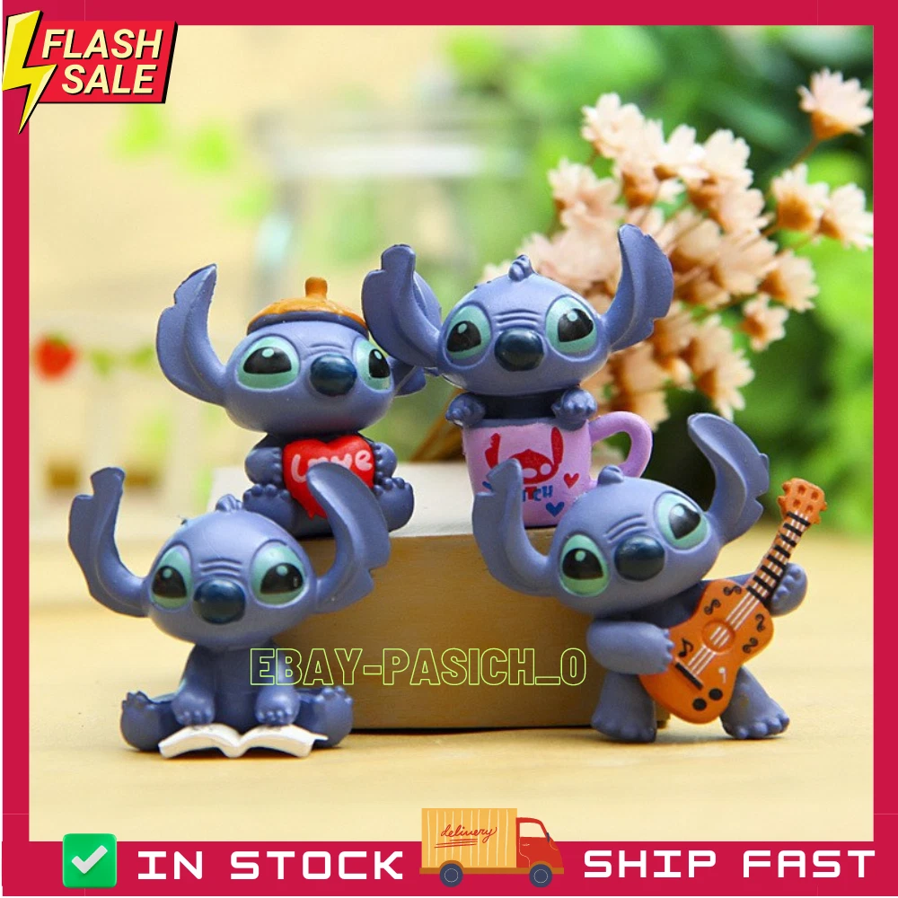 4PCS/Set Cute Lilo & Stitch Cake Topper Figure Set PVC Toys for Fans and Kids