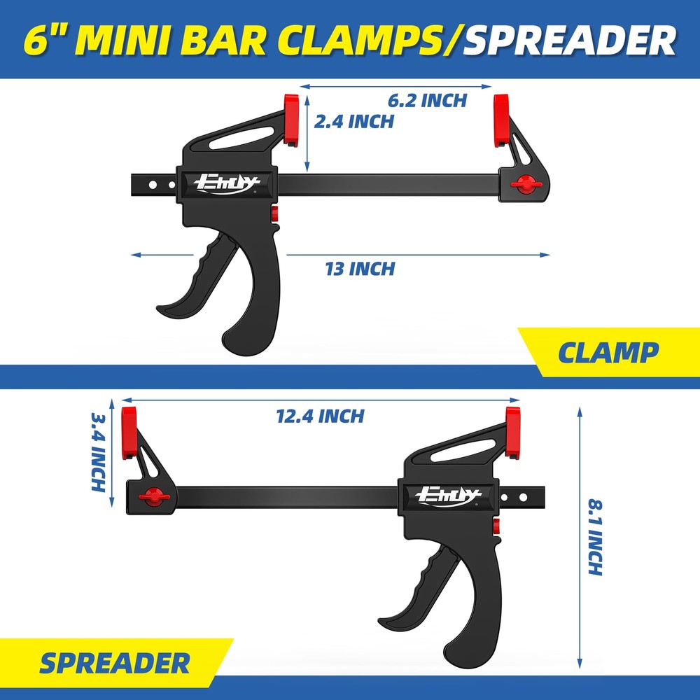 6-Pack Wood Clamps for Woodworking 12 in 6 in Bar Clamps Quick Clamps
