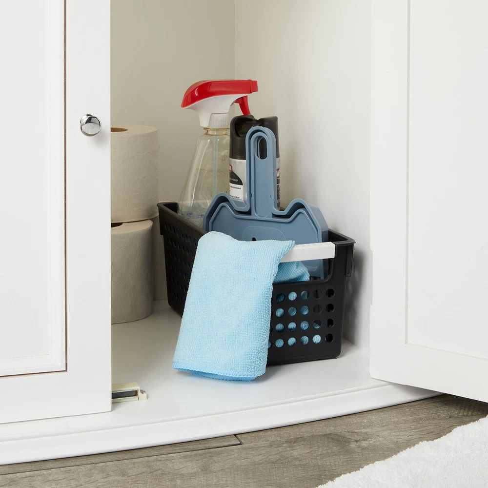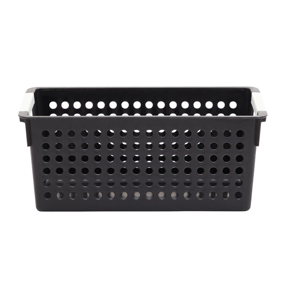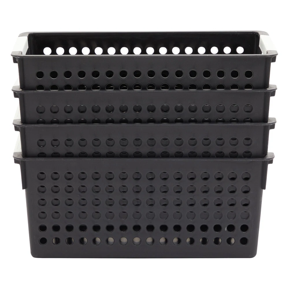 AccStation Transform your home into a haven of order and efficiency with this set of 4 black deep plastic basket, perfect for creating a customized organization system in your bathroom, laundry room, closet, mudroom, or any other space. The deep bathroom storage bin plastic black is designed to meet all your storage needs, making it easy to keep everything from cleaning supplies to toiletries neatly arranged. Each small plastic bin measures 11.5 x 5.25 x 5 inches, offering ample space while maintaining a compact footprint. Whether you're storing linens, makeup, towels, or other household items, these bins provide the perfect solution for decluttering and organizing your home. The sleek black design adds a touch of modern elegance, seamlessly blending with any decor style. Built-in handles on each organizing totes cabinet bathroom ensure that you can quickly and easily access your items, making these containers not only practical but also highly functional. No more rummaging through drawers or cabinets; with these storage baskets, everything you need is right at your fingertips. Ideal for use in the bathroom, these bins can neatly hold toiletries and makeup, keeping your countertop clear and your morning routine smooth. In the laundry room, the organizer for medicine cabinet is perfect for organizing detergents, fabric softeners, and other cleaning supplies, making laundry day a breeze. Use them in your closet to keep accessories, scarves, and other small items sorted and easily accessible. In the mudroom, these bins are great for storing shoes, gloves, and other outdoor essentials, ensuring a tidy and welcoming entryway. With this set of 4 small black laundry basket plastic, the possibilities are endless. Customize your organization system to fit your specific needs and enjoy a clutter-free home where everything has its place. Embrace the convenience and style of these versatile plastic baskets and experience the joy of an organized living space. 4-Pack Black Plastic Baskets for Organizing Bathroom, Laundry Room, Washroom Get Organized in Style: Transform your bathroom, washroom, laundry room, hall closet, or playroom with the sleek matte black plastic basket. Create a custom organization system that maximizes space and keeps everything tidy and easily accessible. Perfectly Sized: The plastic toiletry baskets 4 pack measure 11.5" x 5.25" x 5", ideal for organizing closets, cabinets, and spaces under or above your sink. Their versatile design ensures neat and efficient storage. Multi-Purpose Basket: Keep your home neat with our small medicine cabinet organizer, perfect for storing cosmetics, shampoos, hand towels, lotions, soap, medicine, hair accessories, and cleaning supplies. Ideal for an organized space Made to Last: For easy storage, stack the small plastic basket with handles inside one another when not in use. The handles provide convenient and easy accessibility, making them perfect for organizing your space efficiently What’s in the Pack: Includes four small black laundry basket plastic, perfect for organizing your space. These durable, versatile baskets are ideal for decluttering and keeping your home or office neat and tidy