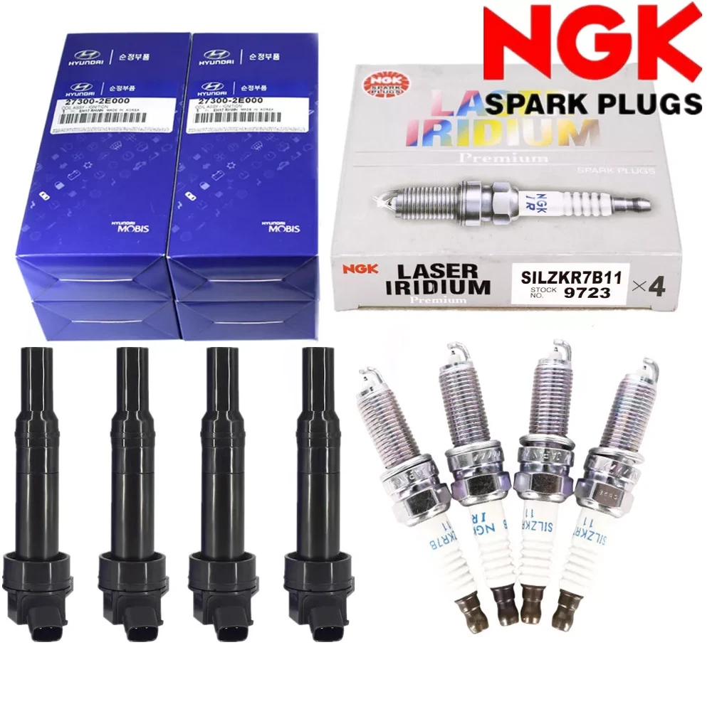 4Pcs NGK SILZKR7B11 Laser Iridium Spark Plugs Fits Hyundai Elantra Santa Fe 9723. Product Description Part Number: 18846-11070 / SILZKR7B11. +27300-2E000 Fits for: 2018 - HYUNDAI ELANTRA GT 2018 - 2010 HYUNDAI SANTA FE 2018 - 2014 HYUNDAI TUCSON 2017 - 2012 HYUNDAI AZERA 2016 - 2012 HYUNDAI ELANTRA 2016 - 2010 HYUNDAI GENESIS COUPE 2018 - 2011 KIA SORENTO 2017 - 2014 KIA FORTE 2017 - 2014 KIA FORTE5 2017 - 2015 KIA RONDO 2017 - 2011 KIA SEDONA 2017 - 2012 KIA SOUL 2016 - 2014 KIA FORTE KOUP 2017 - 2014 KIA CADENZA 2015 - 2012 HONDA CIVIC 2014 - 2010 HONDA INSIGTH 2013 ACURA ILX Package includes: 4 x Spark plugs SILZKR7B11 9723 4 X Ignition Coils 27300-2E000