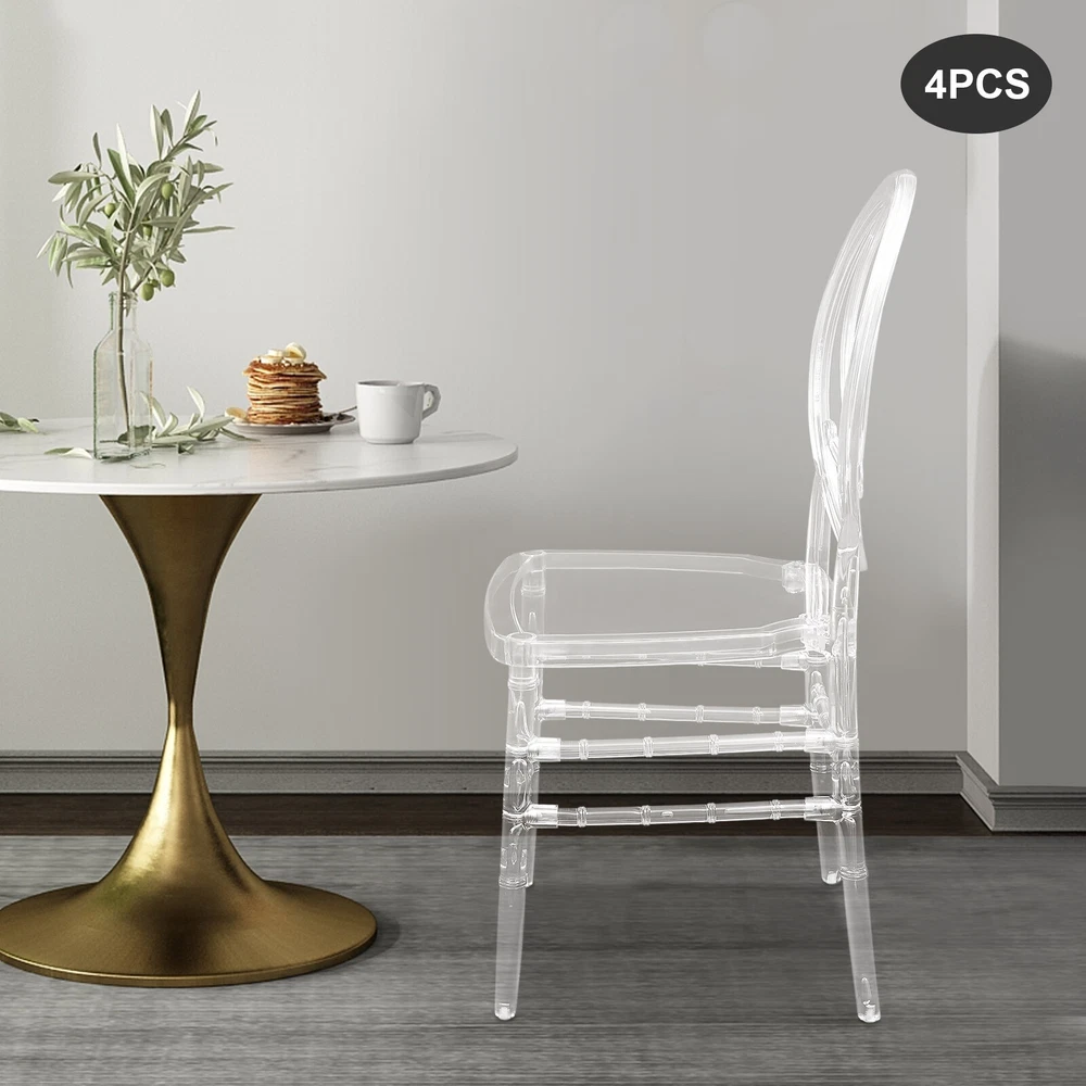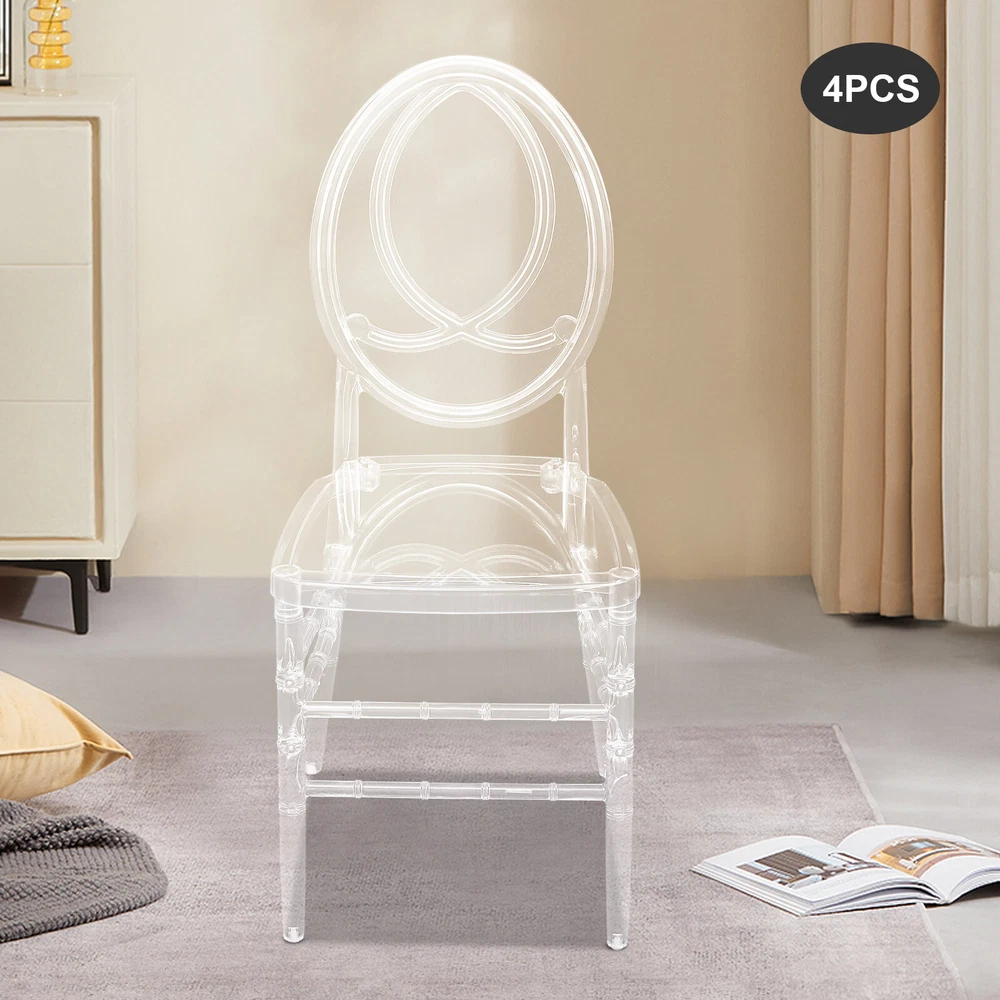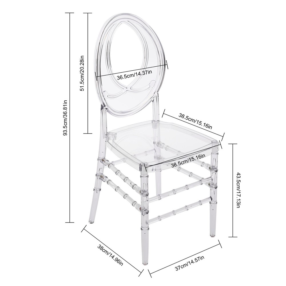 4 Pcs Plastic Folding Chairs Stackable Wedding Party Camping Dining Seats Home Description This crystal clear and translucent chair from us is a seat that blends modern design with artistic beauty. It combines high-quality PC material with exquisite injection molding technology, aiming to create a practical and visually appealing seat that will be a sight to behold, whether it is used in restaurants, banquets, wedding venues, or modern homes. Key Features Made to Last: This product is made of high-quality PC, treated with an injection molding process, which is highly flexible, with fewer bubbles, and has UV, heat acid, and alkali resistance to ensure a long service life. Strong Load-bearing Capacity: Thanks to the high-quality materials and the four-legged construction, the product has a weight capacity of up to 440.92lbs and high stability, so you can sit with confidence! Exquisite Appearance: The high transparency and gloss of the PC material give the chair a unique crystal texture, making it a striking focal point in any interior space, adding a modern and artistic touch. Ergonomic Design: The curved design of the back of the chair follows the principle of ergonomics to ensure that while providing an elegant appearance, it also gives the user a comfortable sitting feeling, suitable for long-time use. Easy to Clean & Maintain: Thanks to its smooth surface, it is not easy to adsorb dust and stains, so you just need to simply wipe it to keep it clean, reducing the difficulty of daily maintenance. High Spatial Adaptability: The clear color means it does not take up too much space visually, especially suitable for small households or environments that need to expand the visual effect, creating an open and bright atmosphere. Easy Assembly: Simple structure and complete accessories help you finish the installation quickly and use it in a short time. Ideal Gift: With good performance and a modern appearance, it can be used as an ideal housewarming gift for parents, friends, and lovers so that they can also enjoy a more exquisite life. Good Customer Service: We aim to provide quality products and services. If you have problems, please feel free to contact us. We will reply and solve the problem for you as soon as possible. Details Large Sitting Area: 15.16*15.16in seat area increases the force area and improves the comfort of the seat. Bamboo Joints Shape: This design improves the aesthetics of the seat and adds to its style. Application This product is suitable for family living rooms, banquet halls, dance halls, wedding halls, etc. Specification Material: PC Color: Clear Process: Injection Molding Style: Modern Assembly Required: Yes Mounting Type: Free Standing Number of Pieces: 4 Product Overall Height: 93.5cm/36.81in Sitting Area: 38.5*38.5cm/15.16*15.16in Backrest Size(W*H): 36.5*51.5cm/14.37*20.28in Leg Height: 43.5cm/17.13in Footprint Size: 38*37cm/14.96*14.57in Package Size: 96*43*29cm/37.8*16.93*11.42in Each Load Capacity: About 200kg/440.92lbs Gross Weight: 21kg/46.3lbs Net Weight: 20kg/44.09lbs Package Included 4* Clear Dining Chairs Other Accessories for Assembly Notes Please make sure to drive the screws all the way down to fix the legs and chair body securely together. After assembly, the chair may be a bit squeaky. Although may be a cause for concern, this is not a quality issue, but rather a result of the material type. The chair backs have some flex, but the legs are solid and stable. Please consider that some squeakiness should be expected to be tolerated before you buy. We also recommend manually screwing during assembly instead of using an electric drill, as the speed and excess power of electric drills may strip screws. Please allow the slight color difference caused by the shooting light and 1-3cm error due to manual measurement, and make sure you do not mind before ordering. Payment Delivery details Terms of sales About us Contact us Payment We accept ebay payment 。 Fees such as import duties, taxes are not included in the item price or shipping costs. These charges are the buyer's responsibility. Delivery details Shipping: 2-9 working days to: USA Terms of sales We maintain high standards of excellence and strive for hundred percent customer satisfaction. Feedback is very important to us. We hope that you contact us immediately before you give neutral or negative feedback, so that we can address your concerns. It is impossible to address issues if we do not know about them! About us Your satis faction is our ultimate goal. We work hard to earn your trust and future business. Our certified technicians have tested each item before shipping. The unit comes with 1 year limited warranty on all manufacturing defects. a) If you receive a defective item, you may return it or ask for a discount. Please contact us within 14 days after you receive the package. b) What you returned must be intact and in its original packaging as re? u. Customer is responsible for shipping costs of the returned item. c) We will cover the cost of shipping back t with the shipping rate indicated in the registration page. We will send you a new unit or refund the full payment you paid. Thank you. Contact us Business Hour Business Hour: Monday To Friday: 8:30 AM to 5:00 PM (Beijing China time) Due to time zones, our reply to your questions may not be immediately. But within above working time, we will reply your email within 24 hours. If it's non-workdays, please kindly be patient and wait till Monday. Please contact us with ebay message. Please feel free to contact us if you have any questions. Monday To Friday: 8:30 AM to 5:00 PM (Beijing China time) Due to time zones, our reply to your questions may not be immediately. But within above working time, we will reply your email within 24 hours. If it's non-workdays, please kindly be patient and wait till Monday. Please contact us with ebay message. Please feel free to contact us if you have any questions. Brand Unbranded Color Clear Item Height N/A It