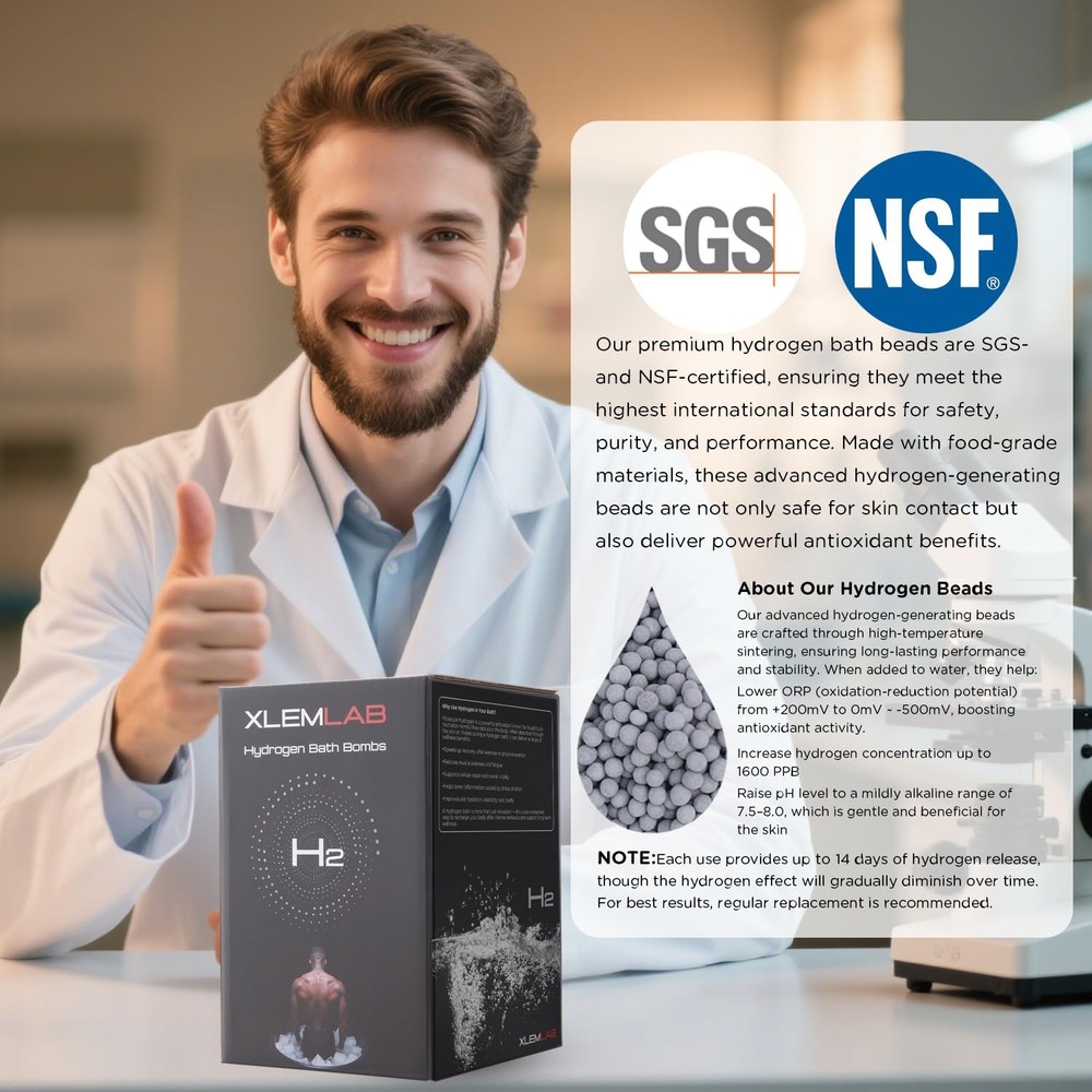 Bring a little extra relaxation to your bath with our hydrogen bath bombs. Use 2 bombs in warm water before bathing, and let the soft microbubbles create a soothing experience. Designed for repeated use, lasting up to 14 days with proper storage. Designed for gym-goers and athletes, hydrogen bath bombs provide a soothing molecular hydrogen bath to help you unwind after workouts or long, busy days. Enjoy a relaxing muscle soak that eases body tension and turns your bath into a refreshing daily ritual. Simple Use, Anytime – Drop 2 hydrogen bath bombs into warm water 30–60 minutes before bathing. Swirl gently to activate. For a stronger hydrogen presence, you can use 4 bombs per bath. Lasts Up to 14 Days – Each hydrogen bath bomb is reusable for up to 14 days. While testing shows hydrogen may be released for up to 45 days, we recommend using it within 14 days for the most consistent experience. Easy Storage for Ongoing Use – Keep the bath bombs in a bowl of water between uses to maintain the hydrogen reaction. The stored water can also be used for general rinsing or household purposes. Inspired by Wellness Trends – Hydrogen baths are gaining popularity for their clean, relaxing soak experience. Bring this trend home and enjoy a quiet, refreshing moment — no fragrances, no colorants, just simplicity. Slow Release, Steady Hydrogen – Our hydrogen beads react gradually in water, releasing hydrogen over time with only light bubbling. A calm surface simply means the hydrogen is working silently beneath. Normal Residue from Shipping – You may notice some dark gray powder upon opening. This is not dirt — it's hydrogen material that may shift during transit. Simply rinse the product with water before use.
