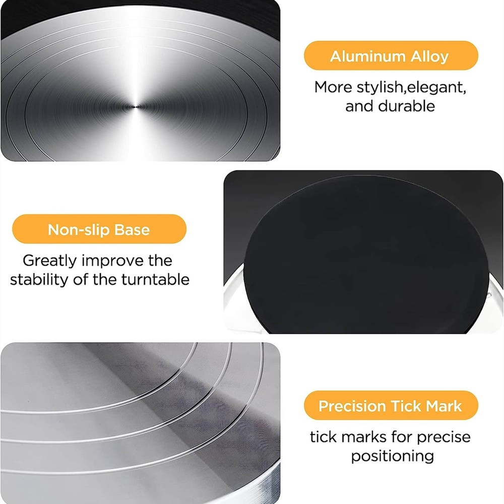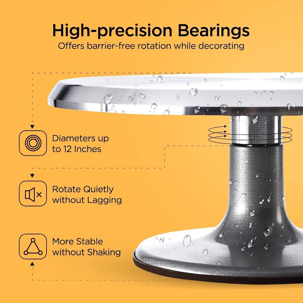 This cake turntable set is a game-changer for bakers! The 12" revolving base makes frosting smooth and effortless, and the set includes everything you need. Sturdy yet lightweight, it spins smoothly without wobbling. Perfect for decorating cakes or even serving desserts. The spring discount makes it a steal—highly recommend for home bakers and pros alike! Customer service is responsive too. Love it!